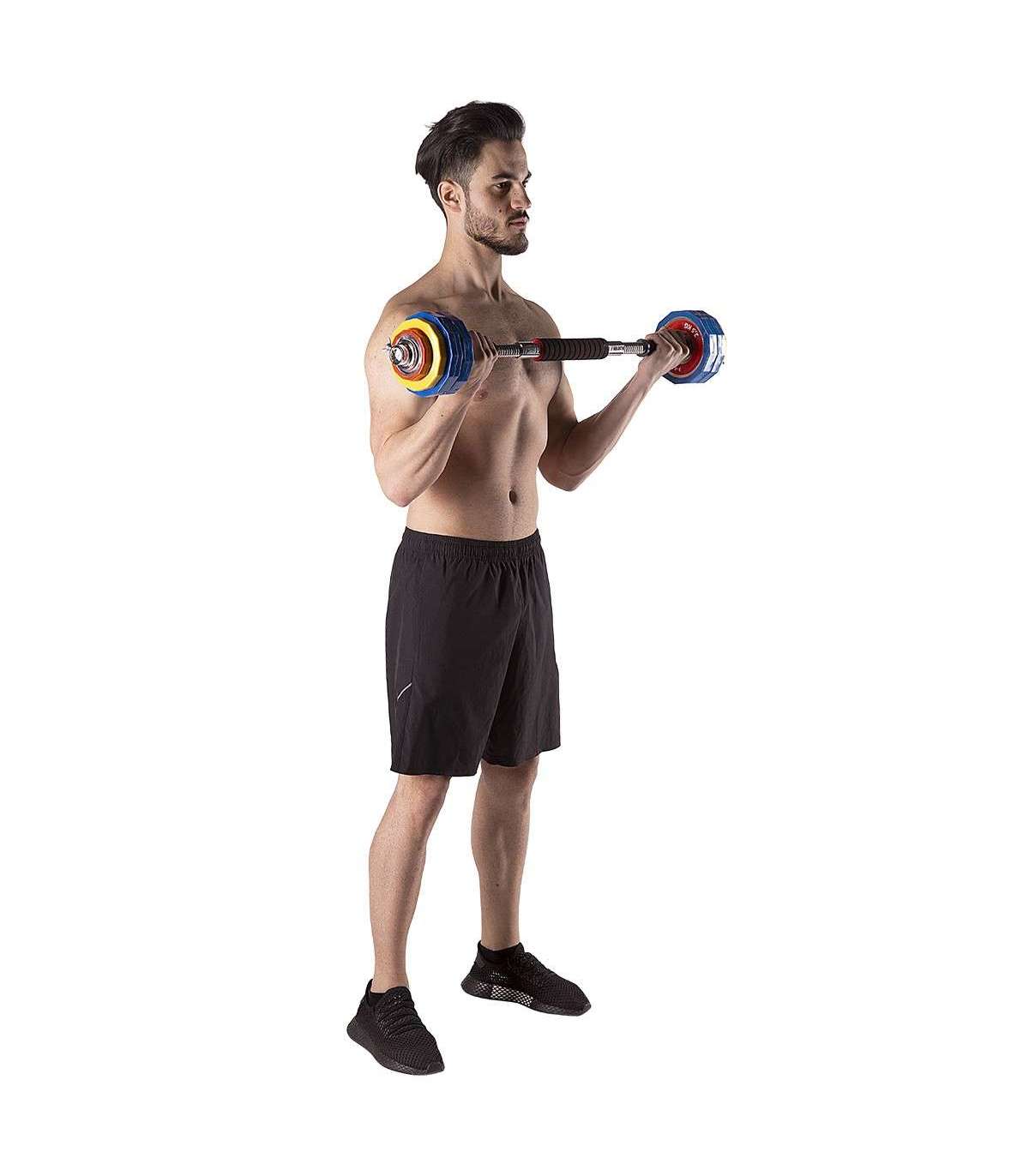A dumbbell with replaceable weights is a classics and, at the same time, a must have for every home gym. The SKC20 HMS is a set of two chromium-plated steel dumbbells. However, they can be joined together to form a bar.High quality chrome-plated steel guarantees high strength and it ensures long-term life of the equipment. What's more, the steel is covered with PVC material, which additionally protects it and at the same time absorbs any impact. Clamps and perfectly fitting diameter of the weight hole make it easier to replace the load quickly and to ensure robust position on the bar. The clamps are threaded, but they also have additional protection which is a tightening screw. Hence, the weighs do not shift in any way during a workout.Due to a special extension it is possible to join two short bars into a long one. This innovative solution significantly extends the range of possibilities. A user can have a barbell to do exercises that are not possible or not comfortable when using dumbbells. Having one product, we can use two.The set comprises two bars, four clamps, bars connection system and total no. of 16 weights. All of these in a comfortable suitcase.The product is suitable for both, advanced users and beginners. Start your training today, the SKC20 HMS is an ideal choice for a home gym.Specification:Material: chromed steel, PVCDimensions of the barLength: 35 cmDiameter: 25 mmGrip diameter: 34 mmDimensions of the coupling system:Length: 30 cmDiameter: 32 mmGrip diameter: 41 mmWeights:2,5 kg – 14,5 x 2,7 cm1,25 kg – 12,5 x 2 cm0,5 kg – 8,7 x 1,9 cmWeight of the bar: 1,1 kgWeight of the coupling system: 0,6 kgWeight of the clamp: 0,2 kgTotal weight of the set: 21 kgThe set includes:Short bar x 2Bars coupling system x 1Weights 2,5 kg x 4Weights 1,25 kg x 4Weights 0,5 kg x 4Clamps x 4Remarks:Not for the commercial use24 months warrantyImporter: Abisal Ltd. | Poland | 41-807 Zabrze | Pyskowicka Street 17 | e-mail: abisal@abisal.plAbisal Ltd.. declares that the products sold by the company are safe and meet the requirements contained in the Act on General Product Safety of December 12, 2003. (Journal of Laws of December 31, 2003)