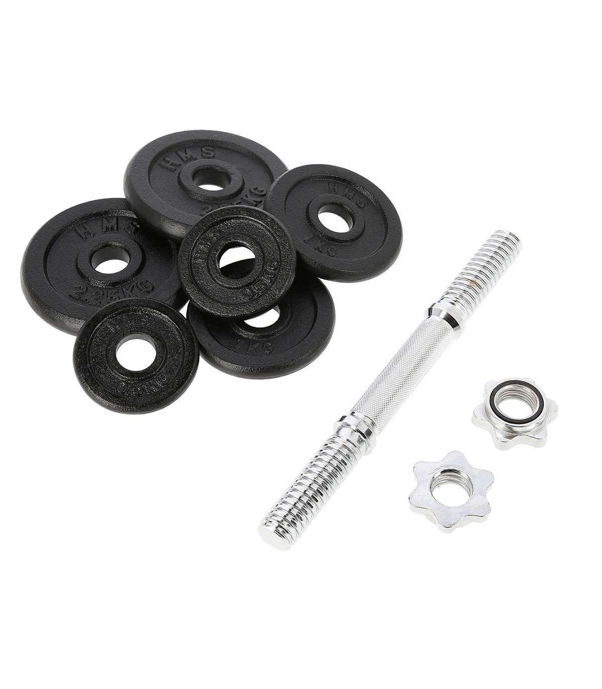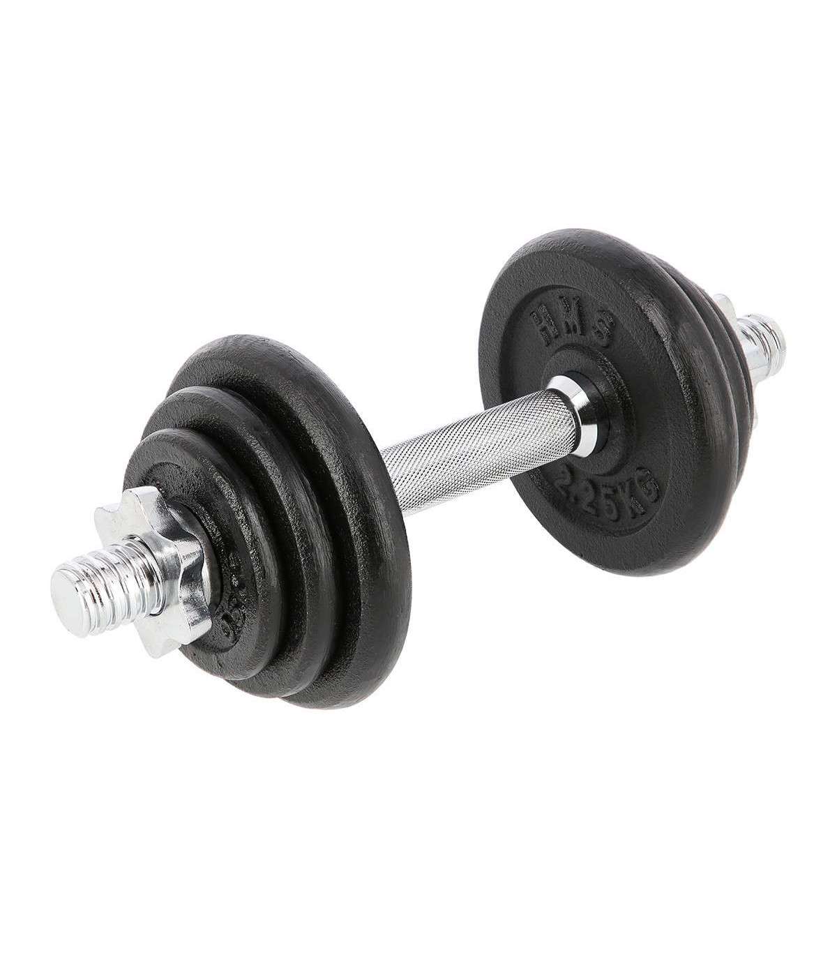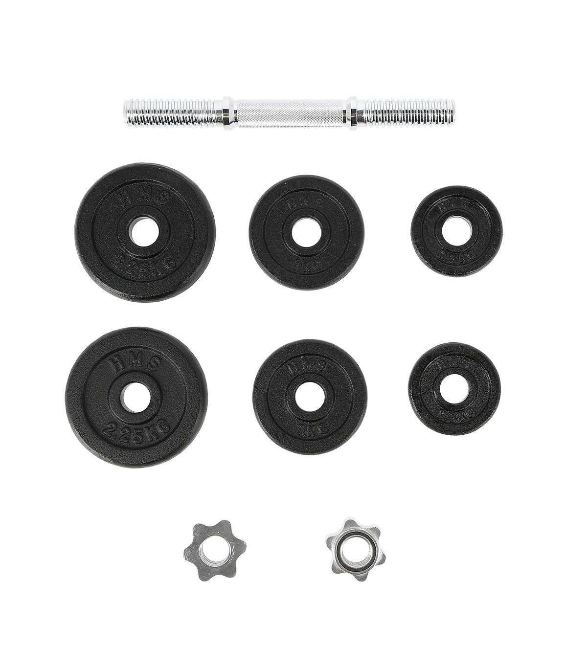 SG03 HMS – a cast iron dumbbell, made of high quality materials is a must in every home.The set includes: nickel-plated steel bar and iron cast plates.The bar has a grooved handle, so it doesn’t slip during exercise. Threaded dumbbells together with star collars guarantee an equal weight distribution.Start taking care of your body today with a 10kg dumbbell. It’s the perfect choice for both home and gym.Specification:Bar length: 35 cmBar diameter: 30 mm1 x straight bar 2,5 kg2 x plate 0,5 kg2 x plate 1 kg2 x plate 2,25 kgTotal weight: 10 kgRemarks:Not for commercial use24 months warrantyImporter: Abisal Ltd. | Poland | 41-807 Zabrze | Pyskowicka Street 17 | e-mail: abisal@abisal.plAbisal Ltd.. declares that the products sold by the company are safe and meet the requirements contained in the Act on General Product Safety of December 12, 2003. (Journal of Laws of December 31, 2003)