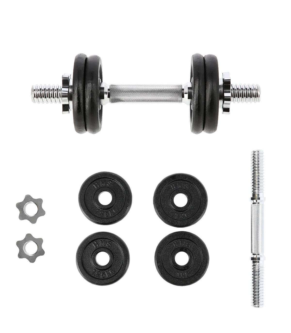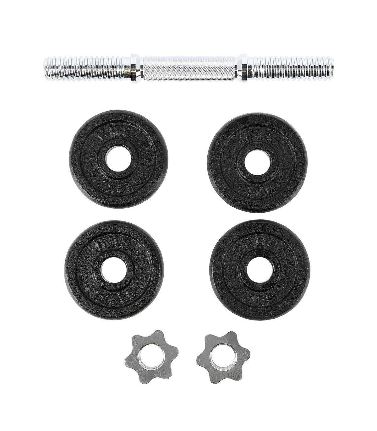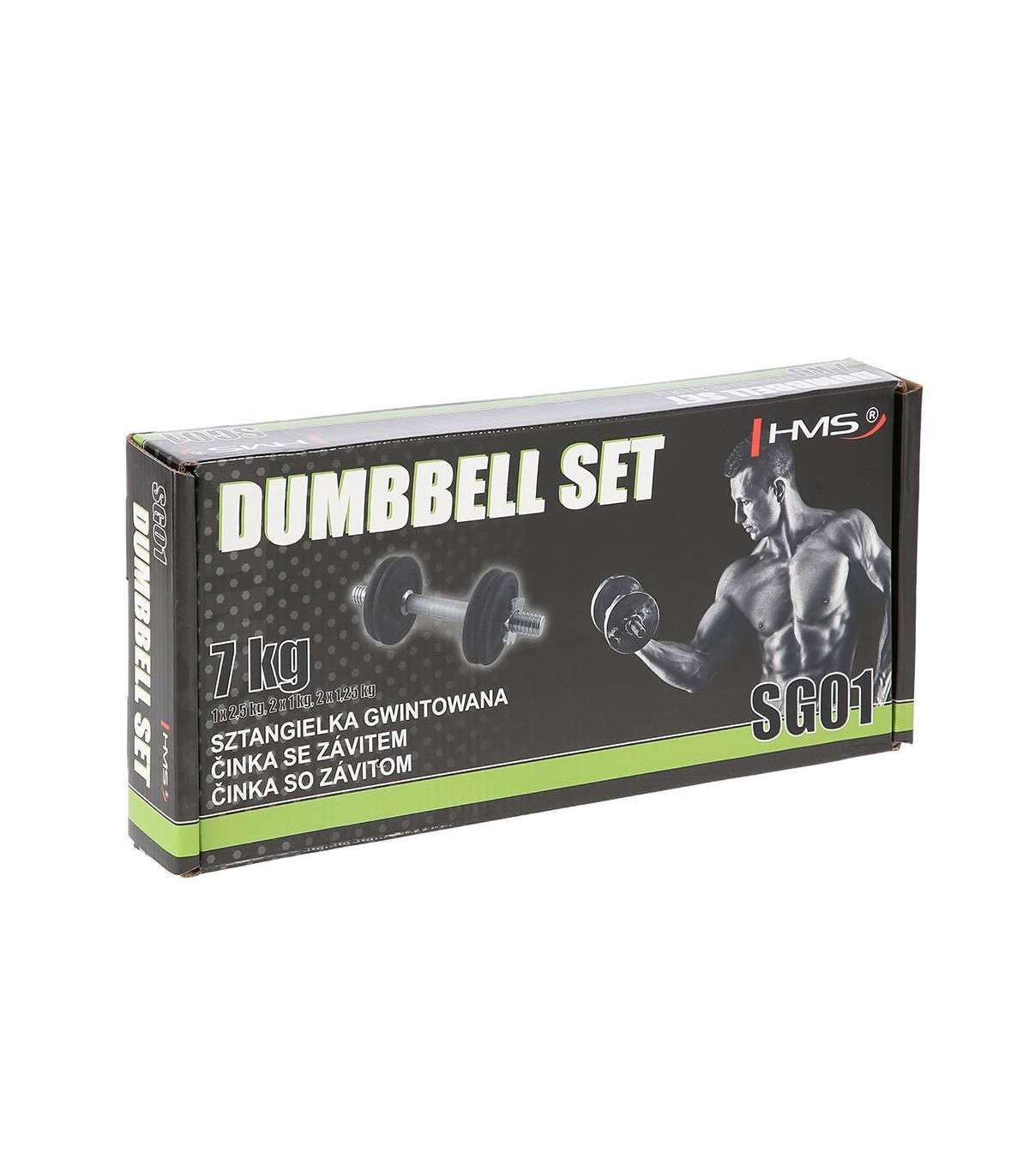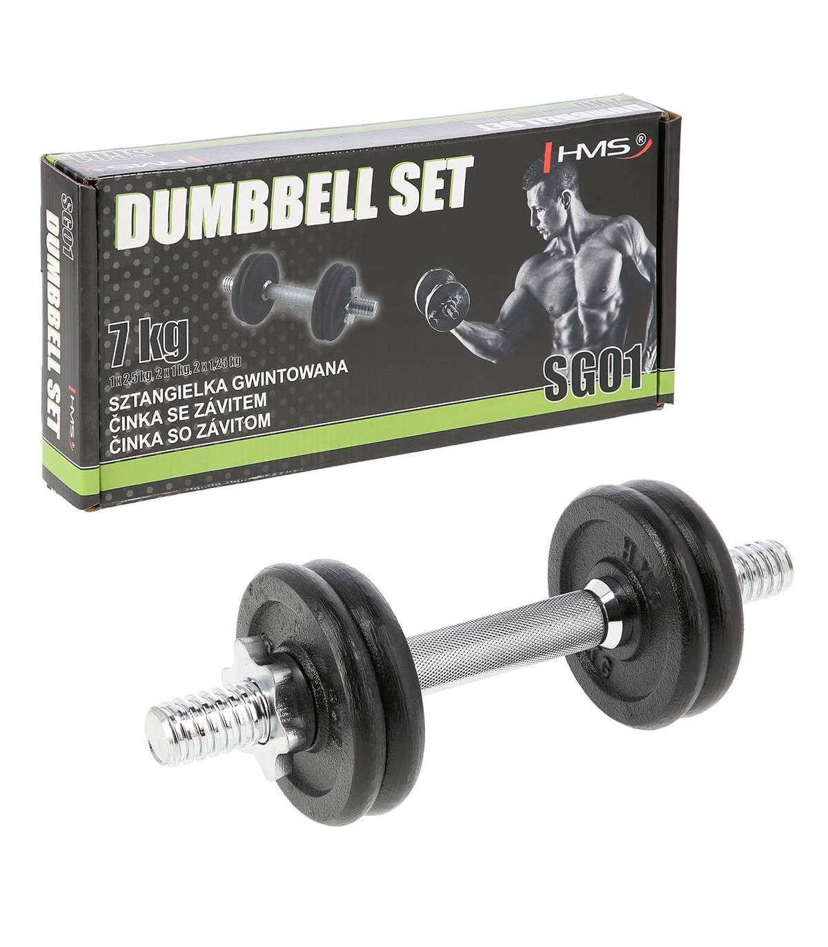 SG01 HMS – a classic cast iron dumbbell, made of high quality materials is a must in every home.The set includes: nickel-plated steel bar and iron cast plates.The bar has a grooved handle, so it doesn’t slip during exercise. Threaded dumbbells together with star collars guarantee an equal weight distribution.Start taking care of your body today with a 7kg dumbbell. It’s the perfect choice for both home and gym.Specification:Bar length: 35 cmBar diameter: 30 mm1 x straight bar 2 kg2 x weight 1 kg2 x weight 1,25 kgTotal weight: 7 kgRemarks:Not for commercial use24 months warrantyImporter: Abisal Ltd. | Poland | 41-807 Zabrze | Pyskowicka Street 17 | e-mail: abisal@abisal.plAbisal Ltd.. declares that the products sold by the company are safe and meet the requirements contained in the Act on General Product Safety of December 12, 2003. (Journal of Laws of December 31, 2003)