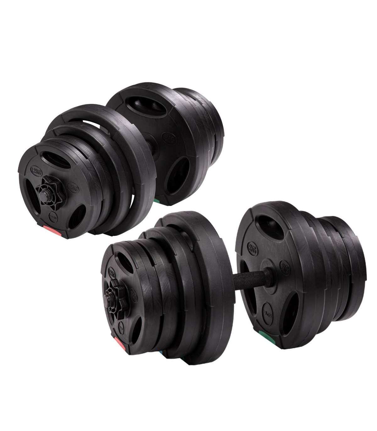 A dumbbells with replaceable loads is classic and, at the same time, a must have for every home gym. SG40 HMS, which is a set of two composite dumbbells, is a must have. Cement filling and high quality plastic on the outer layer warrant high durability of the product. Butterfly clamps and perfectly fitting diameter of the plate holes make it easier to change the load quickly and to ensure robust position on the bar. The system comprises two bars, four clamps and as many as 16 load plates. The product is suitable for both, advanced users and beginners. Start your training today, the GSP40 HMS is an ideal choice for a home gym.Specification:Material: cement, PENumber of barbells: 2x shortBarbell length (mm): 505Barbell diameter (mm): 25.4Number of loads in the set: 8x 1.25 kg / 4x 2.5 kg / 4x 5 kgLoad diameter (mm): 200 / 235 / 275Load thickness (mm): 33 / 38 / 48Handle: knurledBar clamps: 4x star shaped nutRemarks:Not for the commercial use24 months warrantyImporter: Abisal Ltd. | Poland | 41-807 Zabrze | Pyskowicka Street 17 | e-mail: abisal@abisal.plAbisal Ltd.. declares that the products sold by the company are safe and meet the requirements contained in the Act on General Product Safety of December 12, 2003. (Journal of Laws of December 31, 2003)