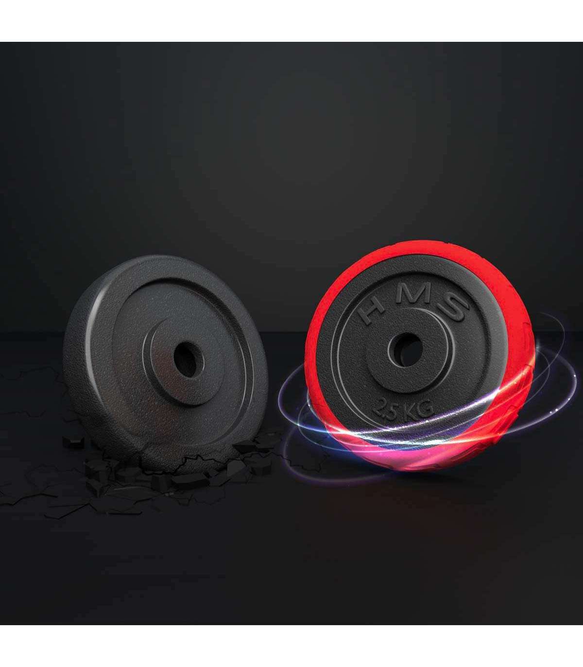 SGGX20 HMS is a set of nickel-plated dumbbells with rubberized plates and barbell function.Fully equipped gym must offer dumbbells and a barbell. However, in a home gym space saving issue is very important. Therefore, the ideal solution is set of 2 in 1 SGGX20 HMS.SGGX20 HMS is a set of two dumbbells with replaceable weights. Thanks to a special connection it can be converted into a barbell. This innovative solution enables a user to save space and it significantly expands the range of workout possibilities compared to a regular set of dumbbells. The process of transformation of dumbbells into a barbell is very simple and does not take much time. Due to the SGGX20 HMS set it is possible to perform exercises addressed to all muscle groups and in varied configurations.HMS brand focuses primarily on highest quality materials, and so it is in this case. SGGX20 HMS is made of nickel-plated steel whose main feature is very high strength. This guarantees years of unproblematic use. An additional protection is the rubber that surrounds each weight. This solution protects the weights from damage, but it also protects the floor, where the weight is put and in case of home gym it is very important. The rubber, apart from the protective function, also absorbs shocks and it has soundproofing function.On the handles of the dumbbells there is also a rubber which offers a firm and comfortable grip. The connector supplied to create the barbell is covered with a sponge, which is very useful, for example, while performing squats. Thanks to it there is no discomfort caused by the pressure of the bar on the back.The HMS product is suitable for both, advanced users and beginners. Start your training today, the SGGX30 is an ideal choice for a home gym.Specification:Material: nickel steelDimensions of the bar:Length: 35 cmDiameter: 24 mmGrip diameter: 30 mmDimensions of the coupling system:Length: 34.5 cmDiameter: 30 mmGrip diameter: 39 mmWeights:2,5 kg – 15,4 x 2,9 cm1,25 kg – 12,5 x 2,3 cm0,5 kg – 10,4 x 1,8 cmWeight of the bar: 1 kgWeight of the coupling system: 0.7 kgWeight of the collar: 0.2 kgTotal weight of the set: 21 kgThe set includes:Short bar x 2Bars coupling system x 1Weights 2,5 kg x 4Weights 1,25 kg x 4Weights 0,5 kg x 4Collars x 4Remarks:Not for commercial use24 months warrantyImporter: Abisal Ltd. | Poland | 41-807 Zabrze | Pyskowicka Street 17 | e-mail: abisal@abisal.plAbisal Ltd.. declares that the products sold by the company are safe and meet the requirements contained in the Act on General Product Safety of December 12, 2003. (Journal of Laws of December 31, 2003)