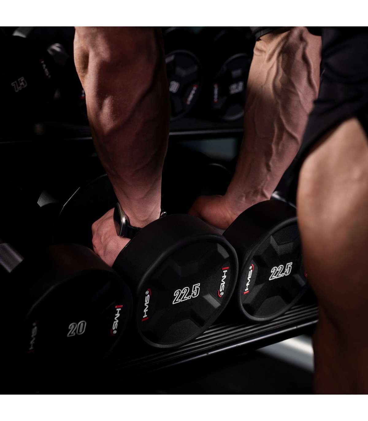 HPC dumbbells made from the best quality polyurethane (CPU) are equipment designed for the most demanding users. Exceptional durability, an aesthetically pleasing finish and advanced features make them the ideal choice for those who expect reliability during intense workouts.Durability you can rely onCPU is a material known for its resistance to shock, impact and intensive use. HPC dumbbells maintain their form and functionality even during the toughest training sessions. Their resistance to drops, odourlessness and ease of cleaning make them an excellent choice for regular trainers who expect reliability and long equipment life.Comfortable grip, secure holdEach HPC dumbbell is equipped with a specially designed handle with a non-slip surface for a secure and comfortable grip. The knurled chrome-plated steel handle prevents your hands from slipping, increasing safety and comfort during exercise.Wide weight rangeHPCs are available in weights from 2.5 kg to 50 kg, in precise increments of 2.5 kg. This weight range allows for a gradual increase in load, which is crucial for effective strength and muscle mass development. This is ideal for both beginners and advanced users.Modern design and safetyThe HPC dumbbells are distinguished by a sleek, modern design that is eye-catching and looks great in any gym. The precision-engineered non-slip surface provides stability and safety during training, minimising the risk of the equipment accidentally slipping out of your hand.Your choiceThanks to their high quality workmanship, HPC dumbbells are perfect for strength, functional and dynamic training, where the equipment is exposed to intensive use. It is a choice that will meet the expectations of both professionals and people who train with passion and want to achieve maximum results.Specification:Material: steel + CPUHandle: knurledOverall length: 28.7 cmLength of grip part: 15 cmDiameter of grip part: 3.4 cmLength of knurled part: 11.8 cmDiameter of load: 19.6 cmThickness of load: 6.85 cmWeight: 22.5 kgRemarks:3-year warrantyImporter: Abisal Ltd. | Poland | 41-807 Zabrze | Pyskowicka Street 17 | e-mail: abisal@abisal.plAbisal Ltd.. declares that the products sold by the company are safe and meet the requirements contained in the Act on General Product Safety of December 12, 2003. (Journal of Laws of December 31, 2003)
