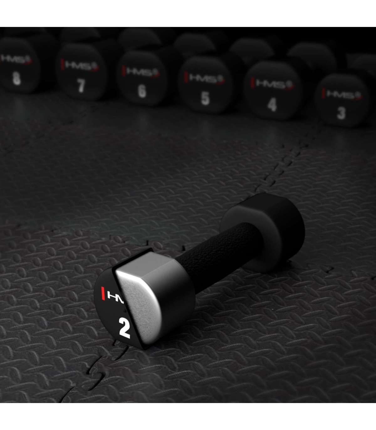 Introducing the HPT training dumbbells, which have been coated with polyurethane (TPU). Thanks to special materials, they combine durability with comfortable use. Their flexible, abrasion-resistant surface provides a secure grip and safety during training, regardless of the intensity.Protection thanks to the TPU polyurethane coatingThe HPT dumbbells from HMS are coated with a black layer of thermoplastic polyurethane (TPU), a material known for its flexibility while maintaining a high degree of hardness. This makes them shock-, scratch- and impact-resistant, ensuring long-lasting use without loss of quality. The polyurethane coating is odourless and protects the ground from damage, minimising the risk of scratches or noise during training.Ergonomic gripEach dumbbell has an ergonomic handle with a knurled surface, which guarantees a secure and comfortable grip. This design prevents your hands from slipping, increasing safety and comfort during intense training sessions.Choose the load for youAvailable from 1kg to 10kg (sold in pairs), the polyurethane dumbbells allow you to gradually increase the load, which is key to effective training progression. This weight range allows you to tailor the intensity of your exercises to suit your individual needs.Modern designThe black coating gives the HPT dumbbells a sleek and modern look that blends in perfectly with any gym interior or home training area. The clear weight markings make it easy to quickly select the right load for a more effective workout.Versatility of useHPTs are ideal for a variety of exercises such as bench presses, squats, rowing and functional training. Their robust construction and excellent balance make them an indispensable piece of equipment for amateur and professional training spaces.Specification:Material: steel + TPUHandle: knurledOverall length: 21.9 cmLength of grip section: 11.9 cmDiameter of grip part: 3.1 cmDiameter of load: 6.9 cmThickness of load: 5 cmWeight: 2 x 2 kgRemarks:3-year warrantyImporter: Abisal Ltd. | Poland | 41-807 Zabrze | Pyskowicka Street 17 | e-mail: abisal@abisal.plAbisal Ltd.. declares that the products sold by the company are safe and meet the requirements contained in the Act on General Product Safety of December 12, 2003. (Journal of Laws of December 31, 2003)