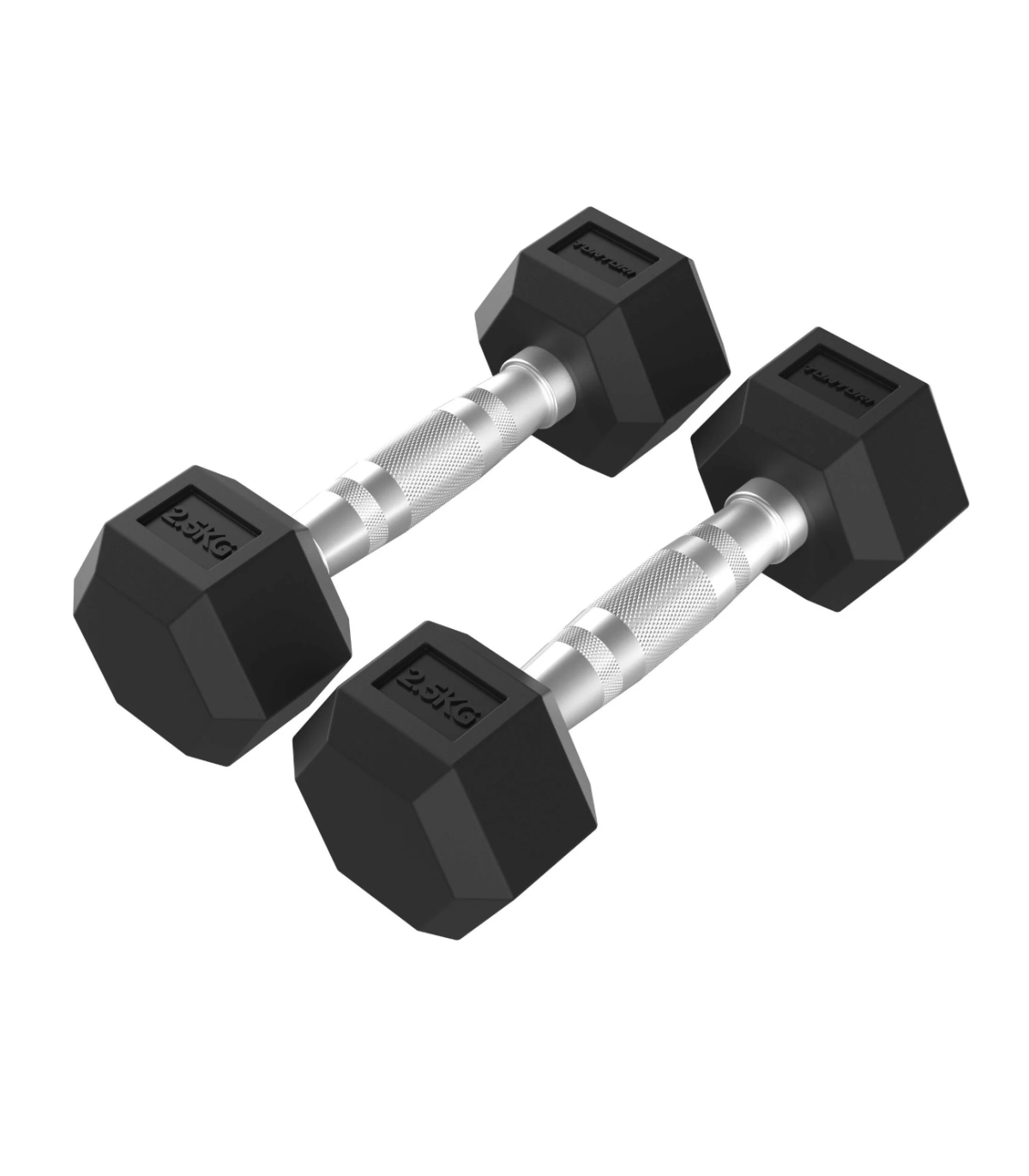 Dumbbells TUNTURI Platinum Hex Rubber Dumbbell, 2x 2.5kg