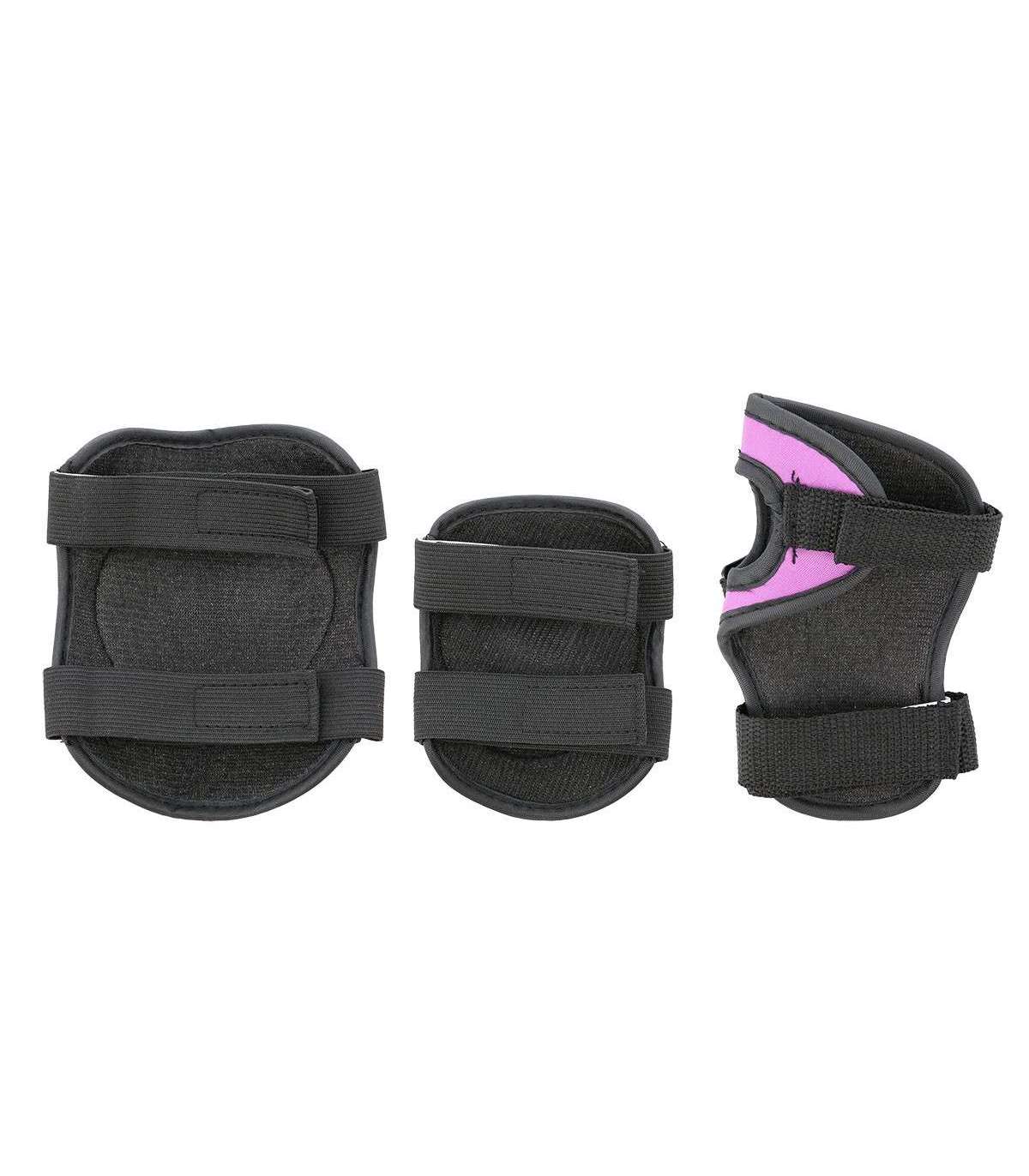 Specification:Material: EVA, nylon, PE, polyesterFastening: velcro strap, elastic bandSize: XSDimensions (+/- 0,5 cm):Wrist protection: 14,5x8 cmElbow pad: 11,5x9,5 cmKnee pad: 12x9,5 cmColor: violetRemarks:Not for the commercial useComplies with standard PN_EN 14120:2003+A124 months warrantyImporter: Abisal Ltd. | Poland | 41-807 Zabrze | Pyskowicka Street 17 | e-mail: abisal@abisal.plAbisal Ltd.. declares that the products sold by the company are safe and meet the requirements contained in the Act on General Product Safety of December 12, 2003. (Journal of Laws of December 31, 2003)