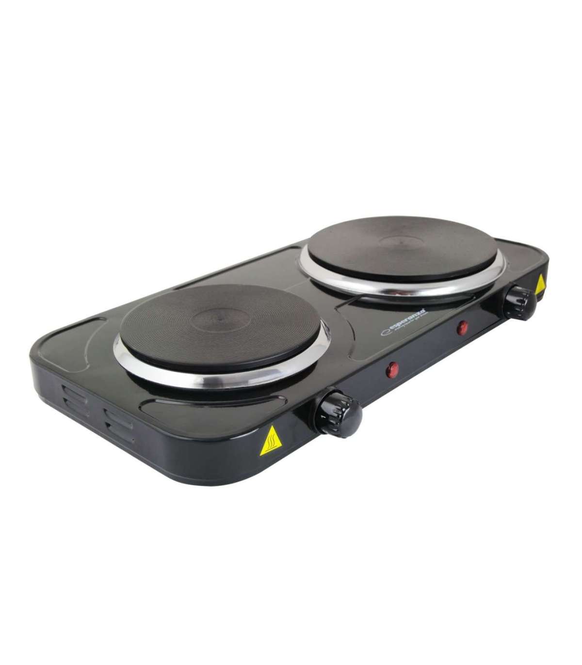 2 heating plates with a diameter of 18,8 cm (1500 W) and 15,5 cm (1000 W).