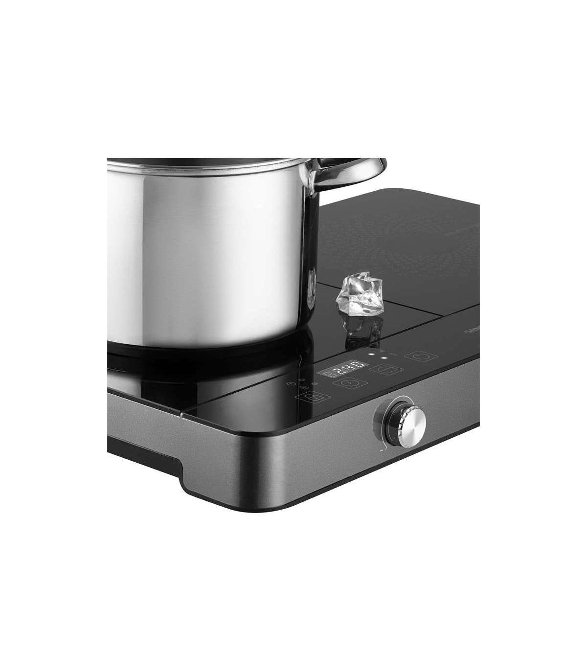 Vasakpoolne induktsioonplaat: temperatuuri reguleerimine vahemikus 60–240 °C; 10 eelseadistatud võimsustaset vahemikus 200-16000 W.