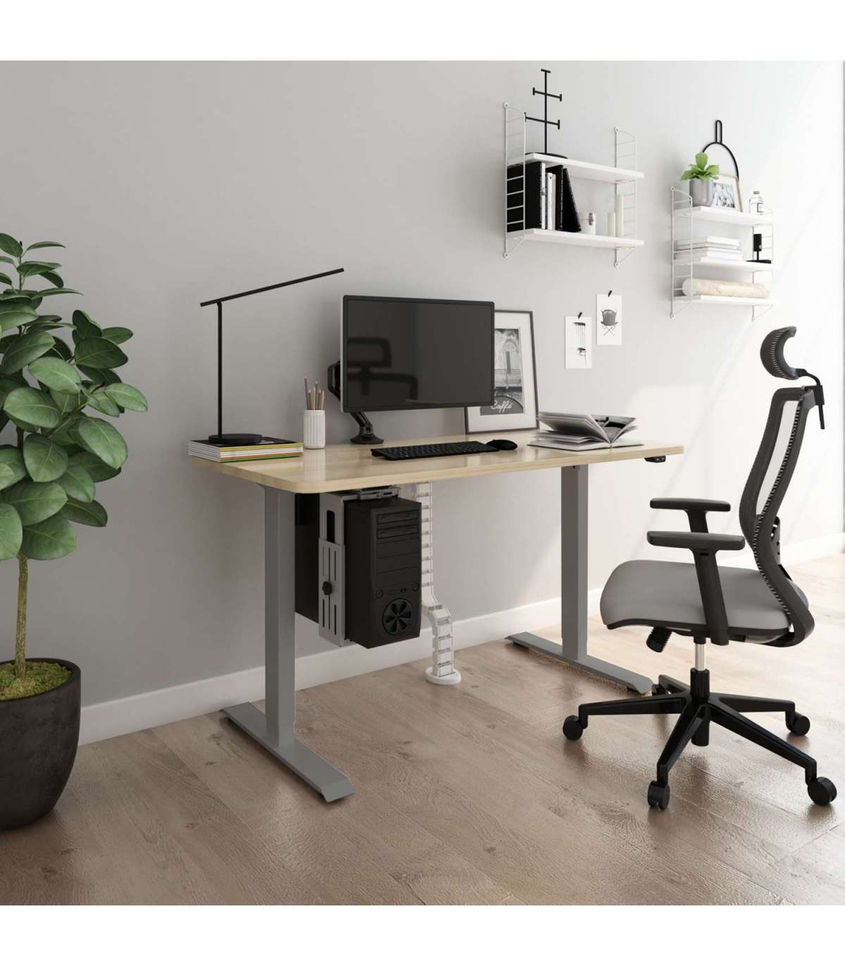 Ножка стола ERGO с 1 мотором, серебристо-серый. Сделайте свою рабочую среду комфортной и оставайтесь здоровыми! Возможность переключения между сидячим и стоячим рабочим положением помогает предотвратить боли в шее и спине. Работая в положении стоя, человек тратит на 0,7 калорий в минуту больше, чем сидя. Один электродвигатель и двухфазная подъемная система обеспечивают быстрое, плавное и бесшумное (<50 дБ) движение. Максимальная скорость подъема 25 мм в секунду. Высота стола регулируется в пределах 71-121 см. Регулируемая ширина от 85 до 129 см. Максимальная грузоподъемность на полной скорости 70 кг. Рекомендуемые размеры рабочей поверхности 50-80х100-160см. Входное напряжение: 100-240 В. Перед использованием продукта внимательно прочтите инструкцию и сохраните ее.