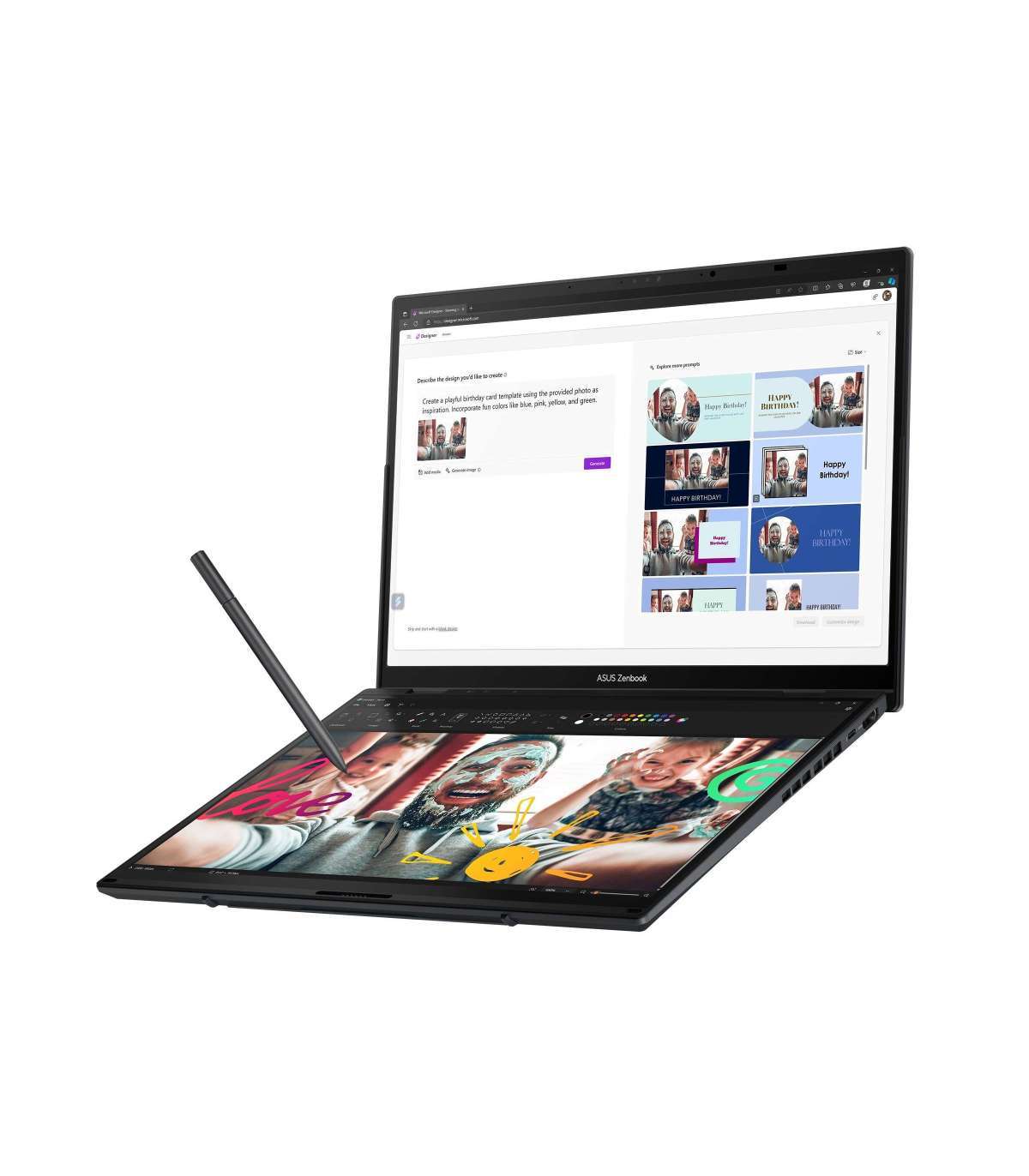 Asus Zenbook Duo UX8406CA-PZ009W | Basalt Gray | 14 " | OLED | Touchscreen | 3K | 2880 x 1800 pixels | Glossy | Intel Core Ultra 9 | 285H | 32 GB | LPDDR5X | Solid-state drive capacity 2000 GB | Intel Arc Graphics | Windows 11 Home | 802.11be | Bluetooth version 5.4 | Keyboard language English