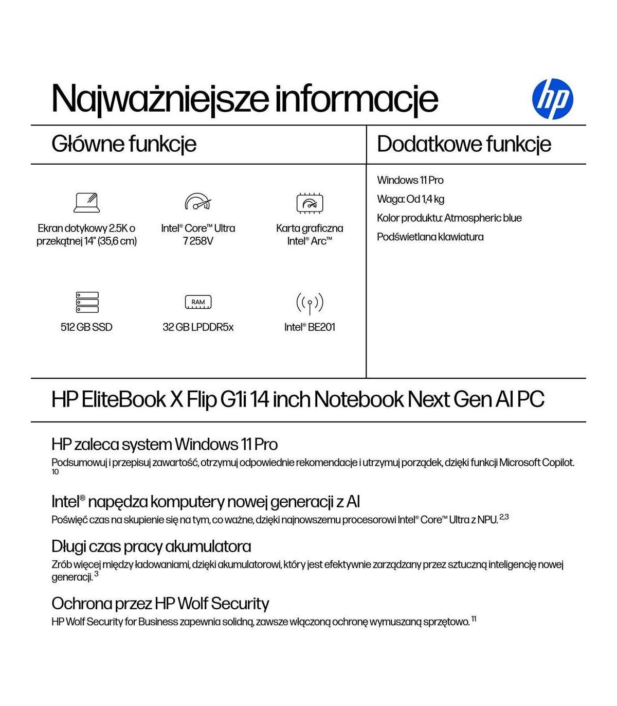 HP EliteBook X G1i Flip Ultra 7 258V 14"2.5K Touch 800nits 120Hz AG 32GB LPDDR5x-8533 SSD512 Intel Arc Cam IR 5 Mpx AI