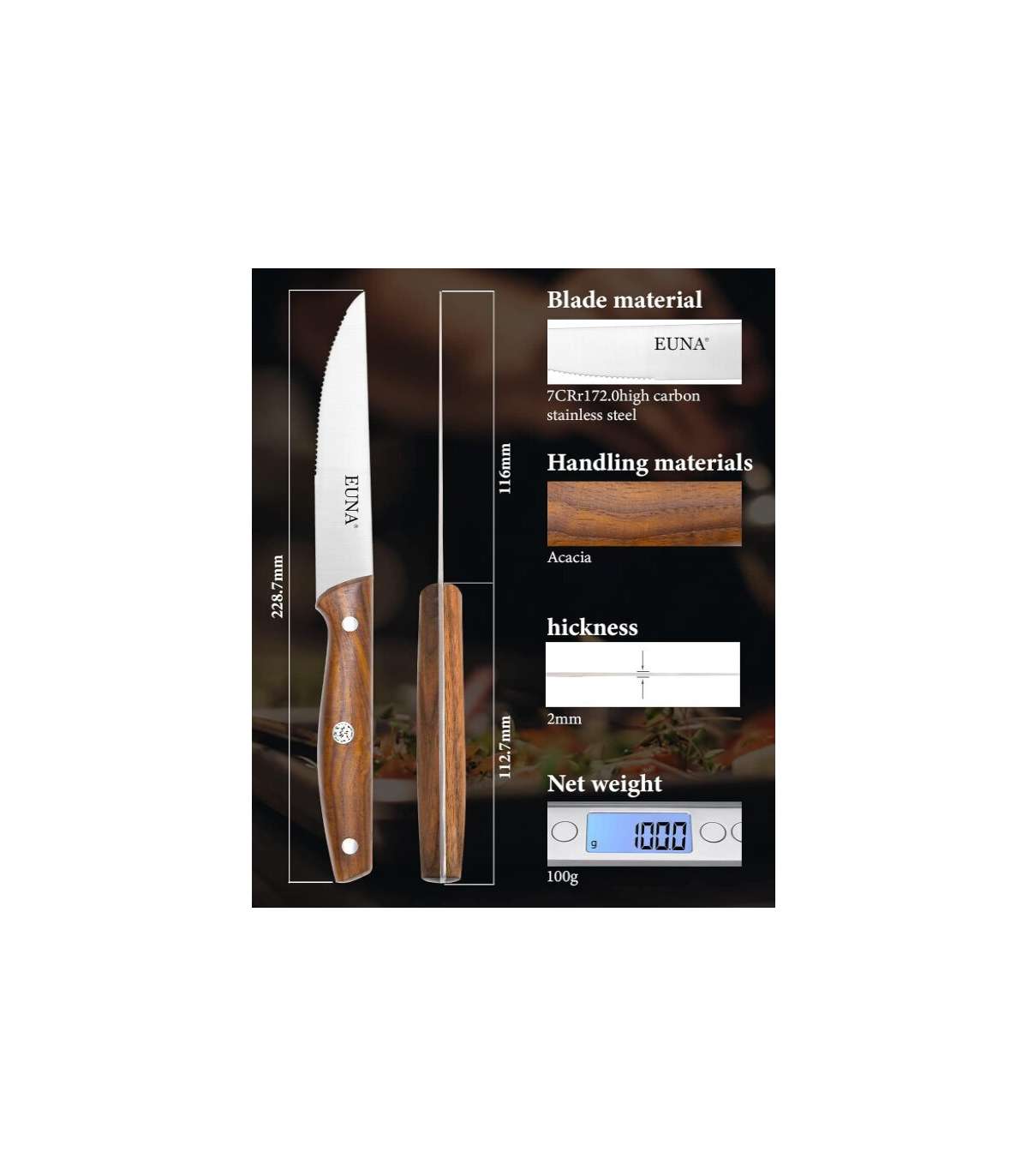 Набор стейковых ножей Euna, 4 шт. создан для комфортного и аккуратного разрезания мясных блюд за столом.