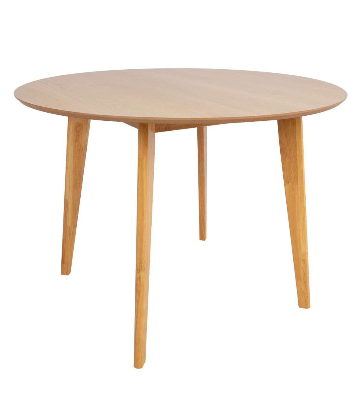 Обеденный комплект ROXBY круглый стол, 4 стула, дуб. В комплект входит обеденный стол и четыре стула. Столешница покрыта натуральным шпоном дуба и покрыта лаком. Ножки изготовлены из каучукового дерева и покрыты дубовой морилкой. Стул покрыт дубовым шпоном и покрыт лаком. Ножки изготовлены из каучукового дерева и покрыты дубовой морилкой. Высота сиденья 42,5см. Ограничение по весу кресла 100 кг. Размеры стола D105xH76см, стула 45x55xH79,5см.