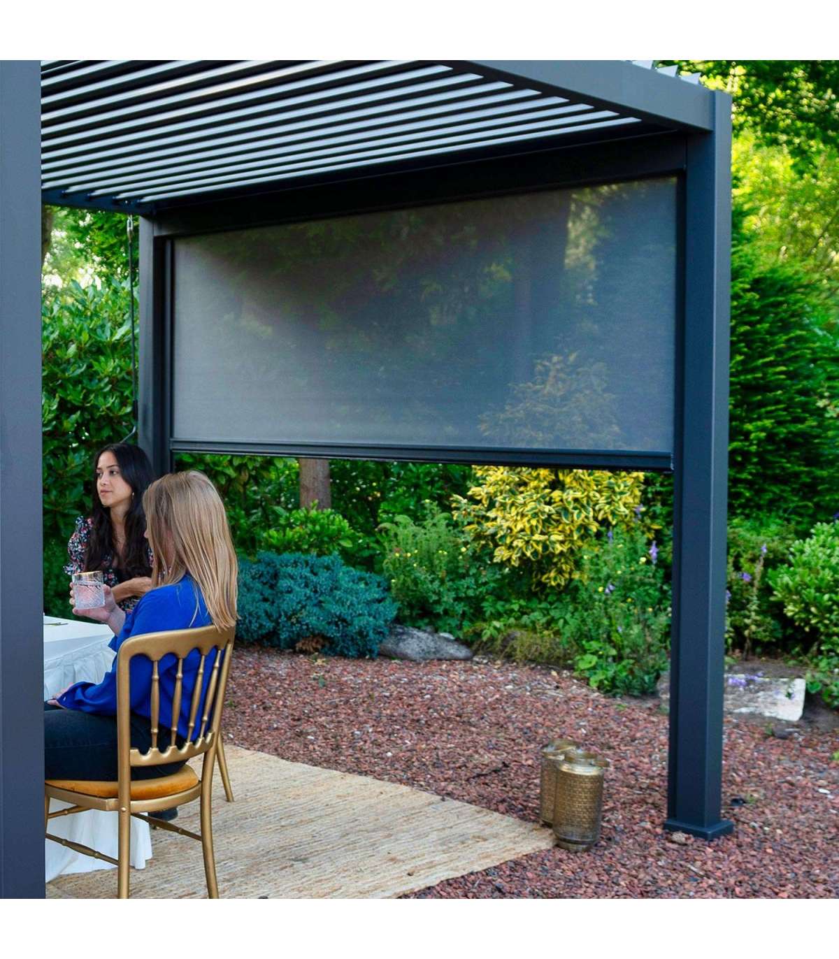 Штора для навеса "pull-down" MIRADOR 3м, серая. Раздвижная ширма для 3-метровой стороны беседки MIRADOR. Выдвижной экран — удобное и элегантное решение для быстрой адаптации MIRADOR к погодным условиям. Стена из тонкой текстильной сетки обеспечивает тень и уединение, а также хорошо защищает от комаров. Стену легко двигать вверх и вниз и выбирать высоту, точно соответствующую обстоятельствам. Раздвижная ширма имеет темно-серую алюминиевую рамку с порошковым покрытием 118х95х1,5мм, размер рулона D60х1,5мм. Выдвижной экран можно разместить со всех сторон навеса или использовать в сочетании с жалюзийными панелями. Ознакомьтесь со всей подборкой дополнительного оборудования для навесов MIRADOR! ВНИМАНИЕ: при сильном ветре и дожде поднимайте стену вверх. Поскольку погодные условия могут быстро меняться, мы рекомендуем поднимать экранную стену всякий раз, когда шатёр не используется и остается без присмотра.