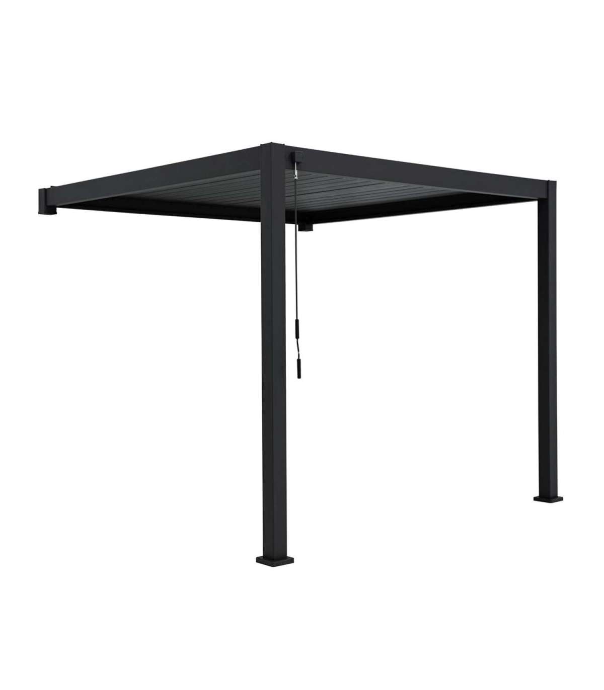 Шатёр MIRADOR 3x4м, с 2-мя столбами. Современный, элегантный и функциональный навес/садовый павильон уместится везде - в саду, на террасе, у бассейна или в качестве навеса для машины и может использоваться круглый год. Инновационная крыша с жалюзи открывается и закрывается с помощью рычага, обеспечивая защиту и тень от небольшого дождя и палящего солнца. С закрытыми ламелями крыша полностью водонепроницаема. Благодаря встроенной водосточной системе вода безопасно сливается с крыши. Как вариант, можно выбрать подходящий тип стены или штор, придав навесу другой вид и функциональность. В стоимость не входят боковые стенки и шторы, их необходимо заказывать отдельно. Каркас навеса изготовлен из алюминия и окрашен порошковой краской темно-серого цвета. 2 опорные стойки 111x111 мм, горизонтальная балка 140x75 мм, жалюзи из оцинкованной стали 173x30 мм. Установите навес на устойчивую и ровную поверхность и надежно закрепите его. Если вы используете навес круглый год, убедитесь, что на крыше не слишком много снега. Как можно скорее уберите скопившийся снег. Убедитесь, что отверстия для слива воды чистые. Перед началом зимнего сезона убедитесь, что в боковых стойках/опорах нет воды. Если вода замерзнет, ??она может повредить стойки/столбы.