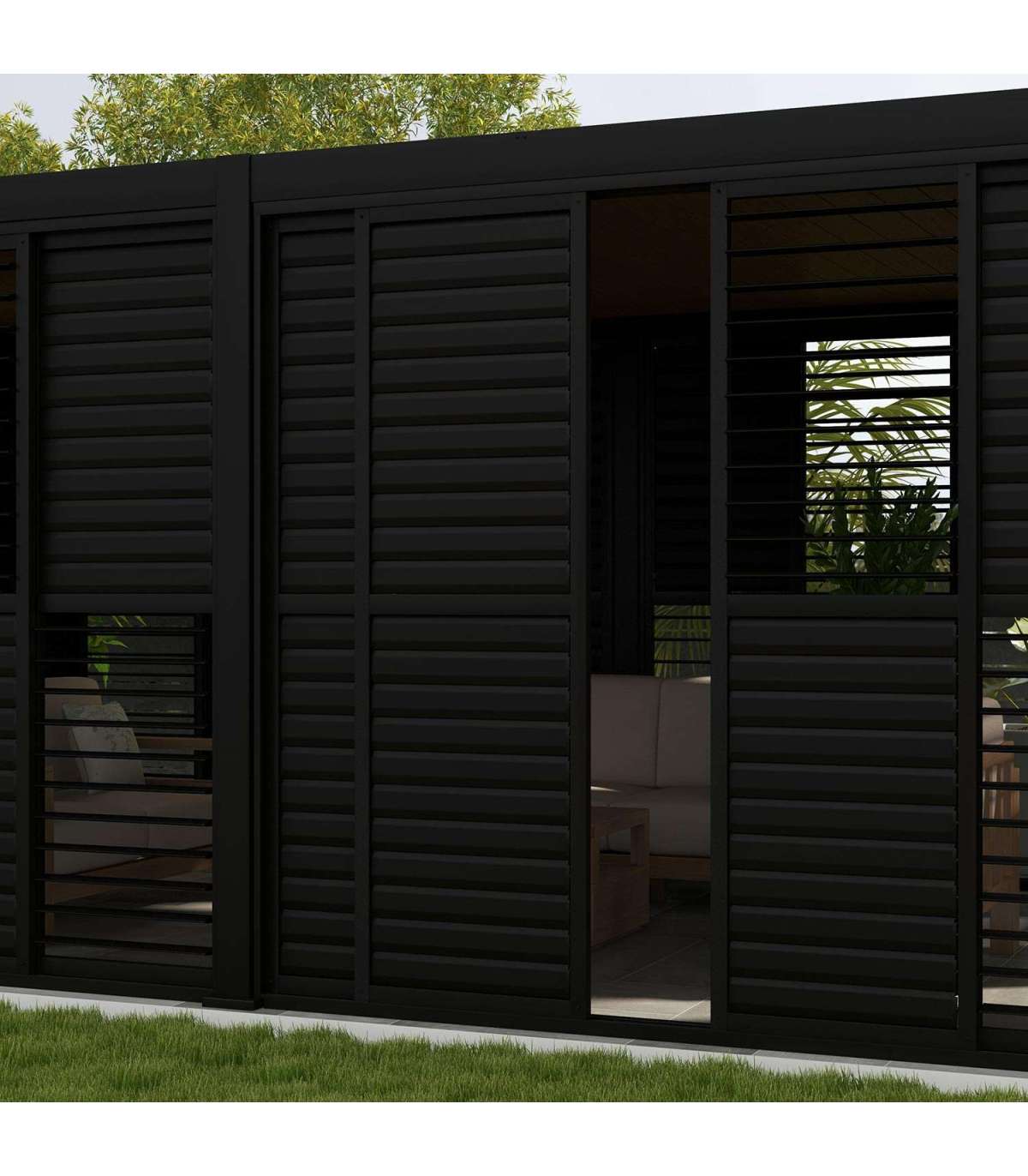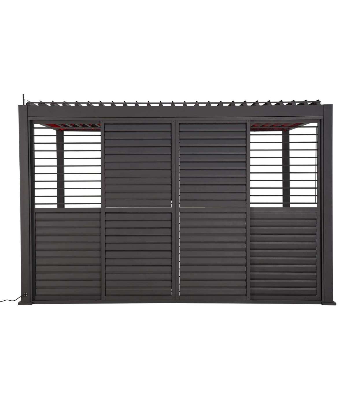 Lamell-lükandsein varikatuse MIRADOR-111 4m küljele, tumehall. Seinapaneeli mõõdud on 3704x2365mm. Horisontaalposti mõõdud on 95x73,9x1,5x1852mm/53x35,5x1,5x917mm/58x35x1,5x917mm. Küljeposti mõõdud on 46,5x39x1,5x2296mm. Lamelli mõõdud on 102x15x1x827mm. Sein on valmistatud alumiiniumist ja kaetud tumehalli pulbervärviga. Tutvuge ka teiste MIRADOR-111 varikatustele pakutavate kardinate ja küljeseinte valikuga!