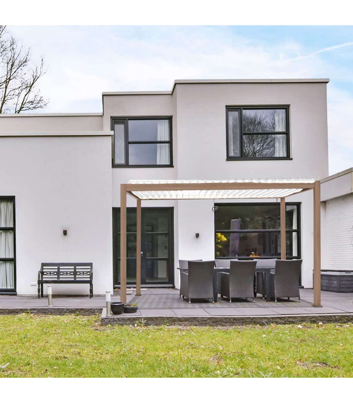 Kaasaegne, elegantne ja funktsionaalne varikatus/aiapaviljon sobib kõikjale - aeda, terrassile, basseini äärde või auto varjualuseks. Varikatus on kasutatav aastaringselt. Uuenduslik lamellkatus on vändaga avatav ja suletav ning pakub kaitset ja varju nii kerge vihma, kui kõrvetava päikese eest. Suletud lamellidega katus on veekindel. Tänu sisse ehitatud vihmaveesüsteemile juhitakse vesi ohutult katuselt ära.