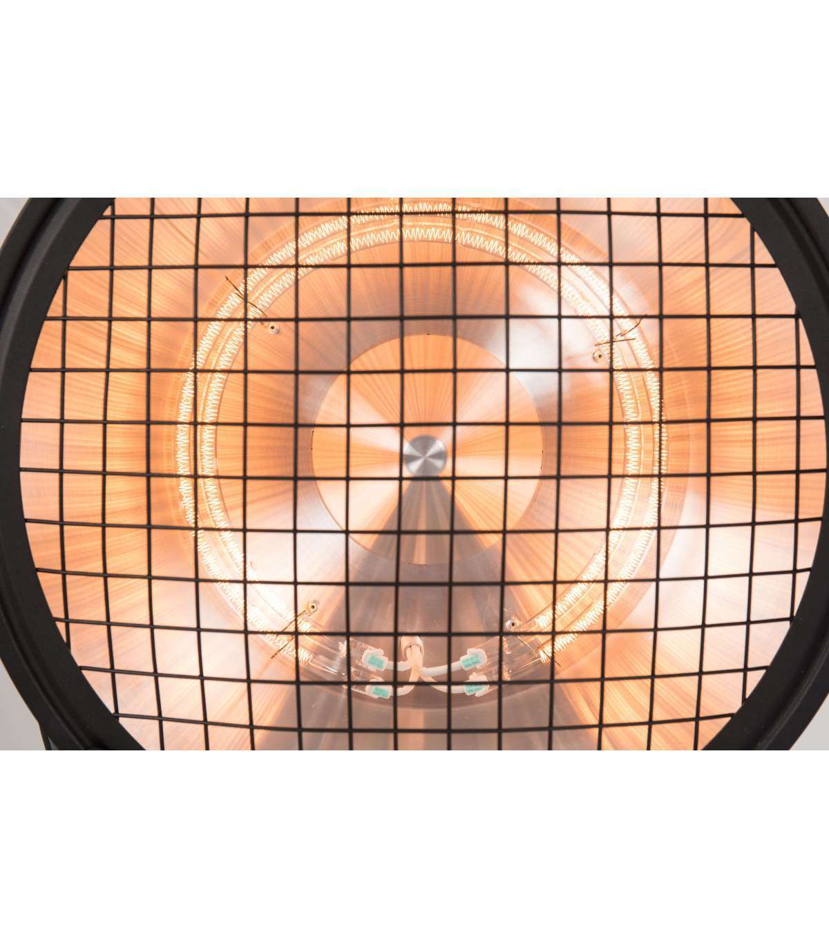 - 3 different positions: 900/1200/2100 Watt. The estimated life of the heating elements is 8000 hours. Maximum heat range: 17 m2.