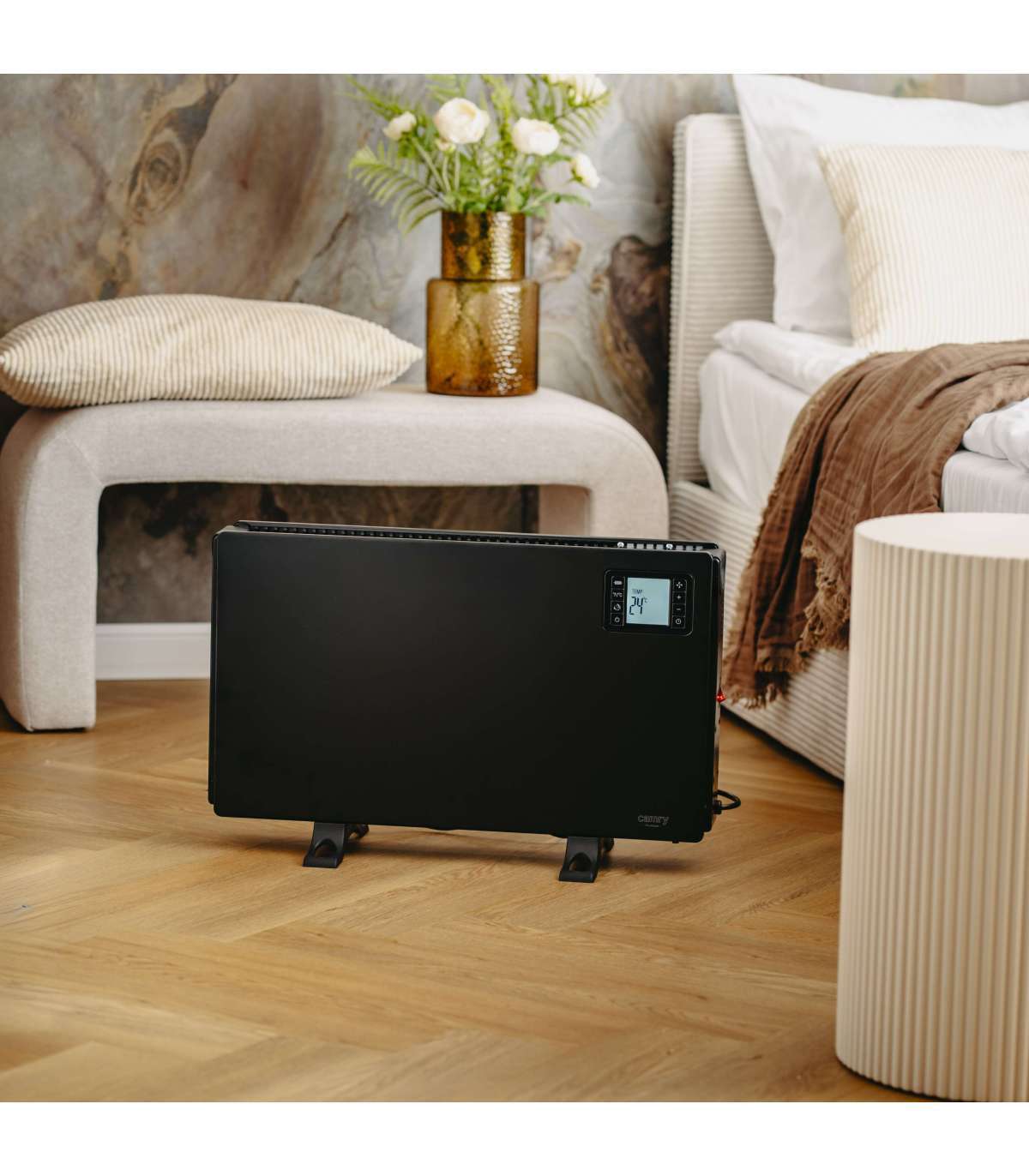 - Adjustable thermostat: precise temperature control; Wide temperature range 5-37 C; Room temperature sensor: automatically adjusts heater operation for optimal comfort; Overheat protection: safe operation at all times