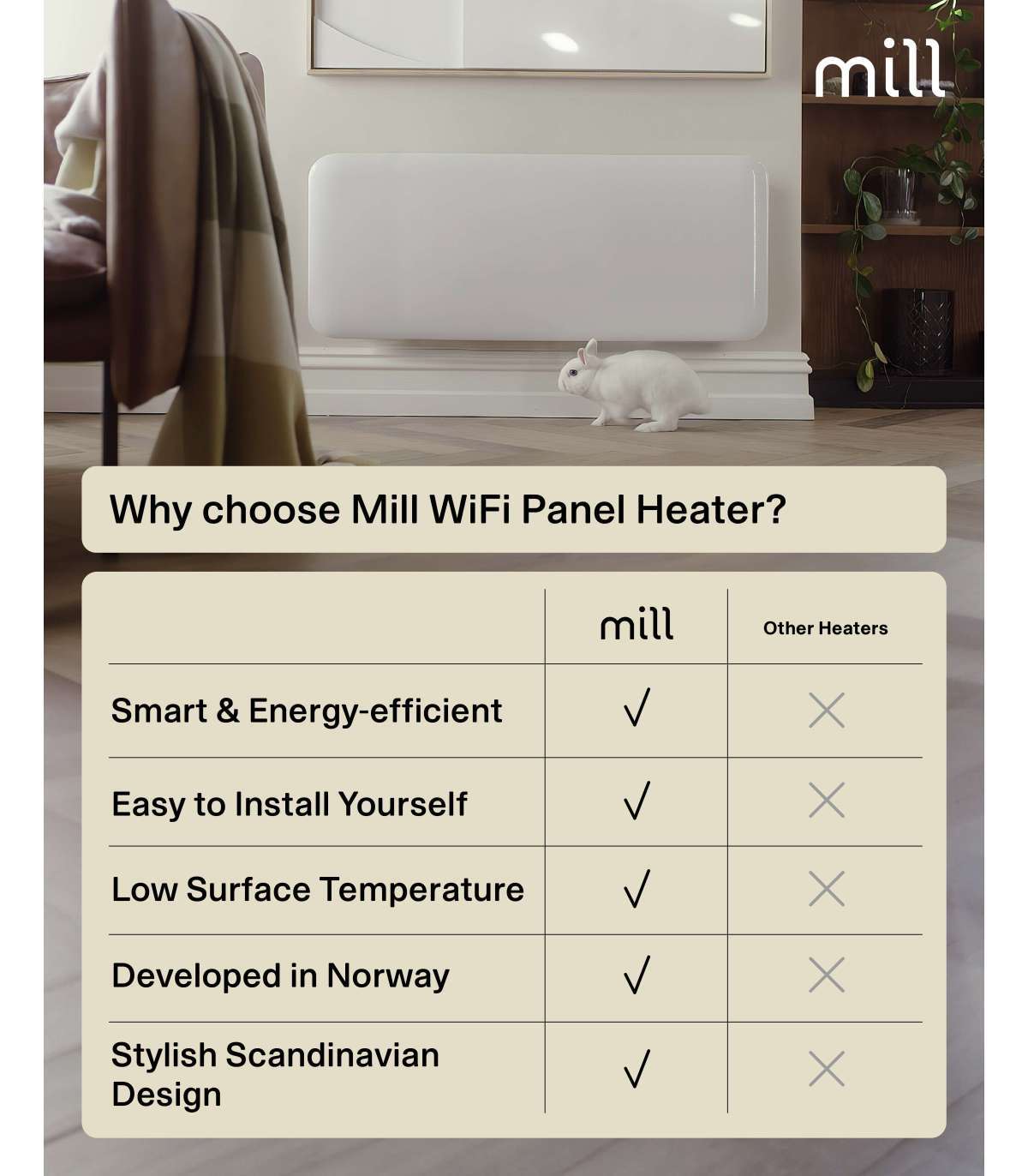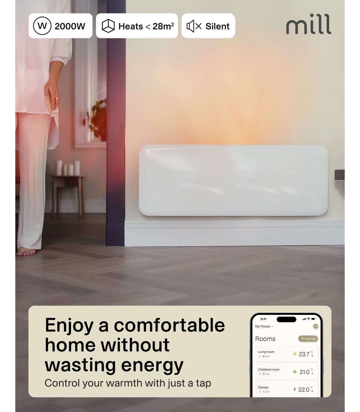 Mill Invisible Smart WiFi Heater PA2000WIFI4 Panel Heater 2000 W Suitable for rooms up to 24-28 m² White |