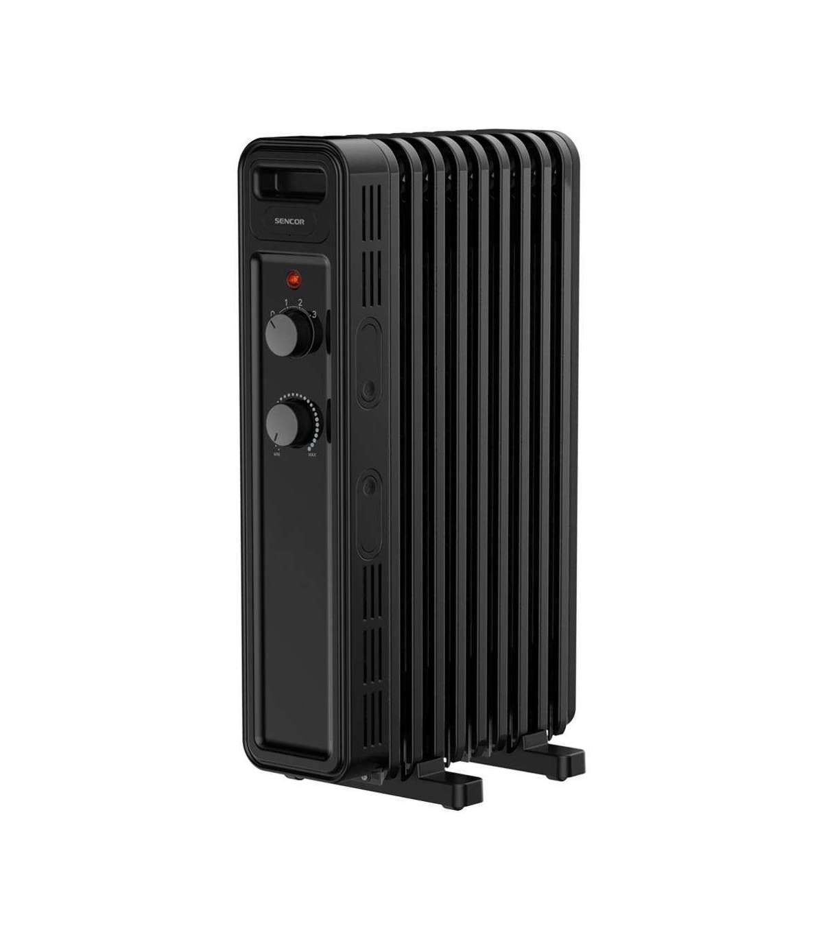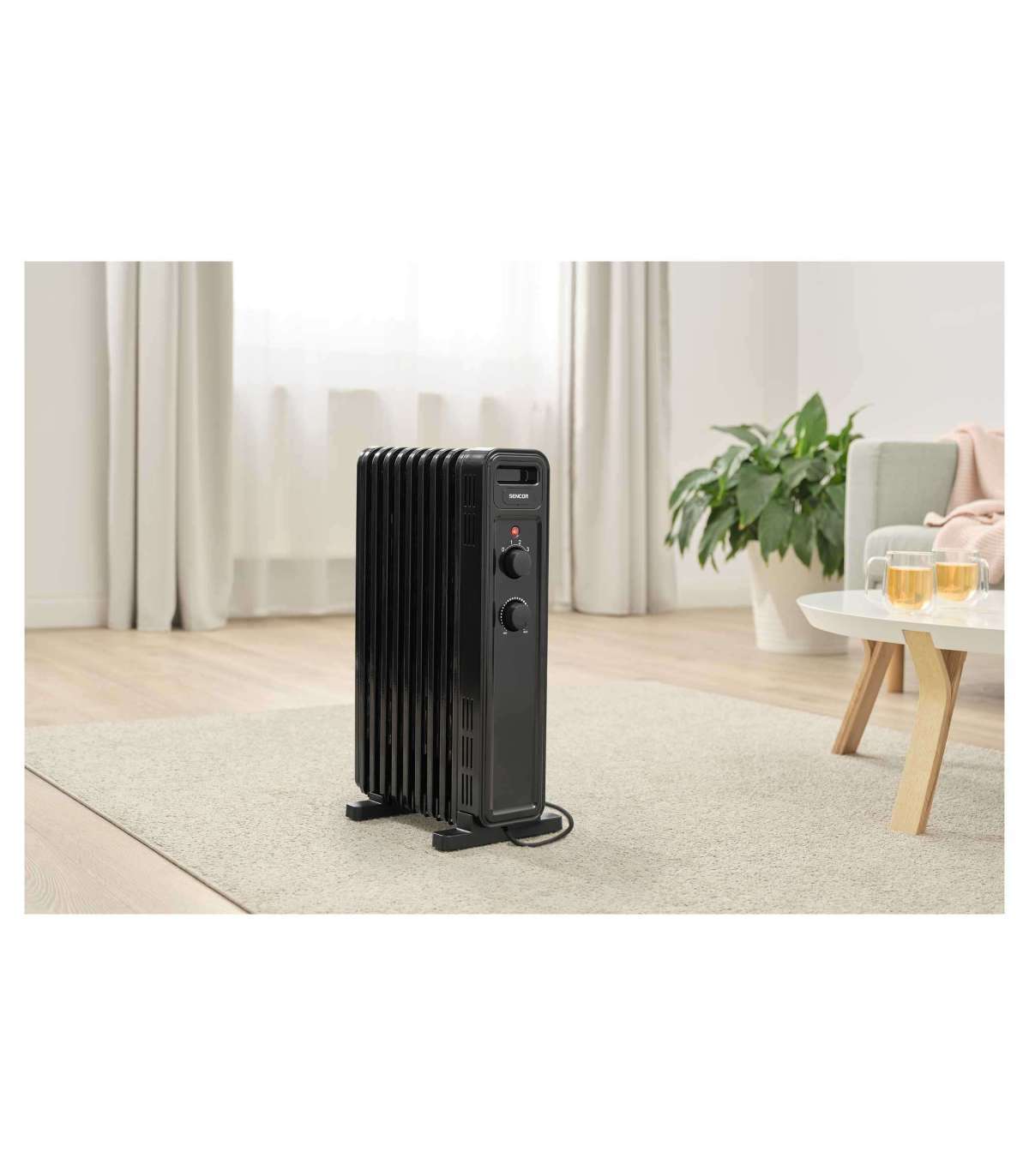 Elegant FLAT SHAPE heating element design and 9-rib Sencor oil-filled radiator for better heating results and increased safety.