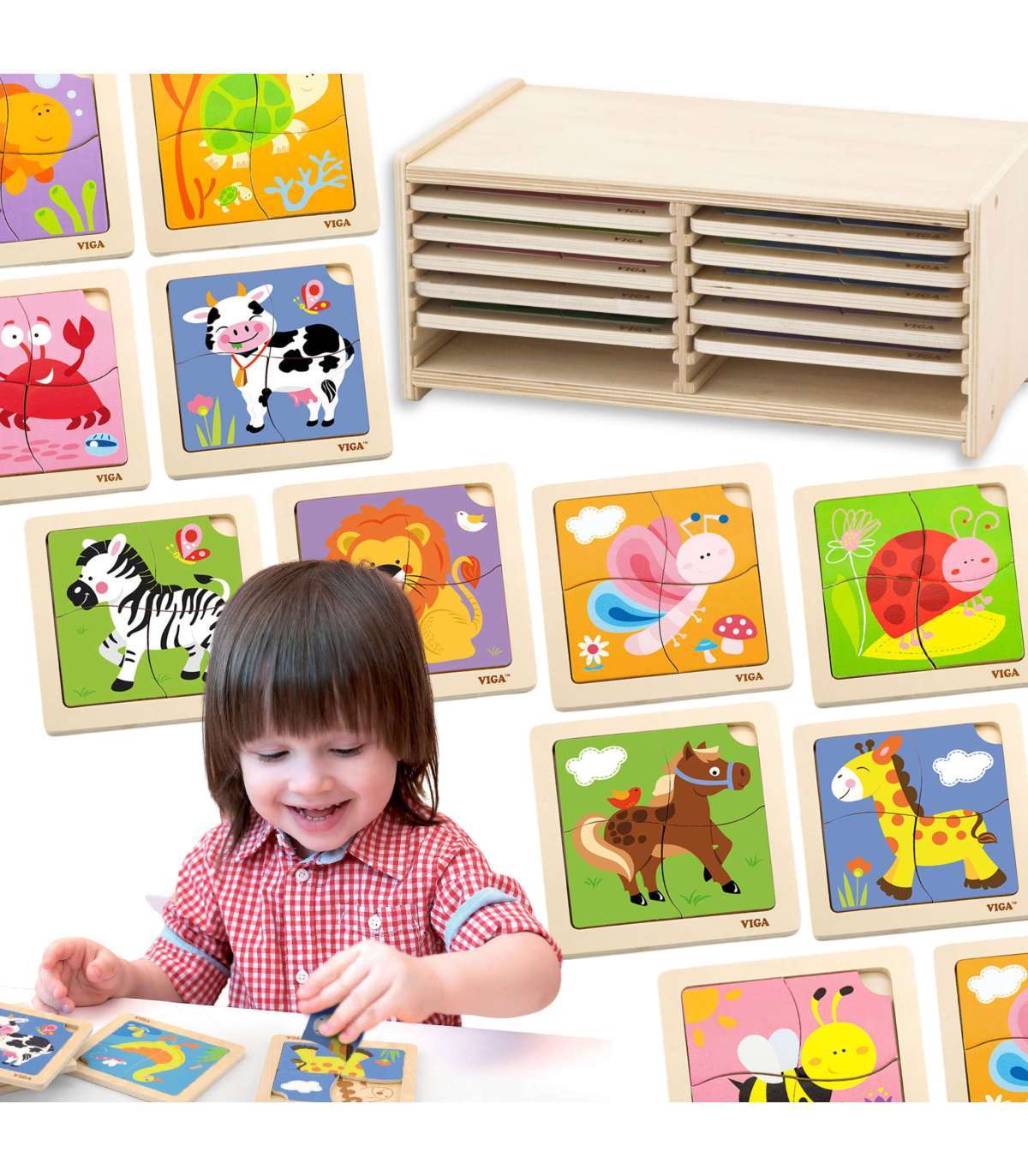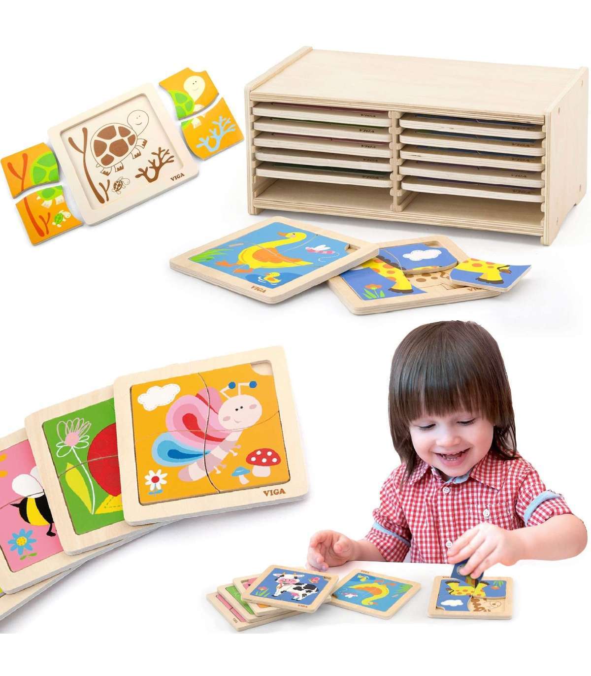 Деревянные пазлы в рамке от фирмы Viga — одна из ведущих игрушек, которая позволит ребёнку войти в мир интересной и творческой игры.