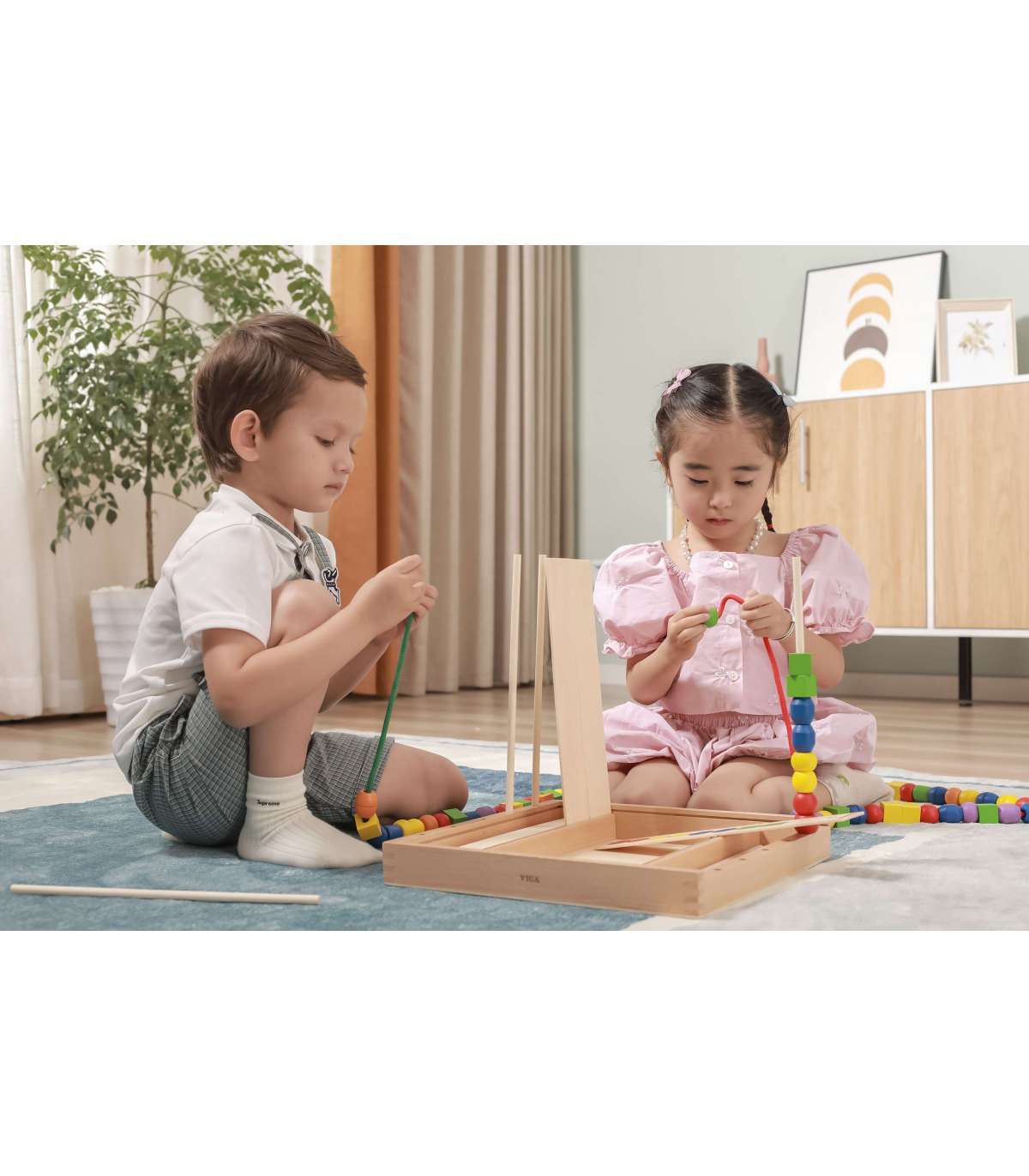 VIGA Деревянная развивающая игра Логические бусины, 104 элемента, Монтессори
