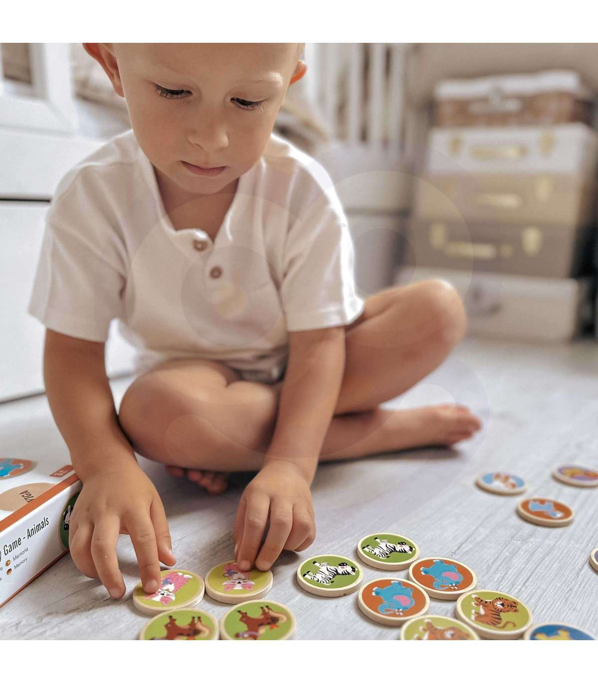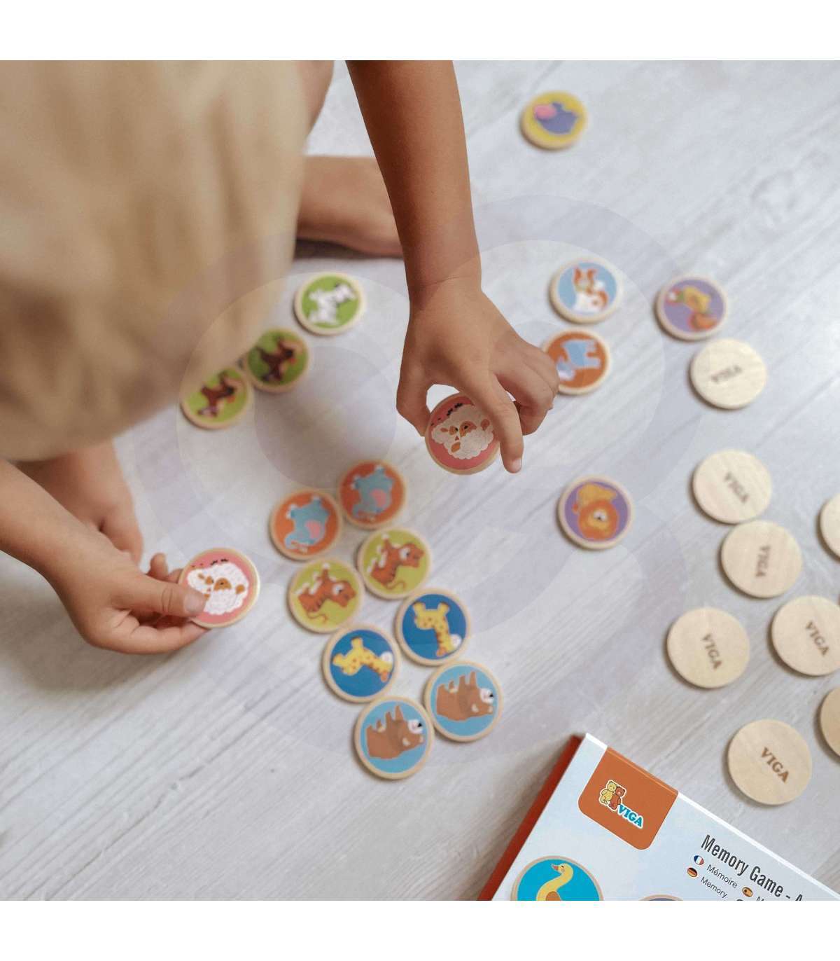Игра «Мемори» от Viga — замечательная идея для совместного времяпрепровождения. Ребёнок через игру развивает память и внимание. Набор содержит целых 16 пар цветных жетонов с изображениями животных. Изделие выполнено из материалов высочайшего качества, безопасных для детей и окружающей среды. Поднимите жетон, запомните картинку под ним и найдите такую же! Выигрывает тот, кто найдёт больше всего пар. Приятной игры!