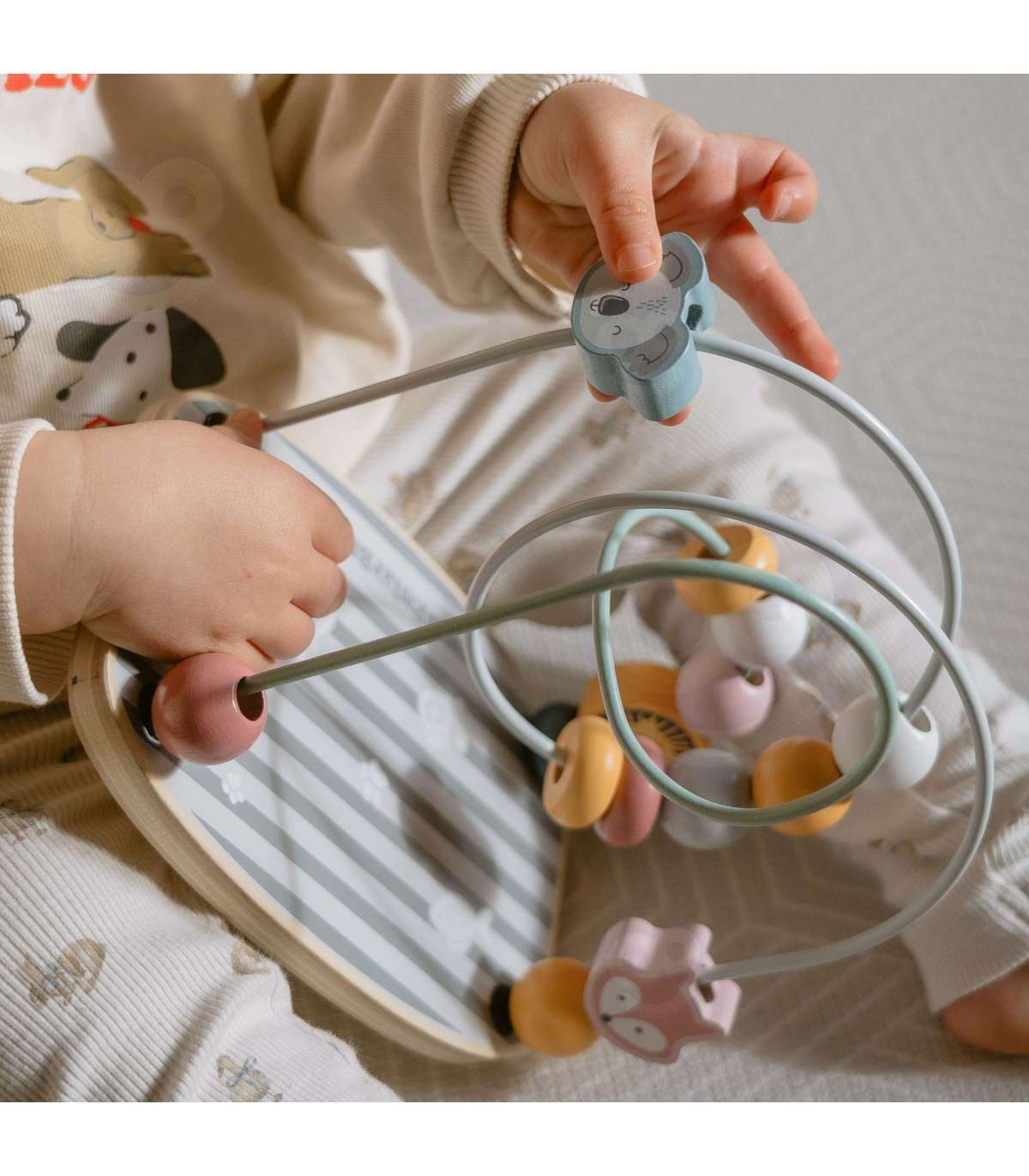 Деревянные моторные петли — отличная сенсорная игрушка, которая позволяет ребёнку тренировать ловкость рук. Продевая бусины по изогнутым трубкам, ребёнок должен выполнять соответствующие движения, чтобы действия увенчались успехом. Таким образом ребёнок учится, какие движения нужно выполнять и как правильно контролировать своё тело, чтобы выполнять задуманные действия. Игрушка состоит из деревянной основы, на которой установлены 4 трубки. На трубках нанизаны цветные бусины и несколько кубиков с изображениями животных, которые несомненно привлекут внимание малышей.