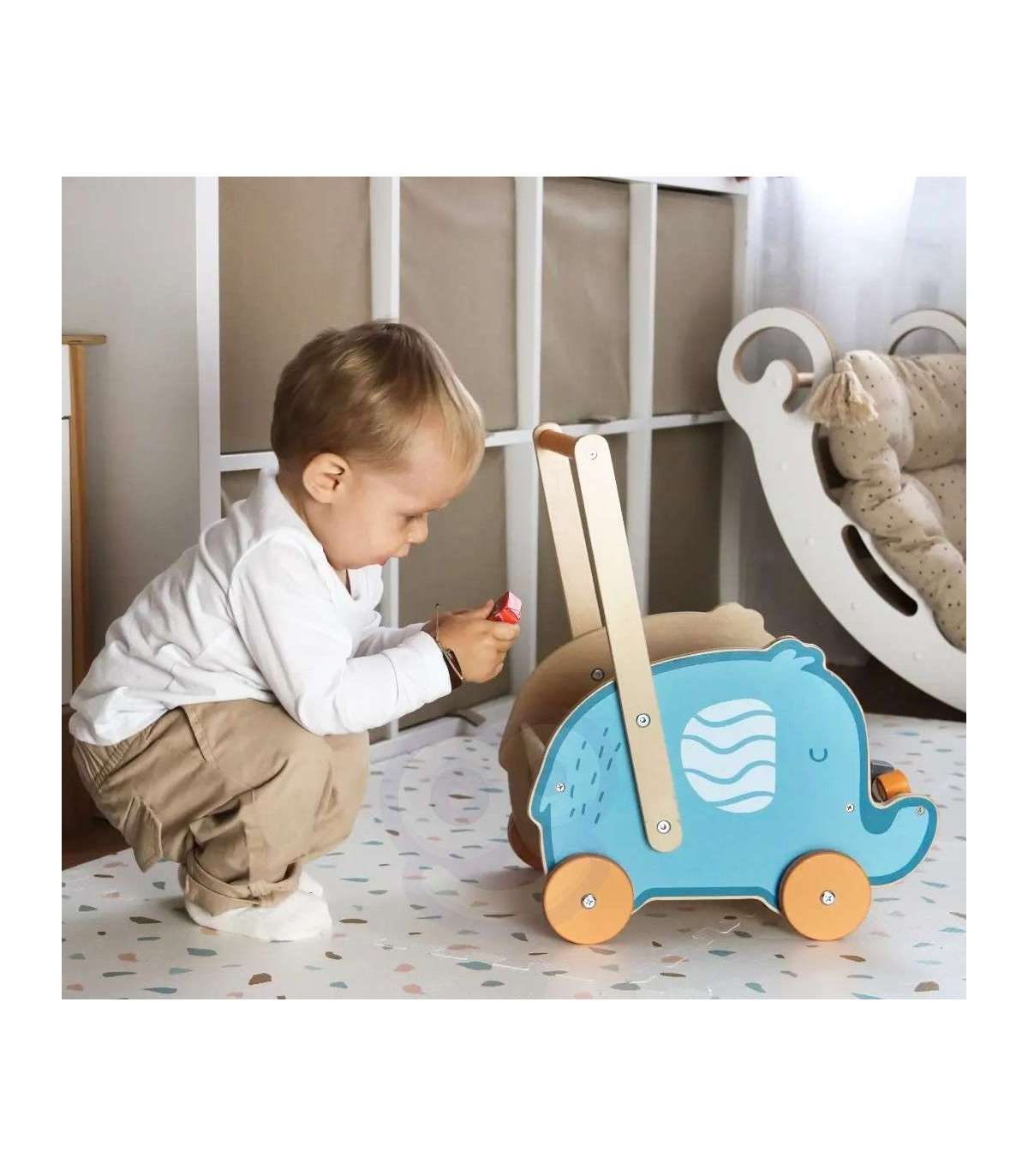 VIGA PolarB деревянная 2-в-1 ходунки и каталка — слоник