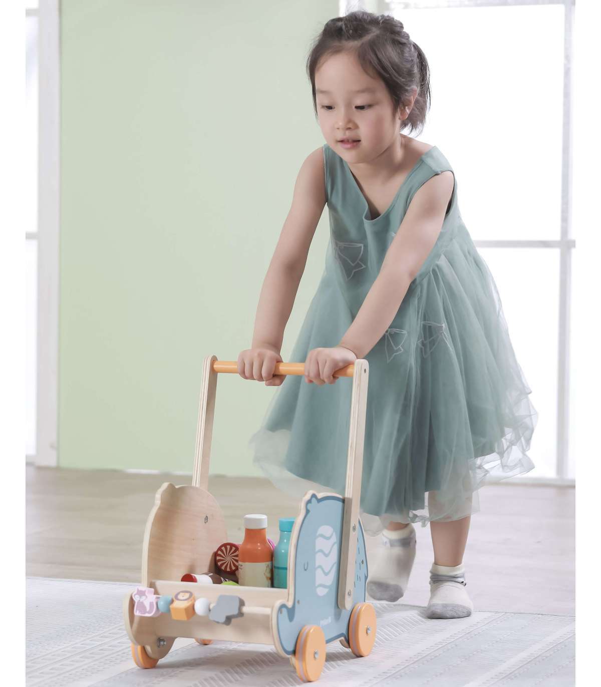 Серия деревянных игрушек PolarB от Viga Toys отлично способствует развитию крупной и мелкой моторики. Ходунки относятся к самым часто выбираемым игрушкам для детей, которые начинают делать первые шаги. Прогулка с ходунками — настоящее удовольствие; они помогают сохранять равновесие при совершенствовании ходьбы. Колеса везочка имеют резиновые накладки, предназначенные для гашения шумов и обеспечения антискользящих свойств. Вся конструкция выполнена из высококачественной буковой древесины. Игрушка отлично сочетает функции ходунка и коляски.