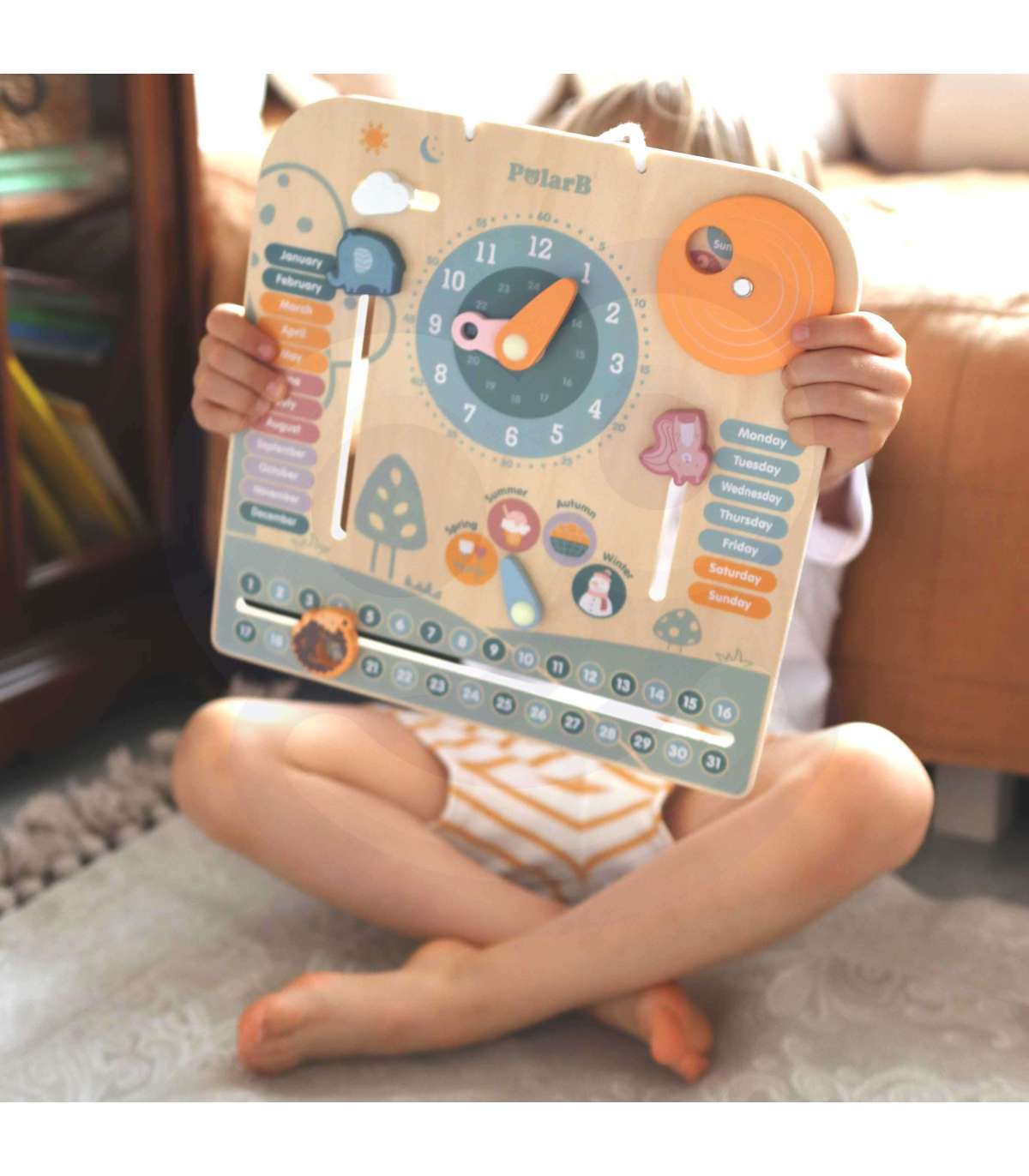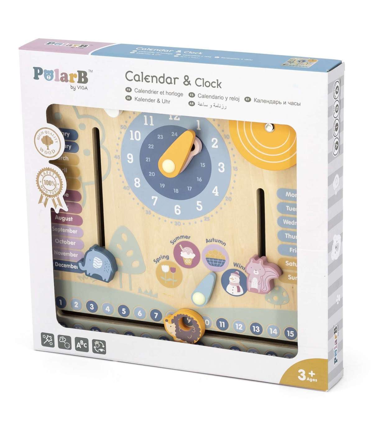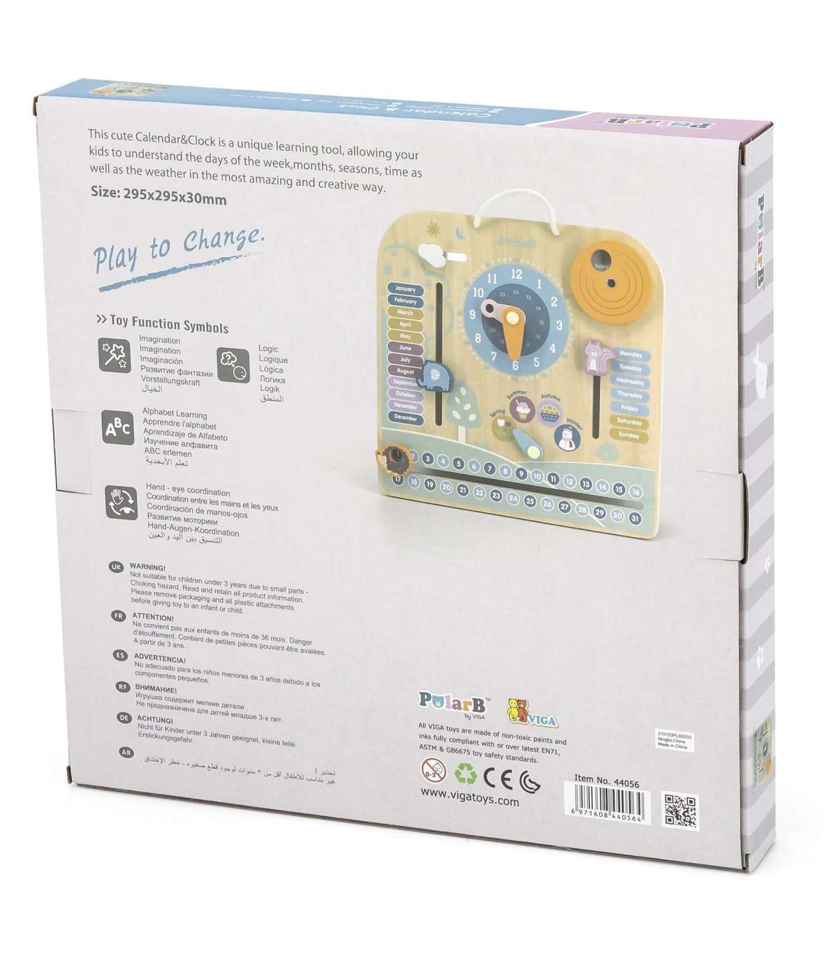 VIGA PolarB Деревянный Календарь и Часы — это прекрасное сочетание игры и обучения. Игрушка поможет ребёнку научиться пользоваться часами и развить чувство времени. Благодаря цветным картинкам и фигуркам мы можем научить нашего малыша названиям дней недели, месяцев и времён года на английском языке. Это идеальное сочетание приятной игры и полезного обучения. Вся серия игрушек POLAR BEAR создана компанией VIGA, чтобы соответствовать ожиданиям родителей и детей в совершенствовании их процесса развития через игру.
