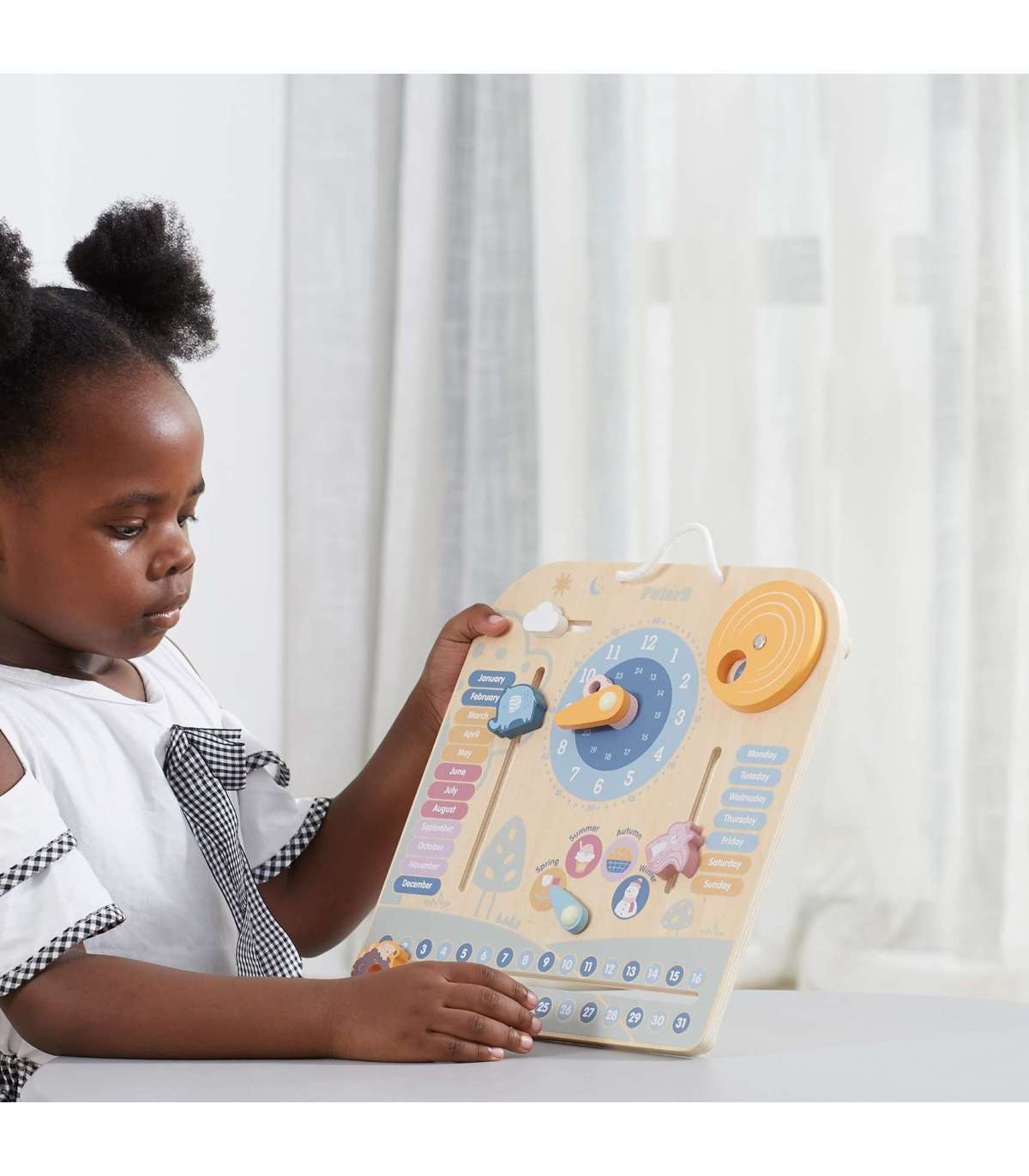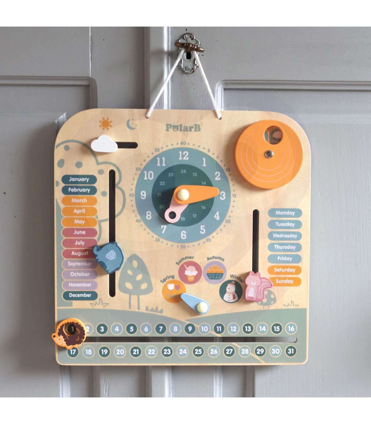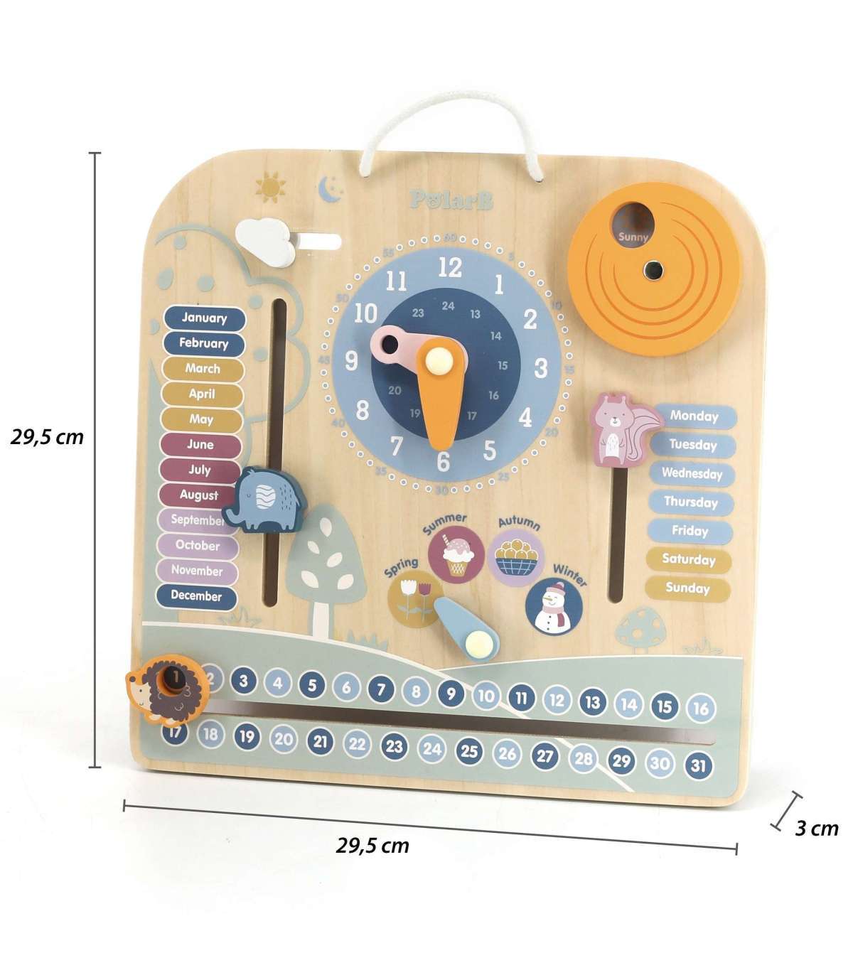 VIGA PolarB Деревянный Календарь и Часы — это прекрасное сочетание игры и обучения. Игрушка поможет ребёнку научиться пользоваться часами и развить чувство времени. Благодаря цветным картинкам и фигуркам мы можем научить нашего малыша названиям дней недели, месяцев и времён года на английском языке. Это идеальное сочетание приятной игры и полезного обучения. Вся серия игрушек POLAR BEAR создана компанией VIGA, чтобы соответствовать ожиданиям родителей и детей в совершенствовании их процесса развития через игру.
