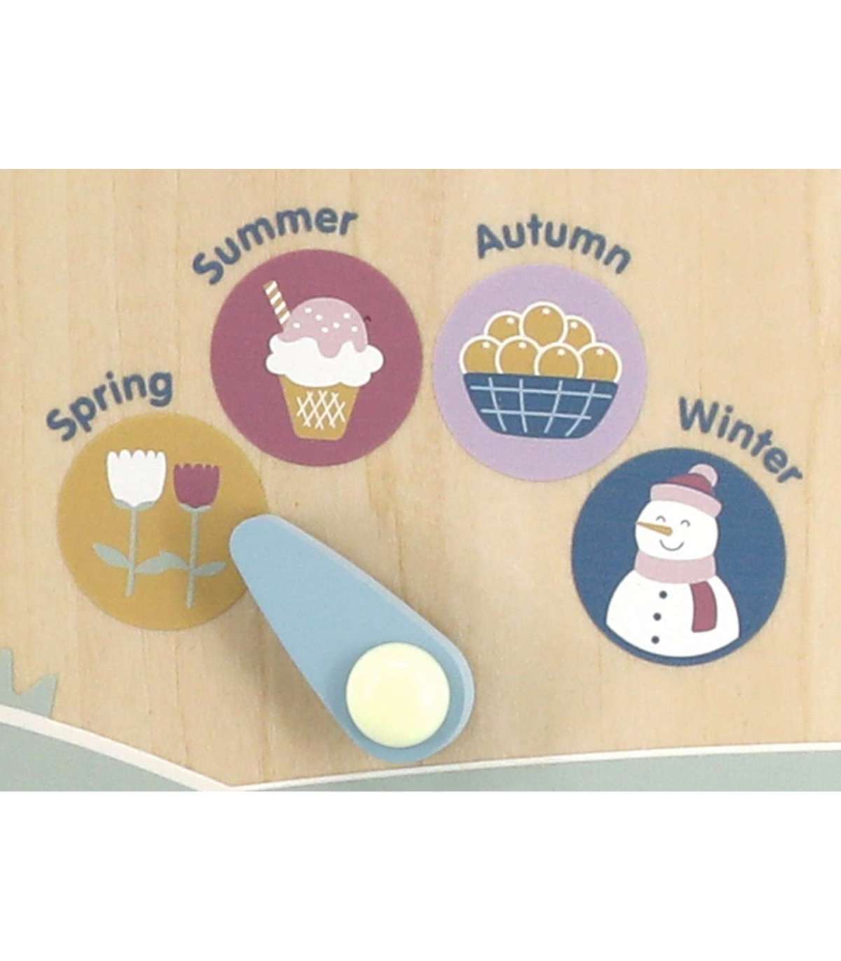 - деревянная игрушка с часами и обозначениями: дни недели, месяцы, времена года и погода,