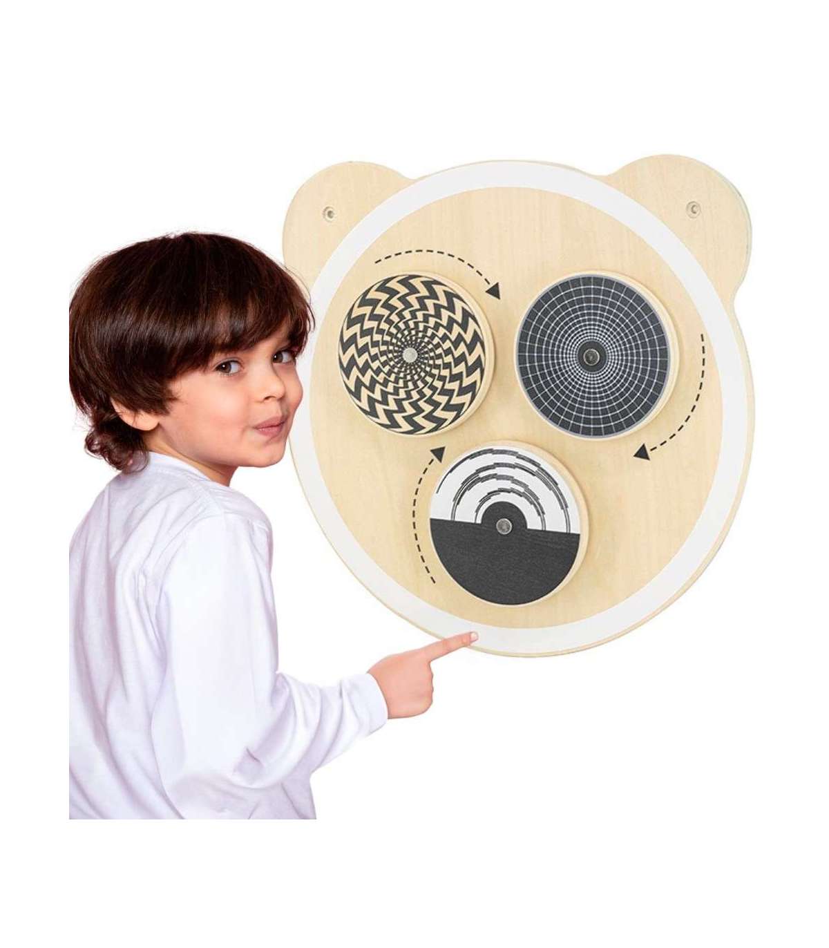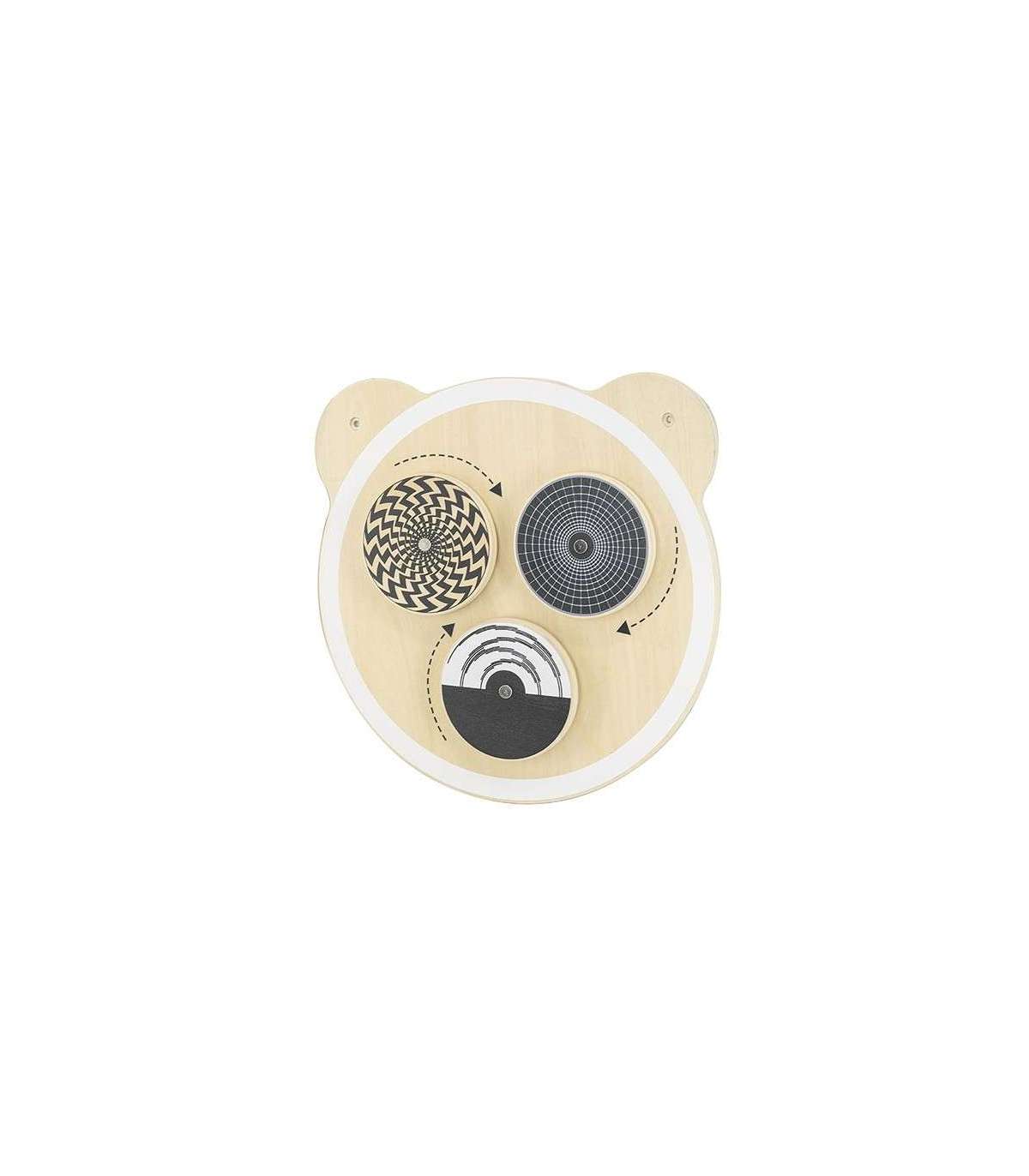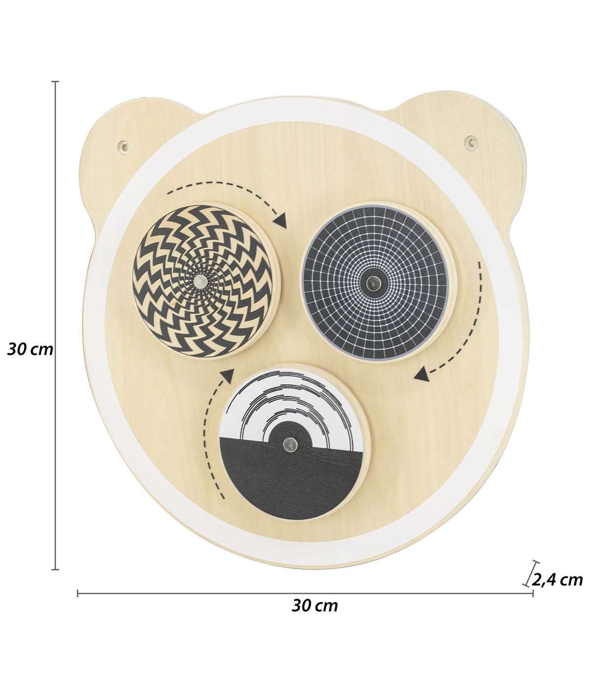 Одна из серий деревянных досок с милой головой медвежонка. Доска с тремя кружками, которые были окрашены таким образом, чтобы при вращении вызывать оптические иллюзии. Игрушка помогает развивать логическое мышление у детей, а также помогает развивать воображение. Продукт идеально подойдет как для домашнего использования, так и для образовательных учреждений начального уровня. Интересная форма доски наверняка привлечет внимание любого малыша. Вся конструкция выполнена из лакированной древесины и окрашена нетоксичными красками в яркие цвета, которые порадуют каждого пользователя и принесут много радости от игры. Изделие предназначено для детей от 18 месяцев. В нашем ассортименте доступна целая серия досок с головой медвежонка.