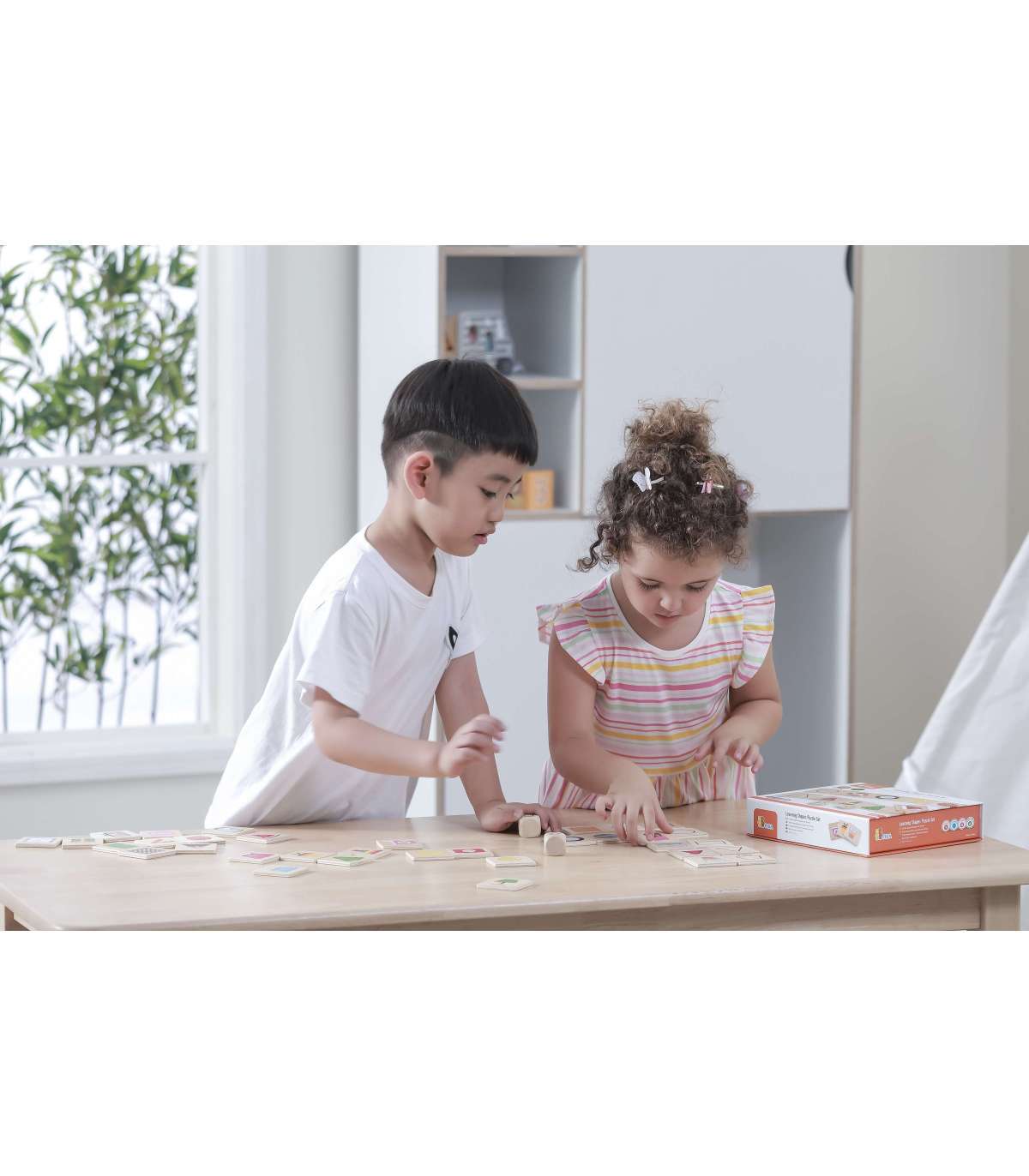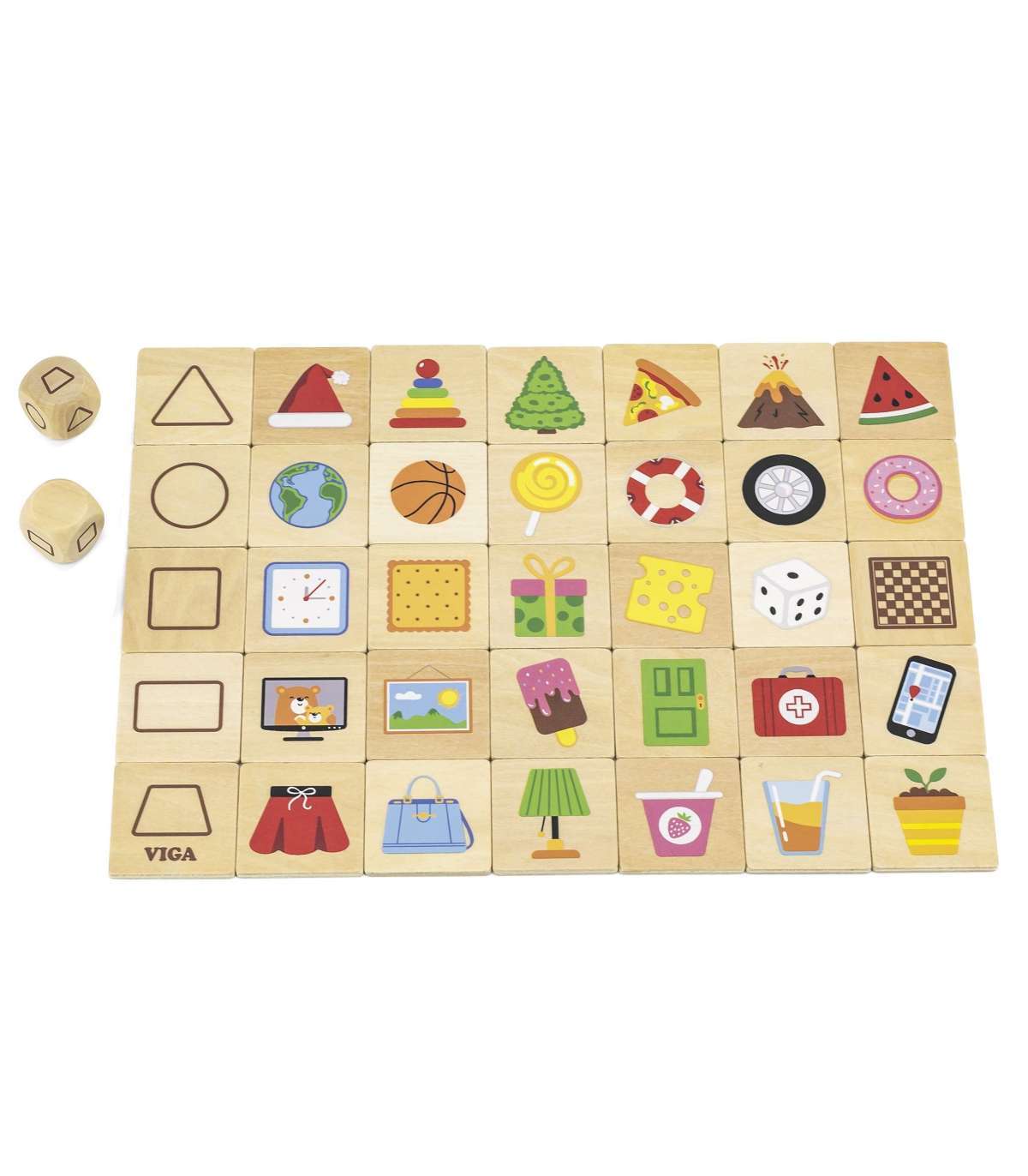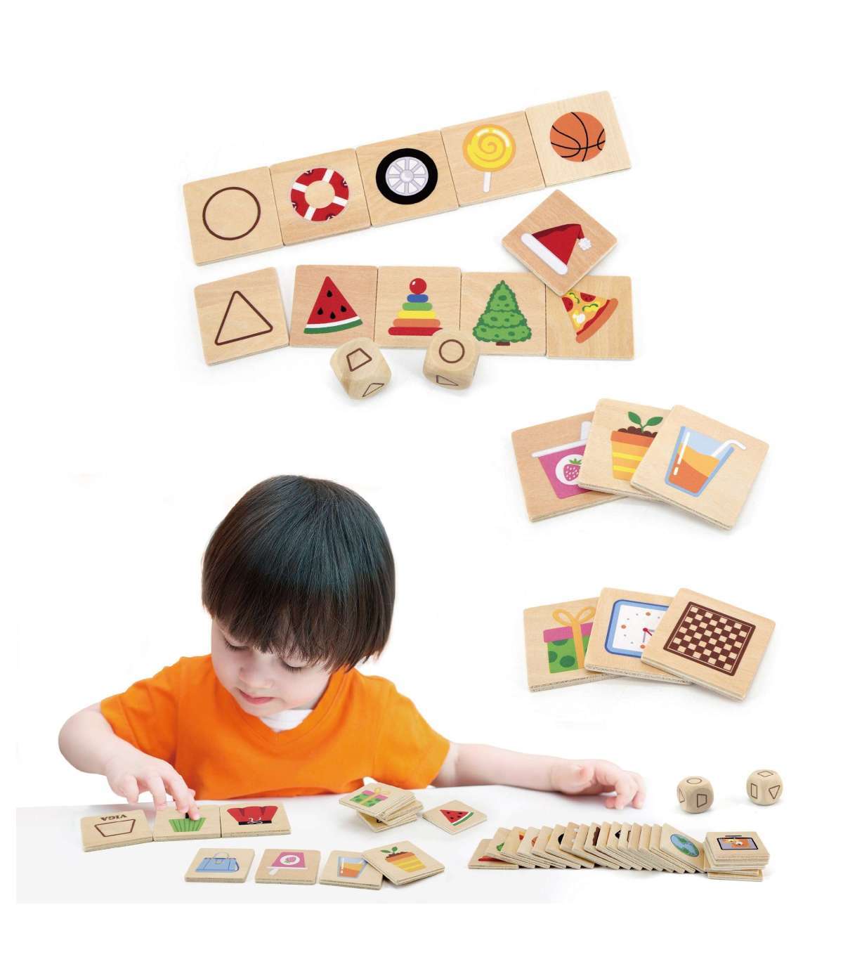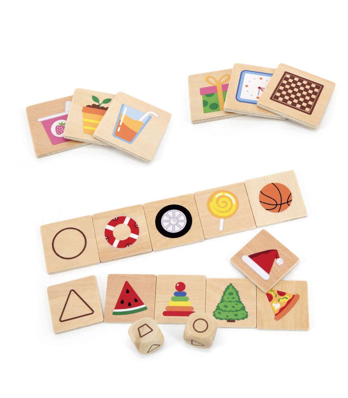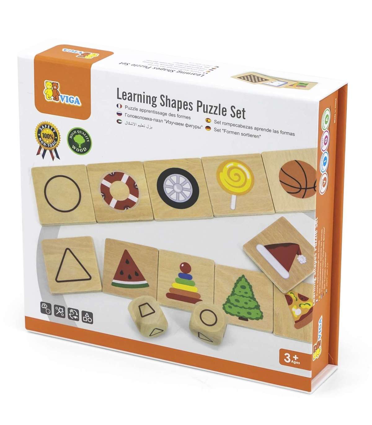 Деревянная головоломка для изучения и сортировки форм. Задача ребёнка — сопоставить предметы с выбранными формами. Иллюстрации показывают многие предметы повседневного обихода, например цветочный горшок и кусочек пиццы. Ребёнок, глядя на цветочный горшок, увидит в нём форму трапеции, а кусочек пиццы будет треугольником. Вся конструкция выполнена из дерева и окрашена нетоксичными красками. В прилагаемой инструкции приведены варианты игры для одного человека и для нескольких человек, а также с разным уровнем сложности.