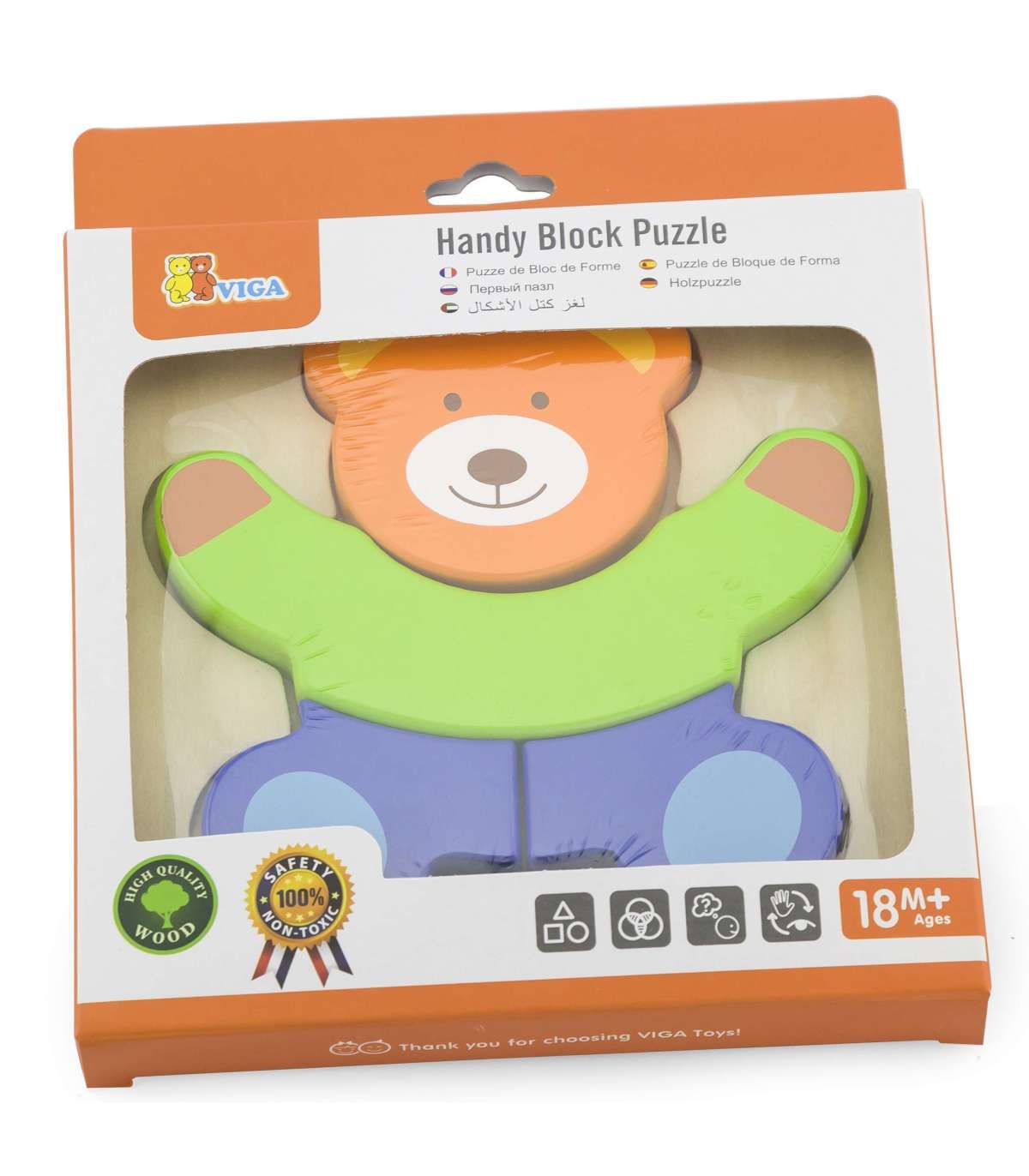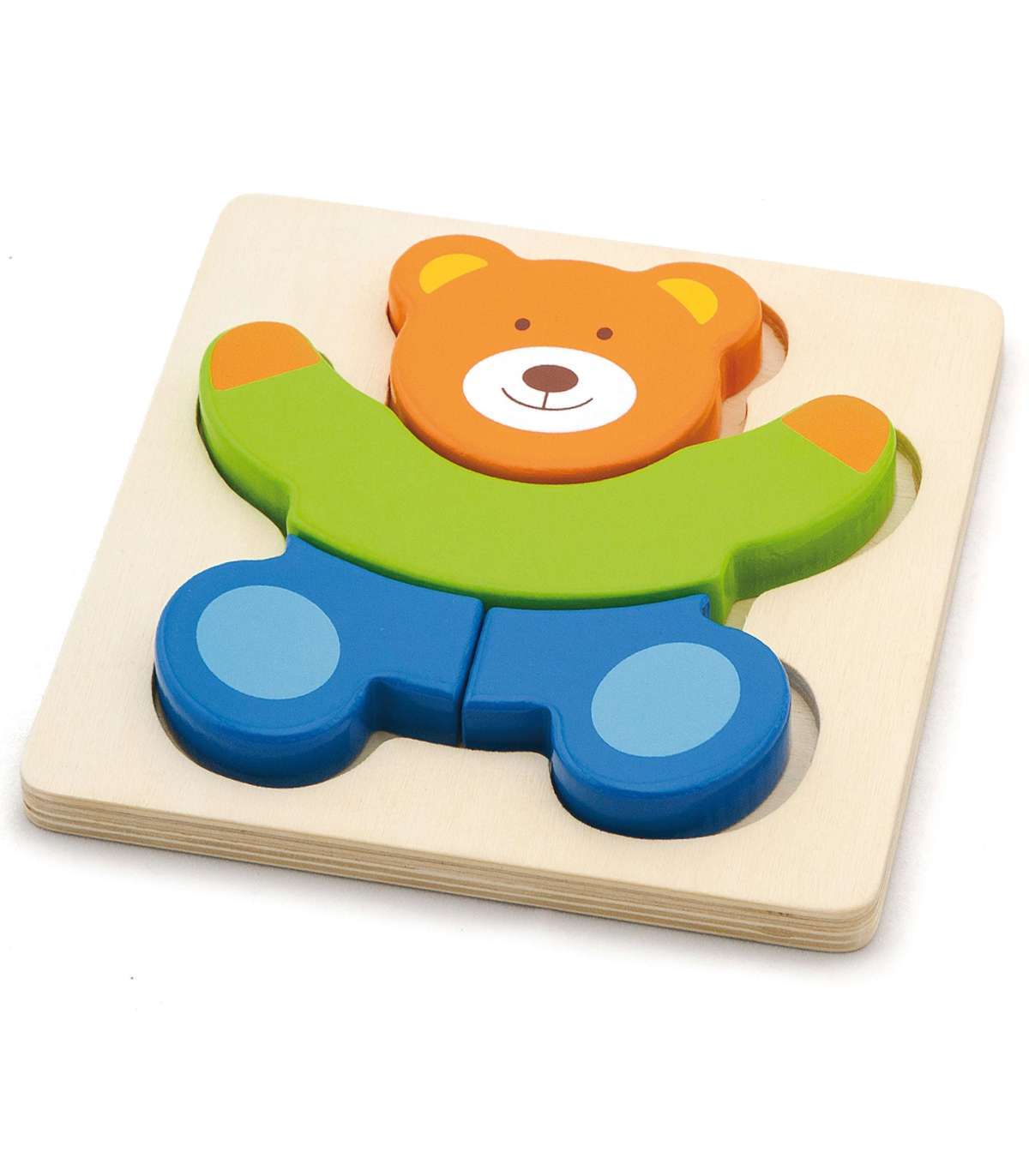 Деревянные мини-пазлы от известного бренда Viga для детей — идеальное решение для дома и детского сада. Пазл состоит из 4 элементов, которые вместе образуют медвежонка. На деревянной основе есть углубление, форма которого соответствует цветным кусочкам пазла.