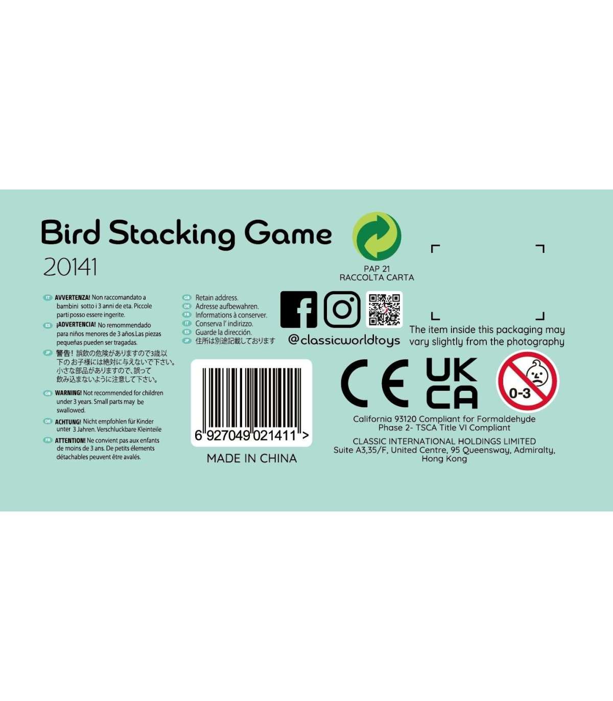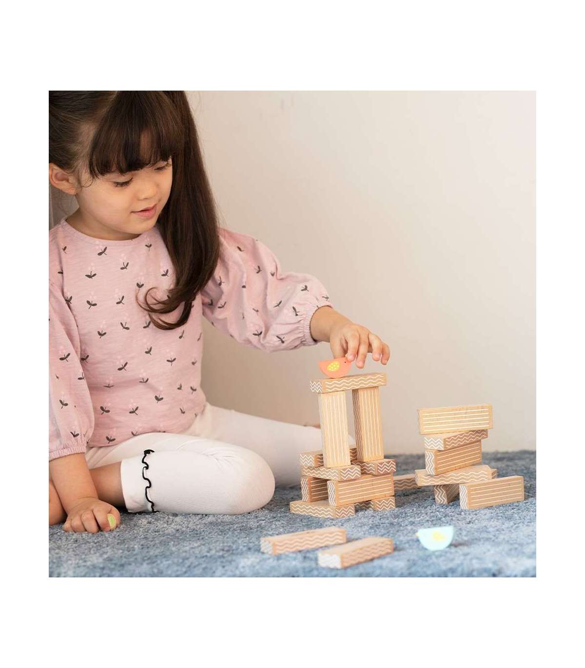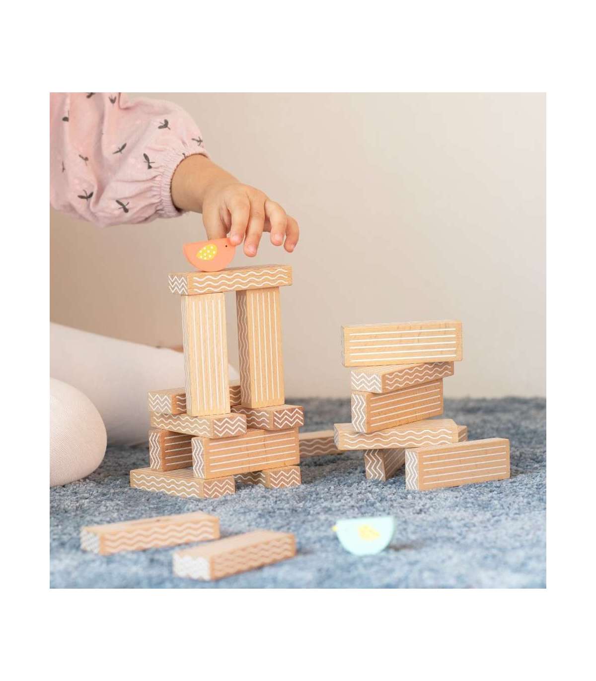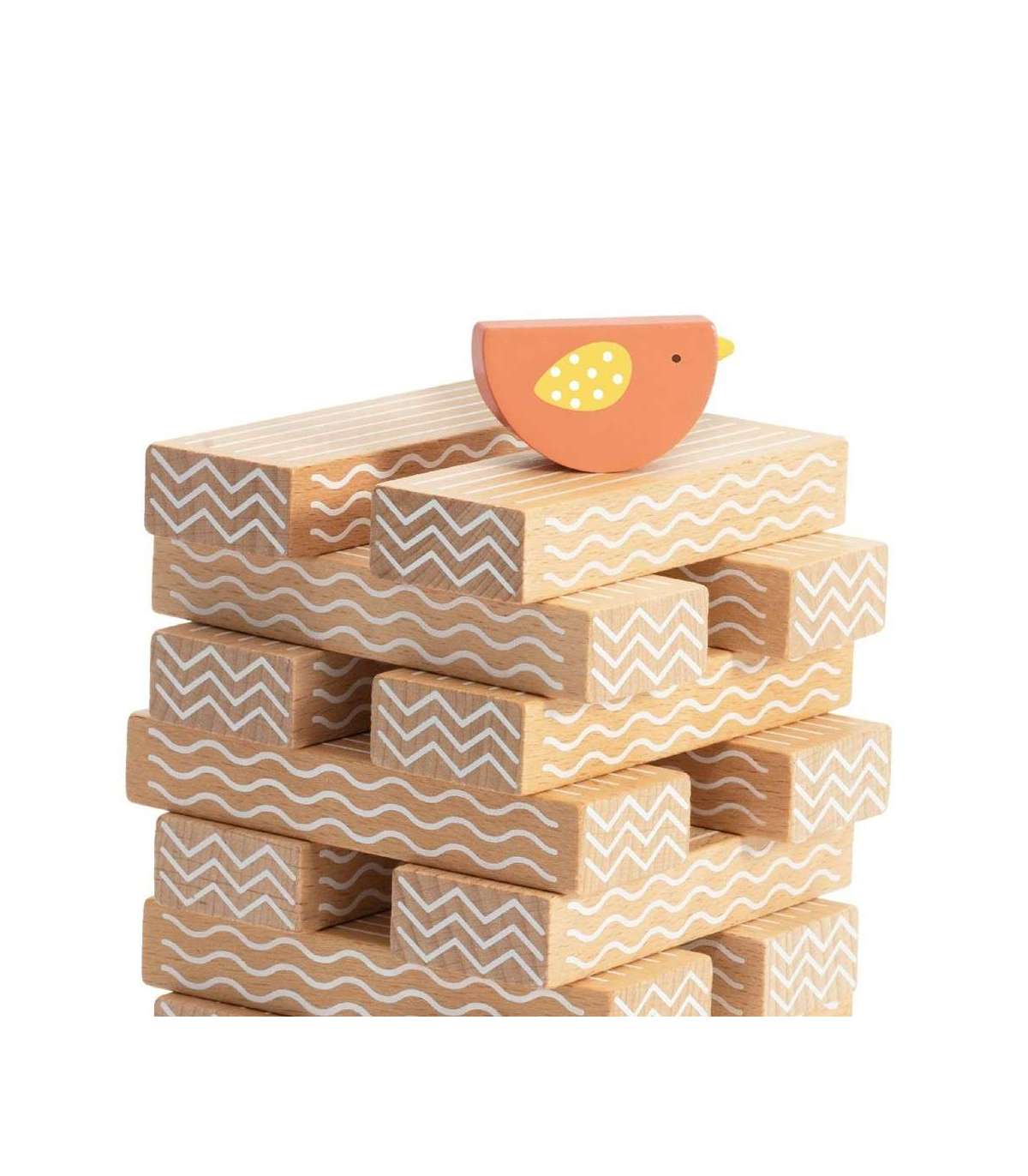 - В комплекте: 20 блоков, 2 птицы и игровой кубик.