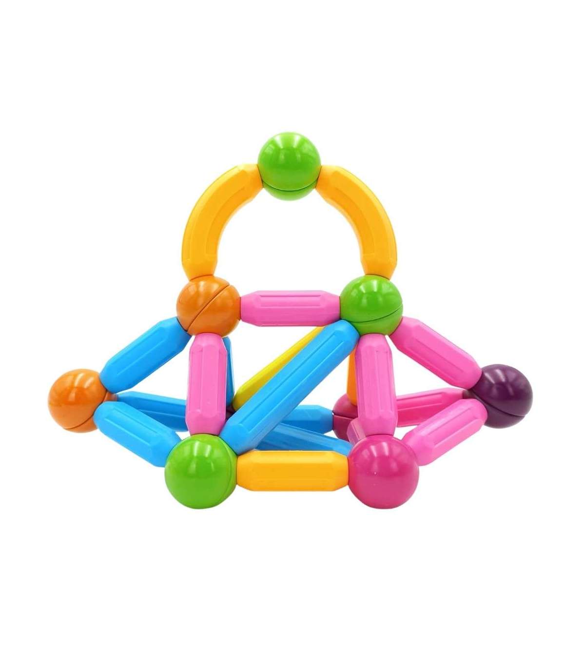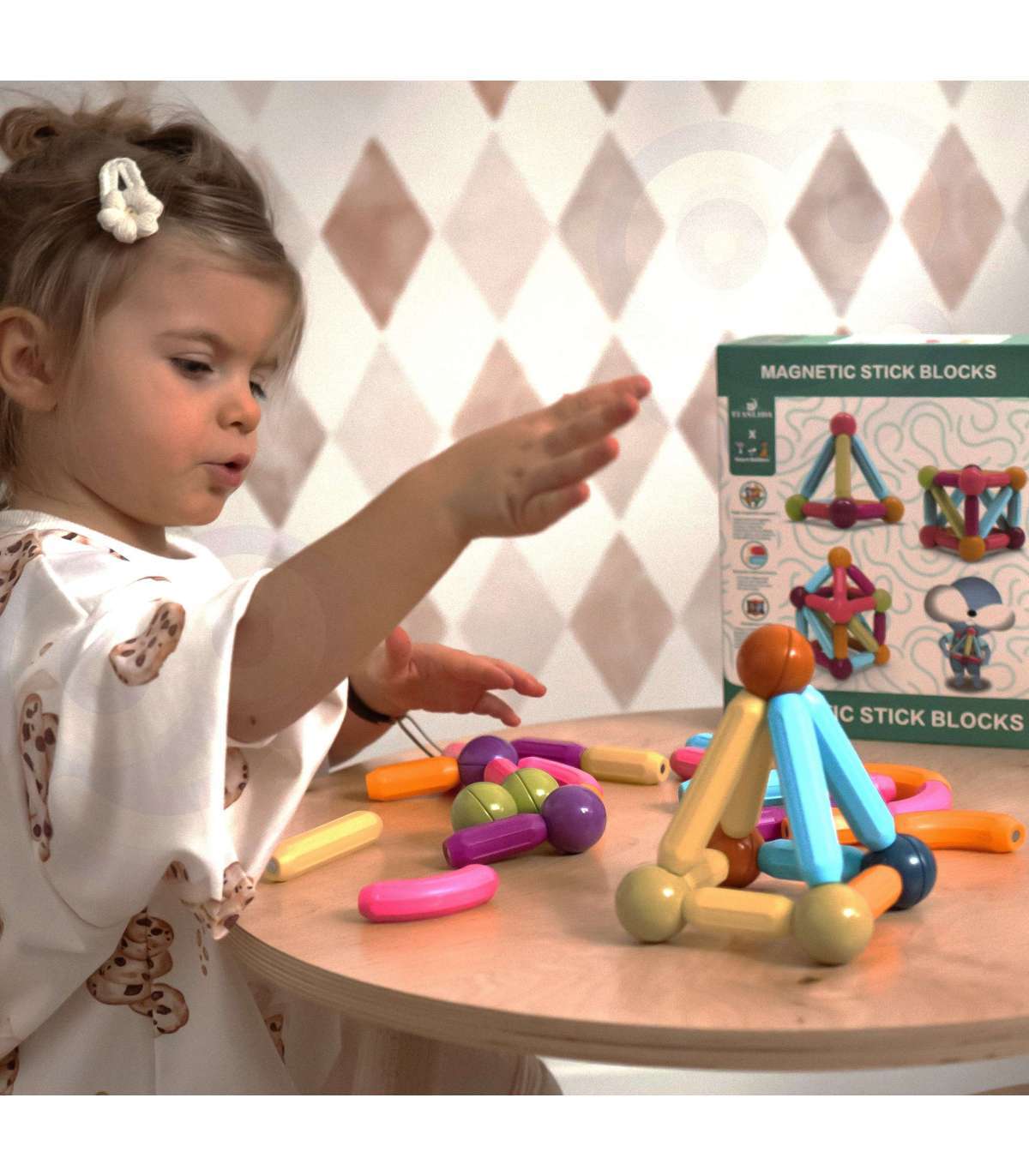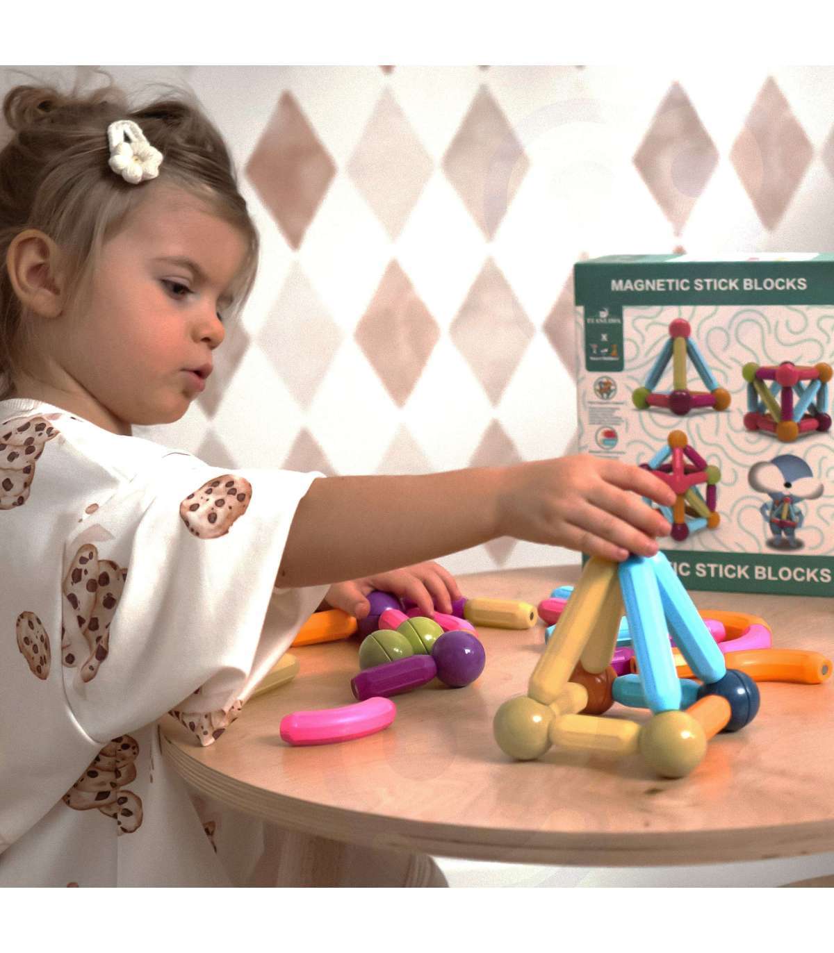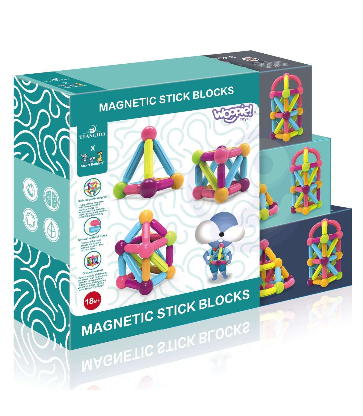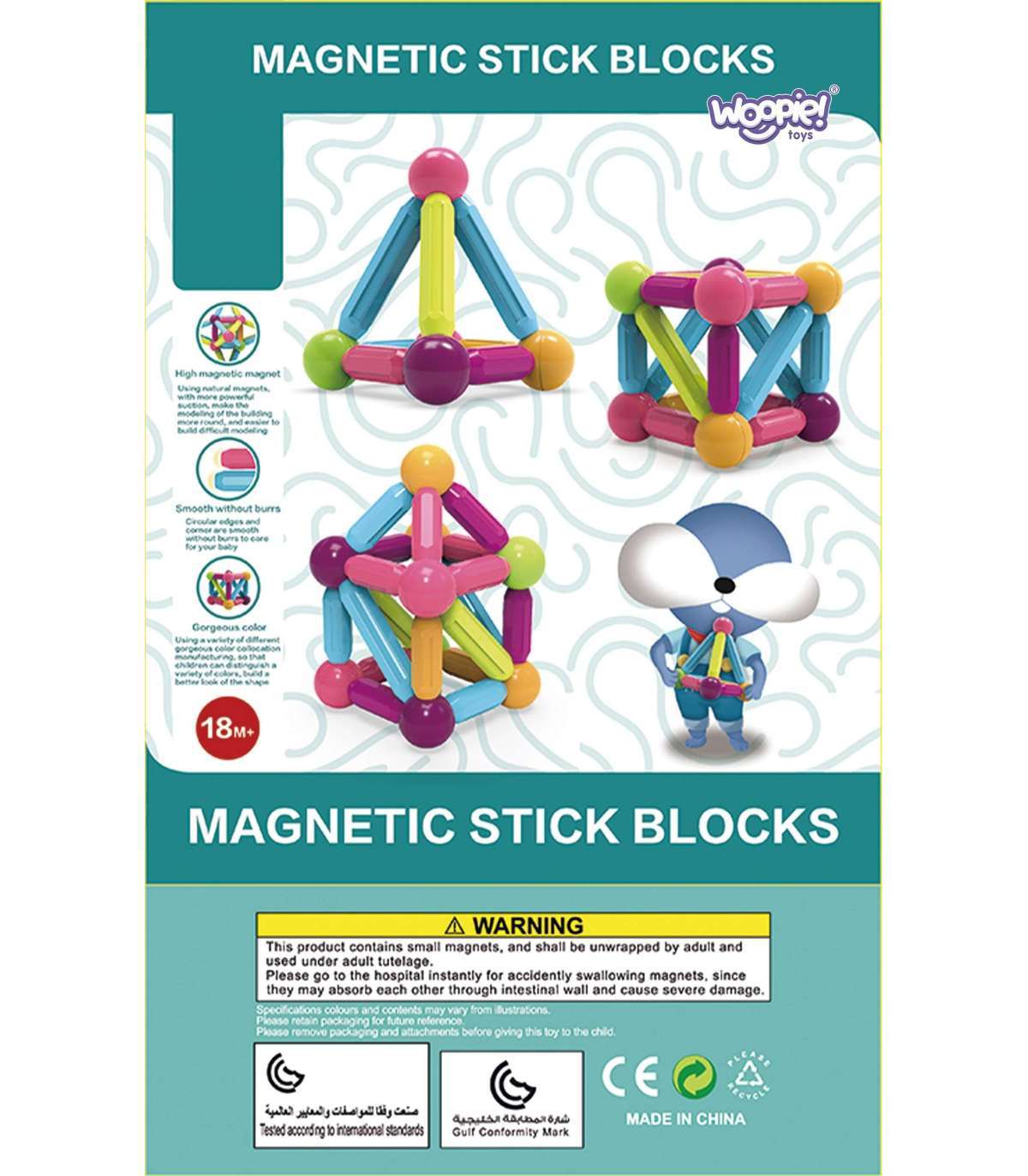 Набор толстых магнитных блоков от бренда WOOPIE сочетает в себе игру и обучение! Достаточно, чтобы юный конструктор соединил элементы и начал создавать вычурные сооружения и многие другие конструкции, например геометрические фигуры или мини-домик! Единственным ограничением является воображение. Набор содержит 38 элементов. Блоки толстые, разноцветные и безопасные - идеально подходят для маленьких детских рук. Всё упаковано в удобную коробочку. Сборка конструкций из блоков развивает у ребёнка креативность, мелкую моторику ("fine motor skills"), пространственное воображение и концентрацию.