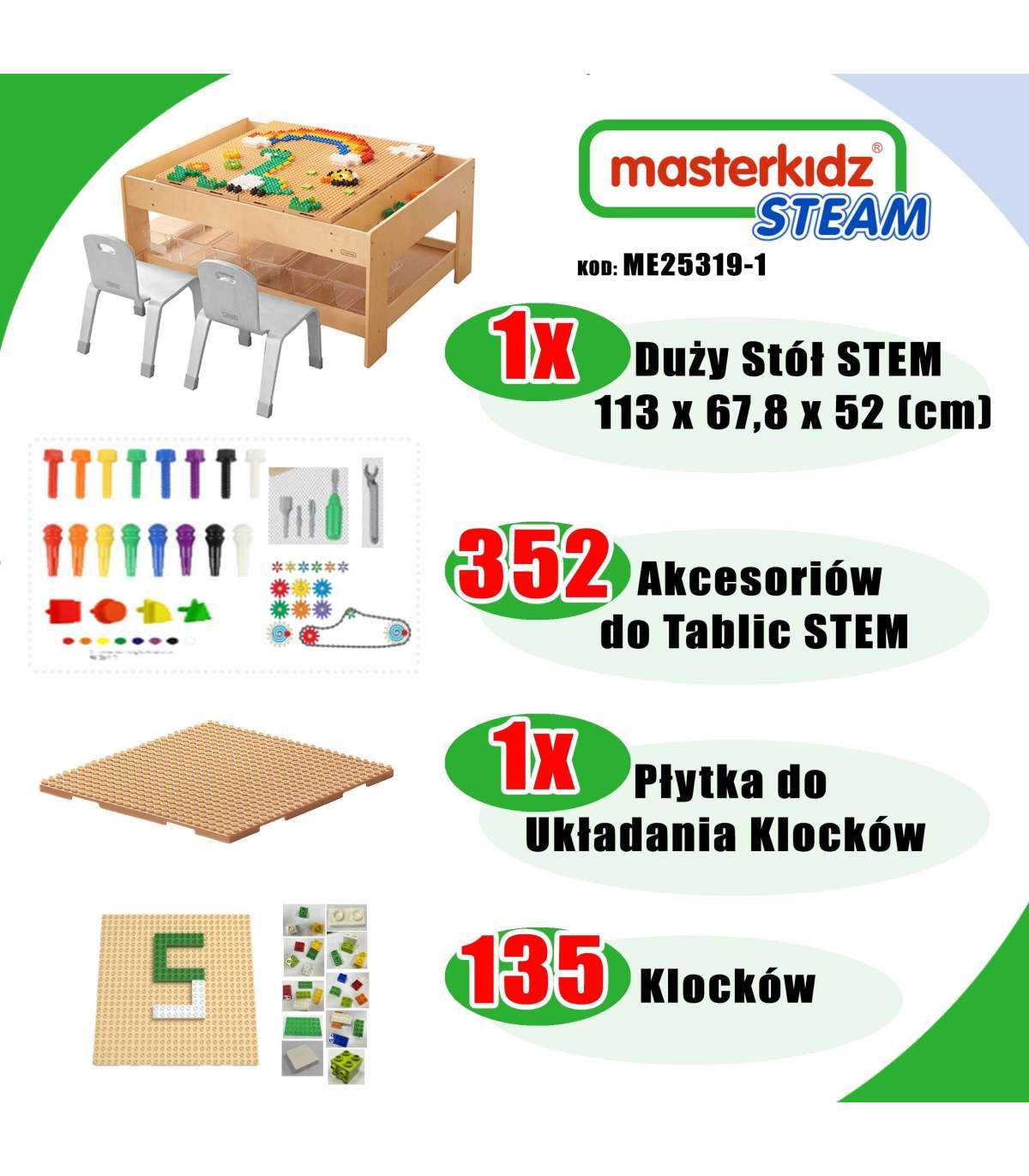 MASTERKIDZ деревянный образовательный стол + аксессуары STEM WALL + 135 блоков