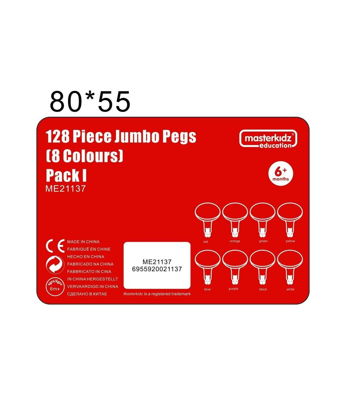 - Набор содержит 128 больших пластиковых колышков в 8 ярких цветах, по 16 колышков каждого цвета