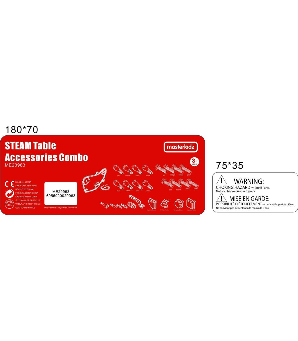 Набор аксессуаров STEM от бренда Masterkidz содержит базовые аксессуары для игры с системой Masterkidz STEM. В комплект входят 128 штырей, 128 винтов, 64 геометрических штыря, 2 набора инструментов, 18 зубчатых колес, держатель для колеса и цепь. Этот набор разработан для творческой игры и изучения науки через эксперименты и конструирование. Дети могут использовать эти аксессуары для создания различных узоров и конструкций, что развивает их мелкую моторику, логическое мышление и понимание базовых принципов механики и инженерии. Этот набор — отличный старт для игры с системой Masterkidz STEM. Он совместим как со стенными панелями, так и с напольными/отдельностоящими панелями; для начала игры требуется одна из них.