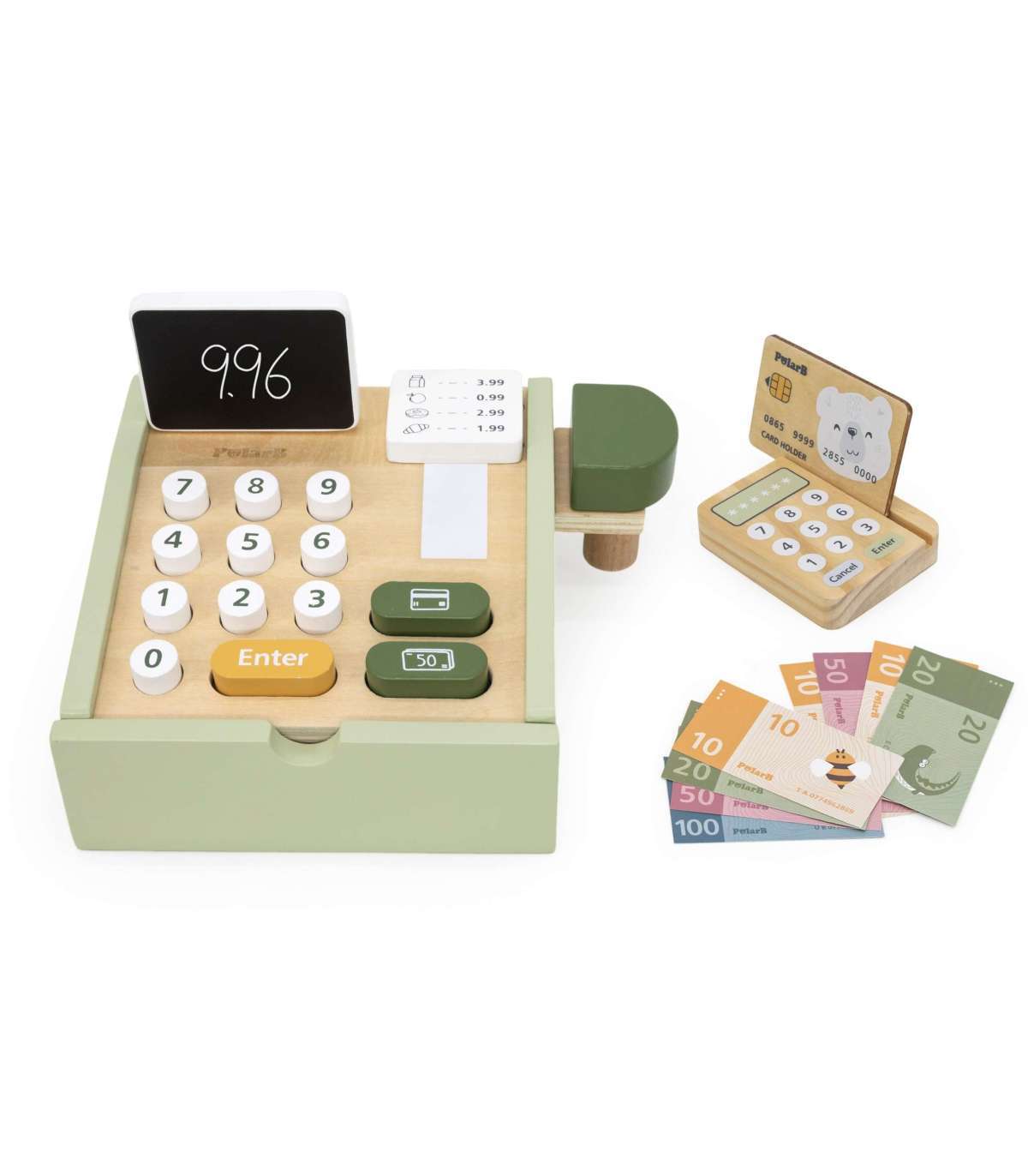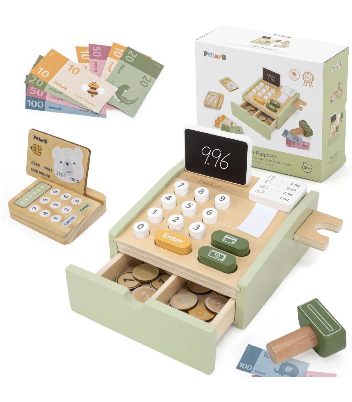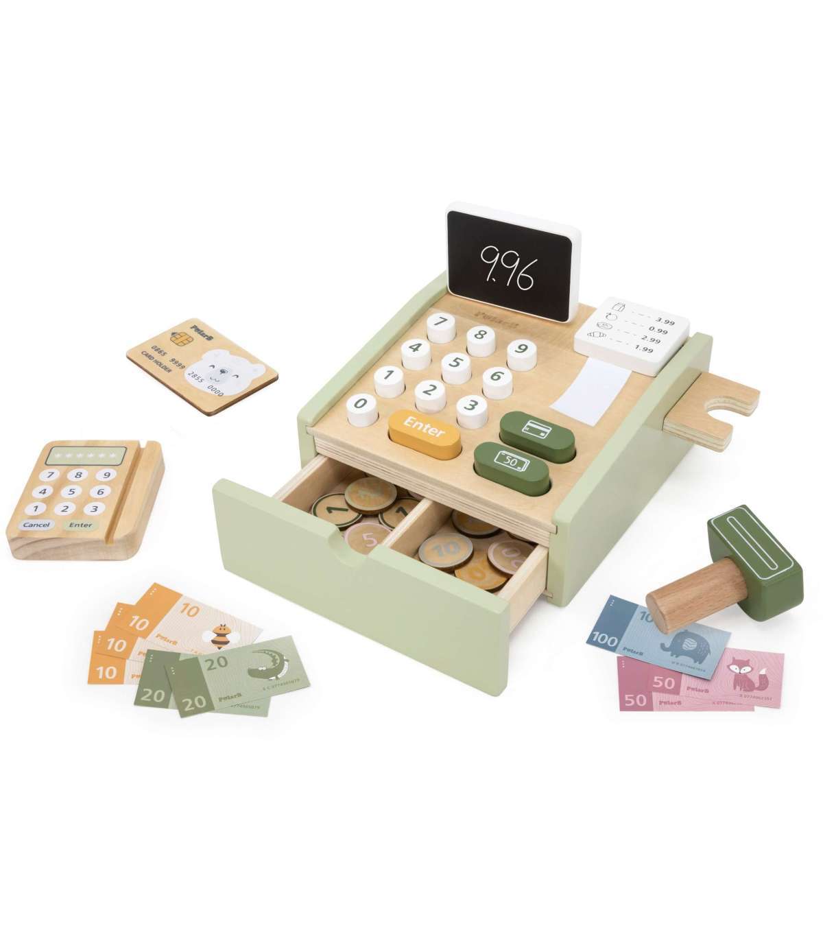 Игровая касса — отличная деревянная игрушка, которая позволяет разыгрывать множество сценок, происходящих в магазине. Дети могут примерять роли кассира или покупателя и совместно отрабатывать социальные взаимодействия и свои коммуникативные навыки. Наличные или карта? Посчитайте сумму к оплате, примите деньги и правильно дайте сдачу. Касса содержит банкноты, монеты и платежную карту. Ребенок может учиться, играя! Королева наук — математика больше не будет страшна.