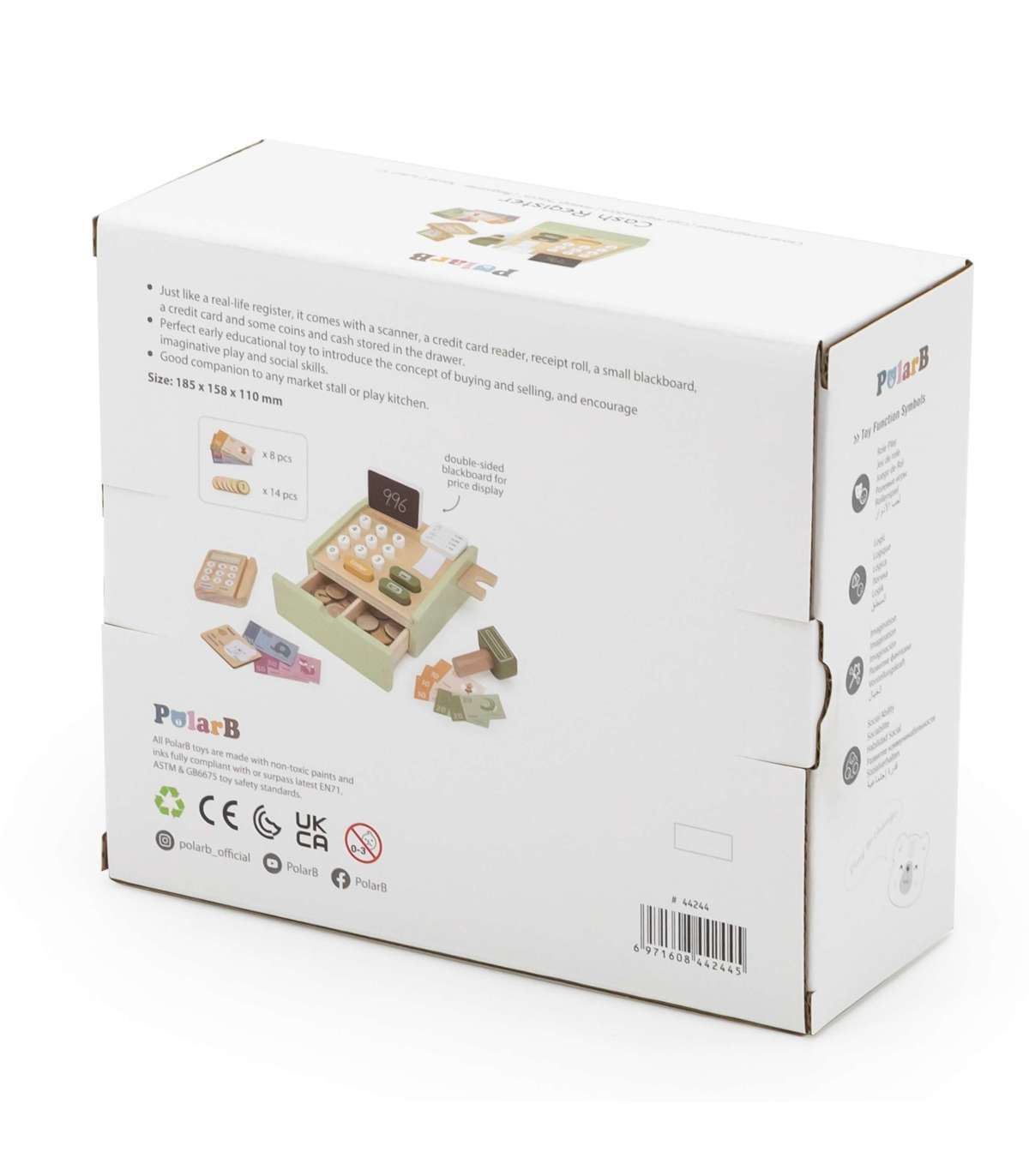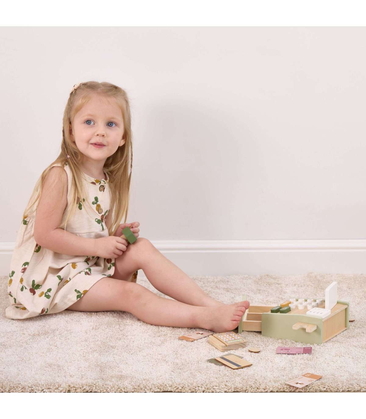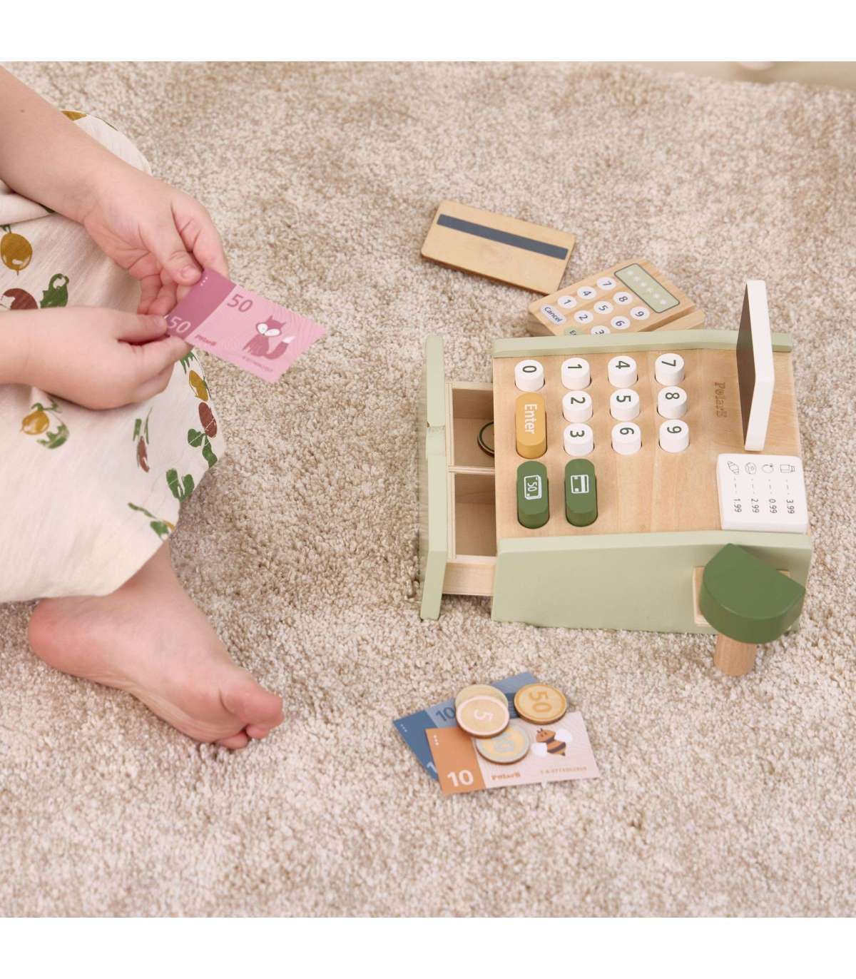 Игровая касса — отличная деревянная игрушка, которая позволяет разыгрывать множество сценок, происходящих в магазине. Дети могут примерять роли кассира или покупателя и совместно отрабатывать социальные взаимодействия и свои коммуникативные навыки. Наличные или карта? Посчитайте сумму к оплате, примите деньги и правильно дайте сдачу. Касса содержит банкноты, монеты и платежную карту. Ребенок может учиться, играя! Королева наук — математика больше не будет страшна.