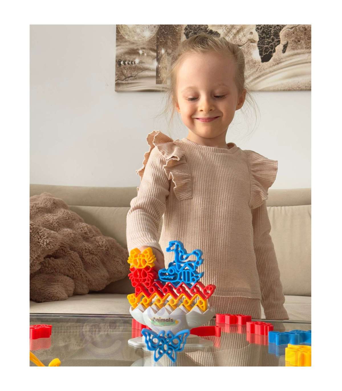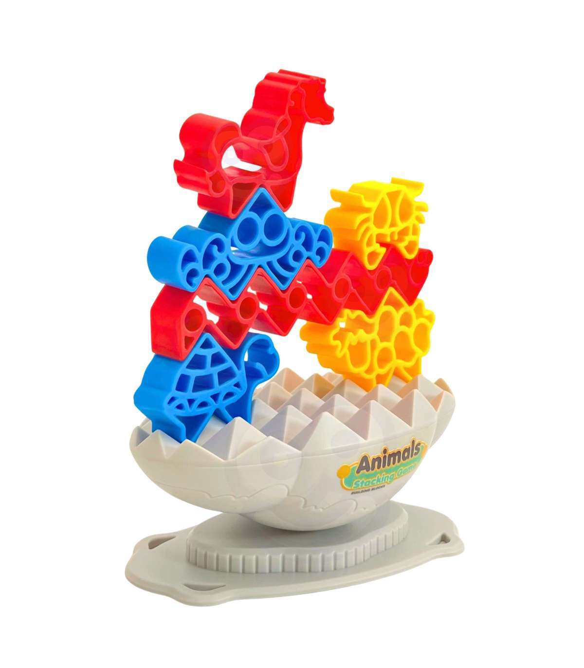 - Укладывайте животных: игроки по очереди размещают кубики в форме животных на балансирующем камне, стараясь сохранить равновесие всей конструкции.
