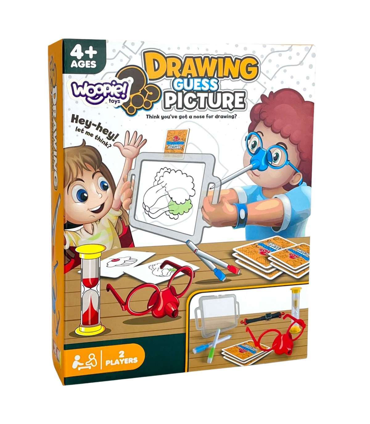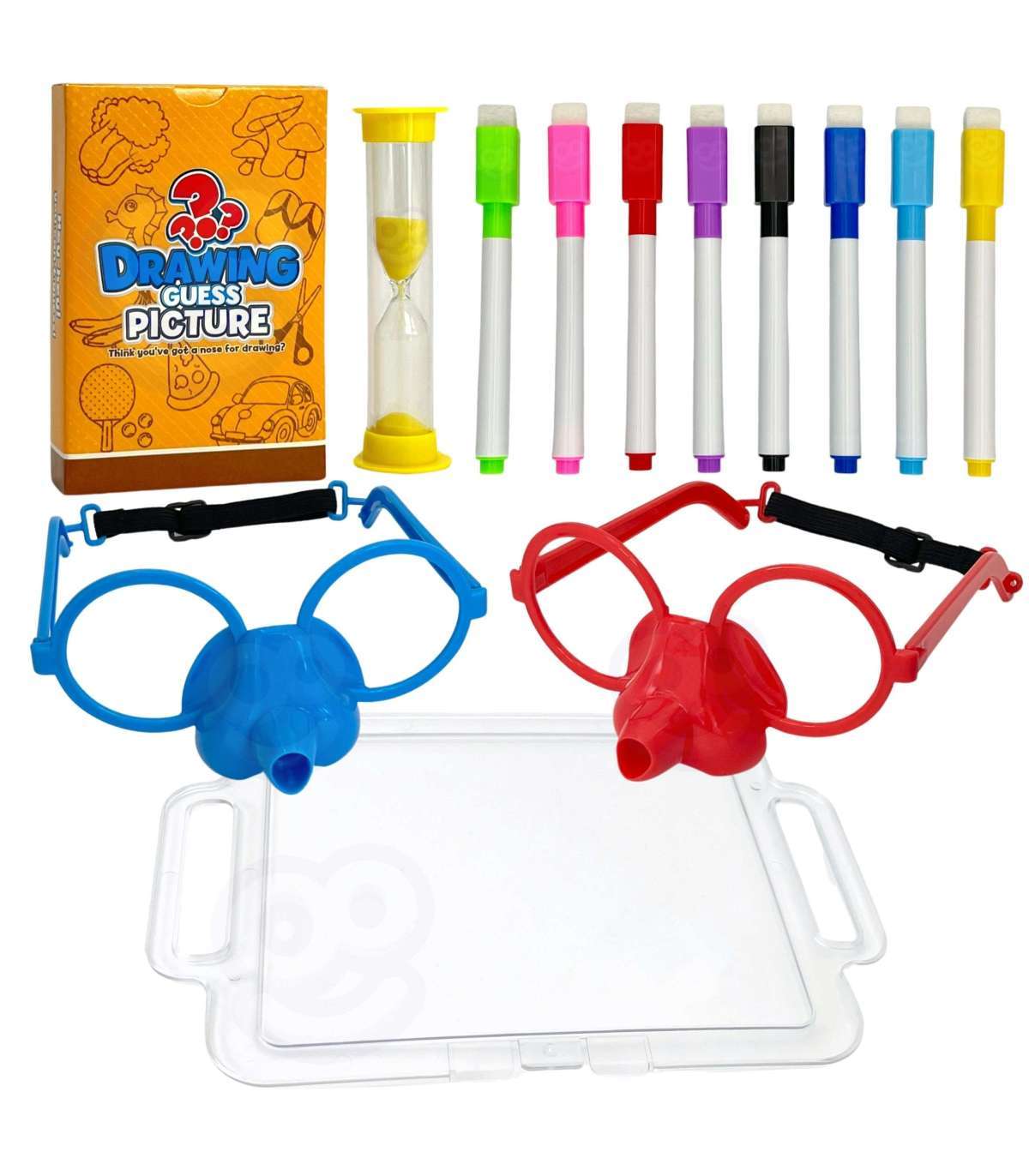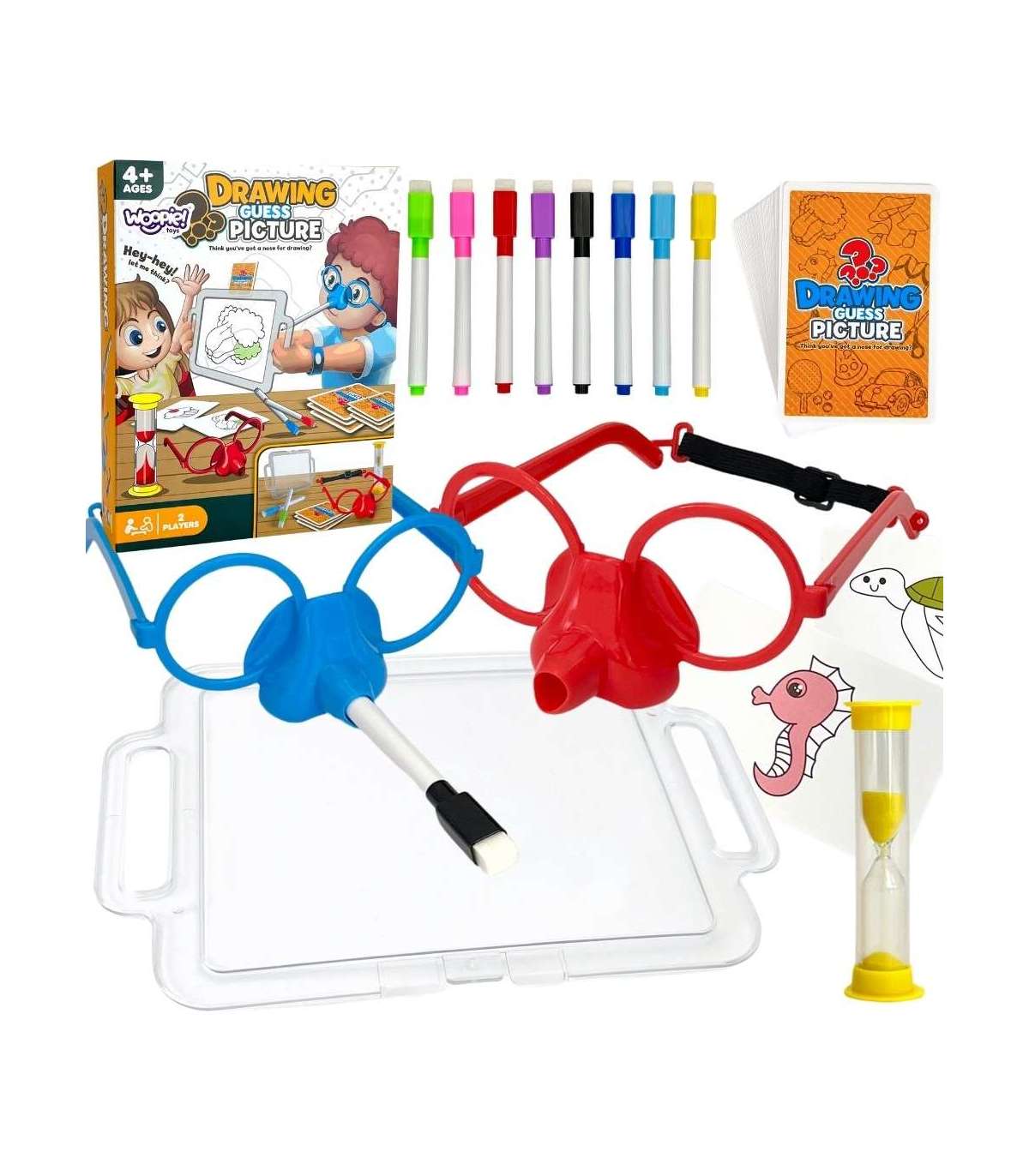 Вы когда-нибудь представляли, что рисуете только носом? Благодаря замечательной игре 'Нарисуй и отгадай картинку' от бренда WOOPIE это станет возможным, ведь это будет ваша задача! Наденьте специальные очки с маркером и нарисуйте на доске перед собой выбранный рисунок – это единственный способ, чтобы ваша команда отгадала загаданное. Времени мало, так что поспешите, песочные часы уже тикают!