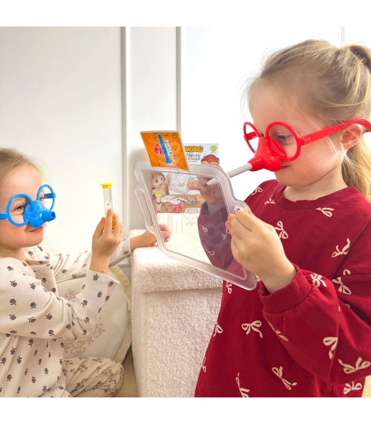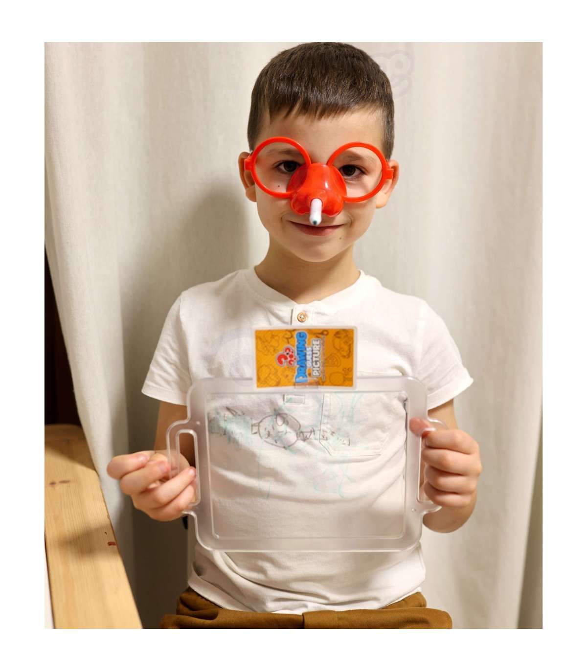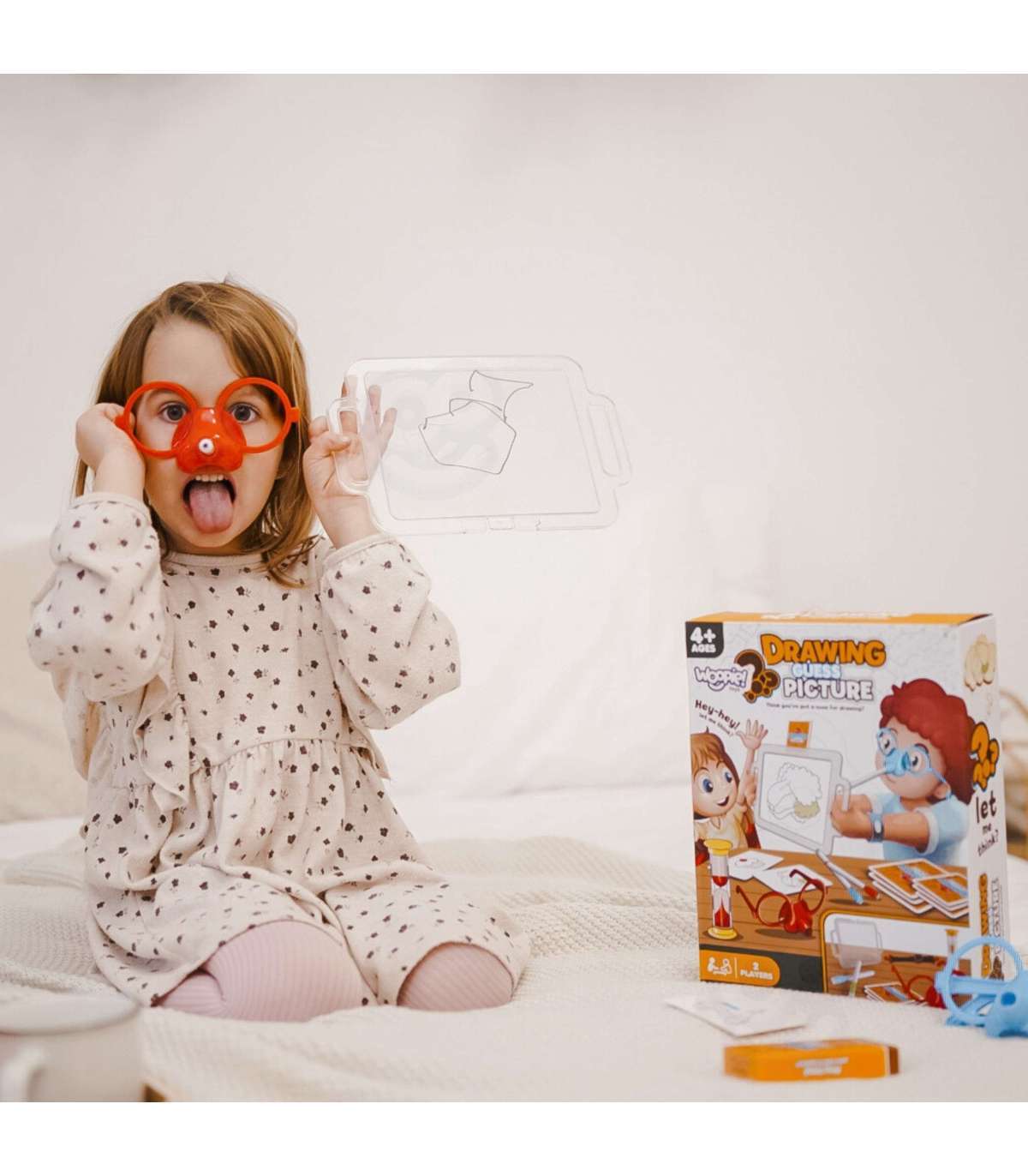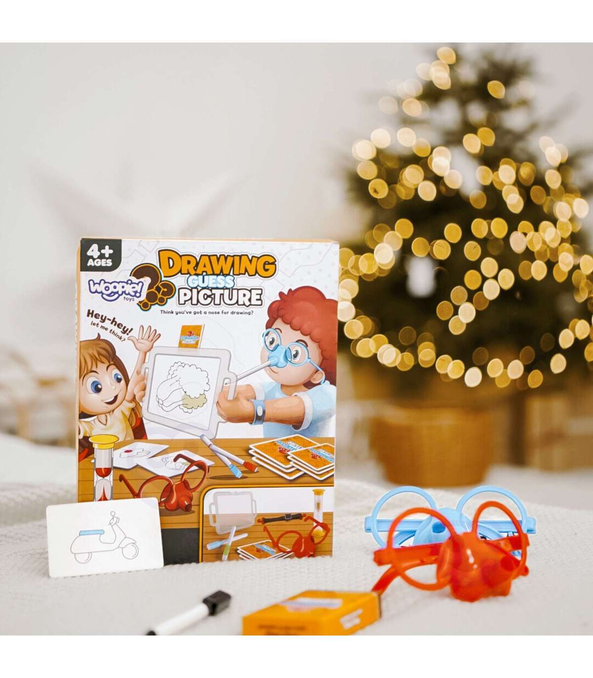 Вы когда-нибудь представляли, что рисуете только носом? Благодаря замечательной игре 'Нарисуй и отгадай картинку' от бренда WOOPIE это станет возможным, ведь это будет ваша задача! Наденьте специальные очки с маркером и нарисуйте на доске перед собой выбранный рисунок – это единственный способ, чтобы ваша команда отгадала загаданное. Времени мало, так что поспешите, песочные часы уже тикают!