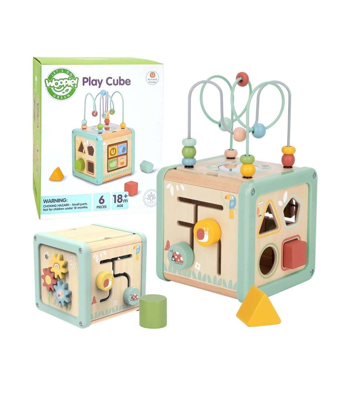 WOOPIE GREEN Деревянный развивающий кубик, многофункциональный образовательный сортировщик