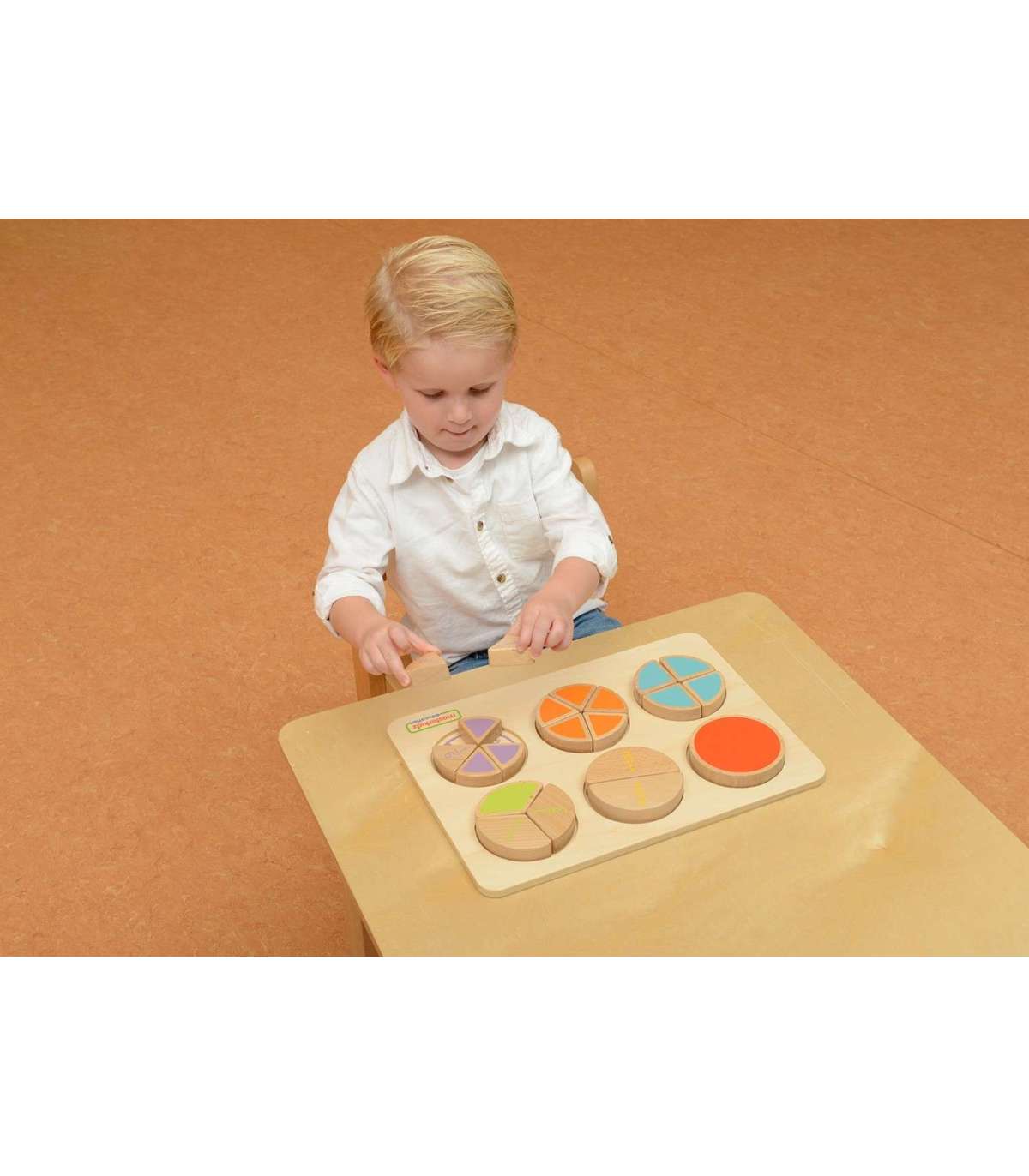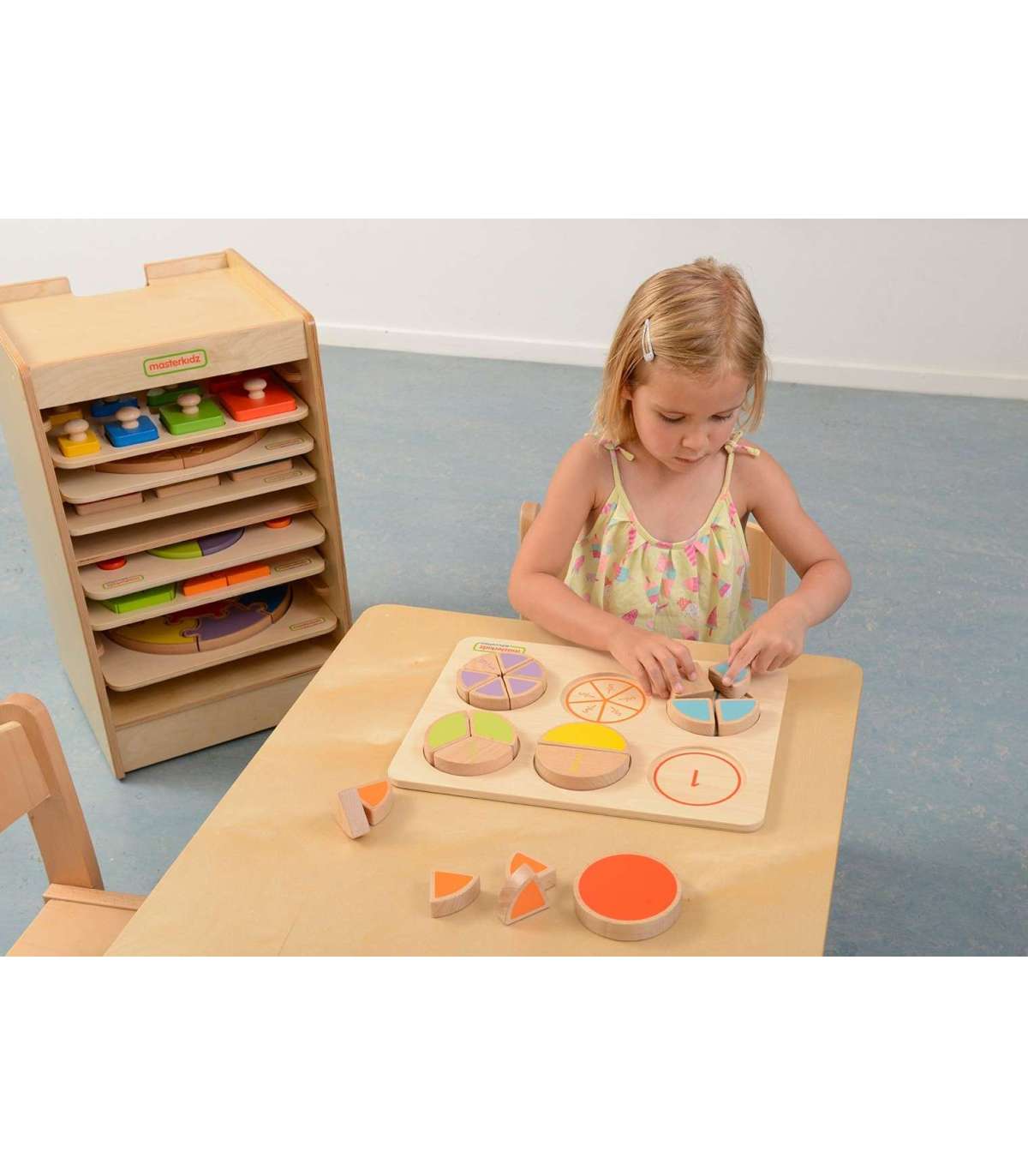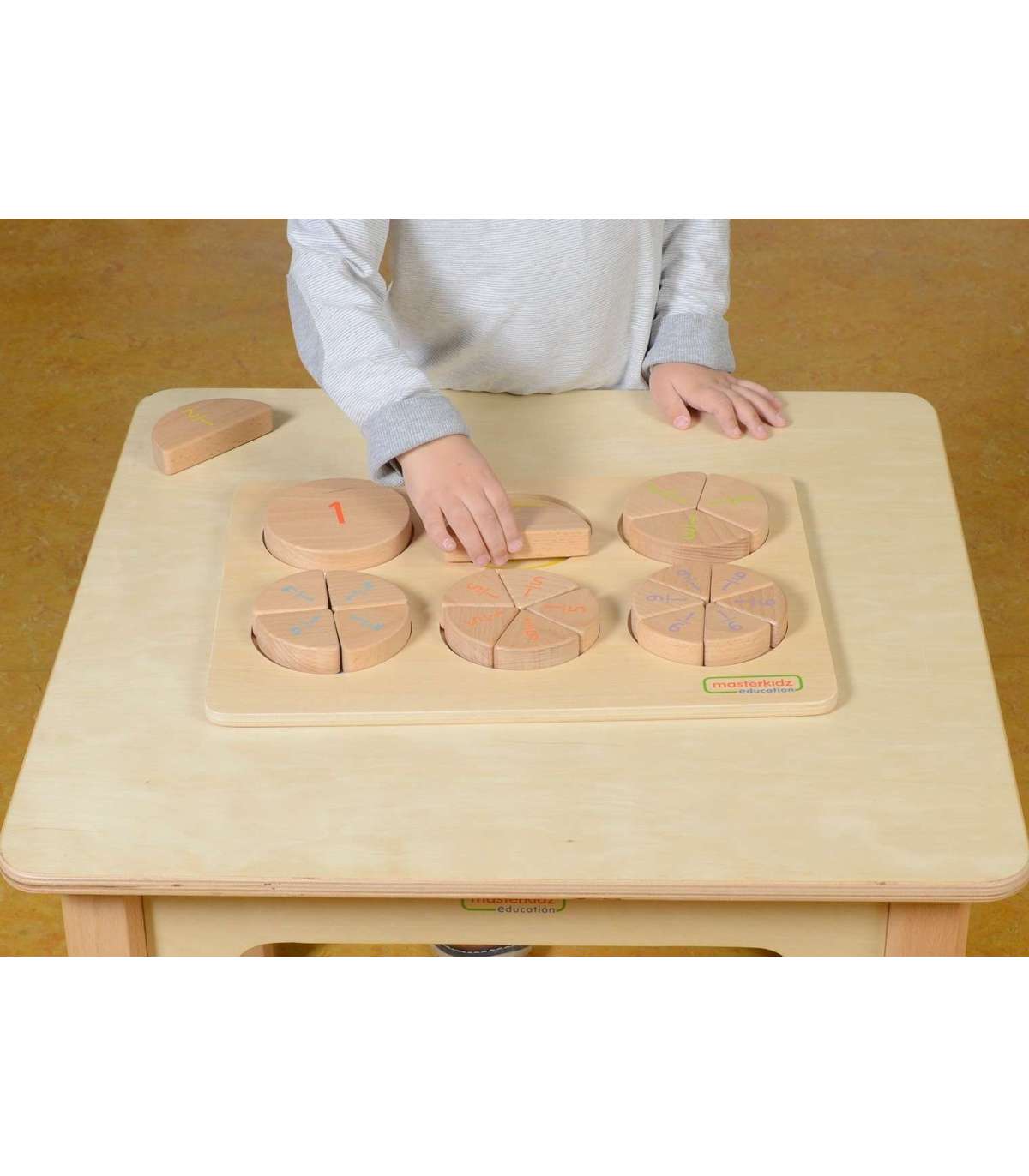 Ta wspaniała drewniana układanka marki MASTERKIDZ sprawia, że nauka podstawowych pojęć matematycznych staje się prostą i przyjemną przygodą. Kolorowe, skrojone z europejskiego drewna elementy pozwalają dziecku zobaczyć na własne oczy, jak działa podział całości na części. Każdy element pasuje do swojego miejsca według koloru, a na odwrocie znajdziemy zapisane ułamki – to podwójna dawka edukacyjnej zabawy. Idealna dla maluchów stawiających pierwsze kroki w świecie matematyki, jak i dla starszaków, którzy utrwalają wiedzę zdobytą w szkole.