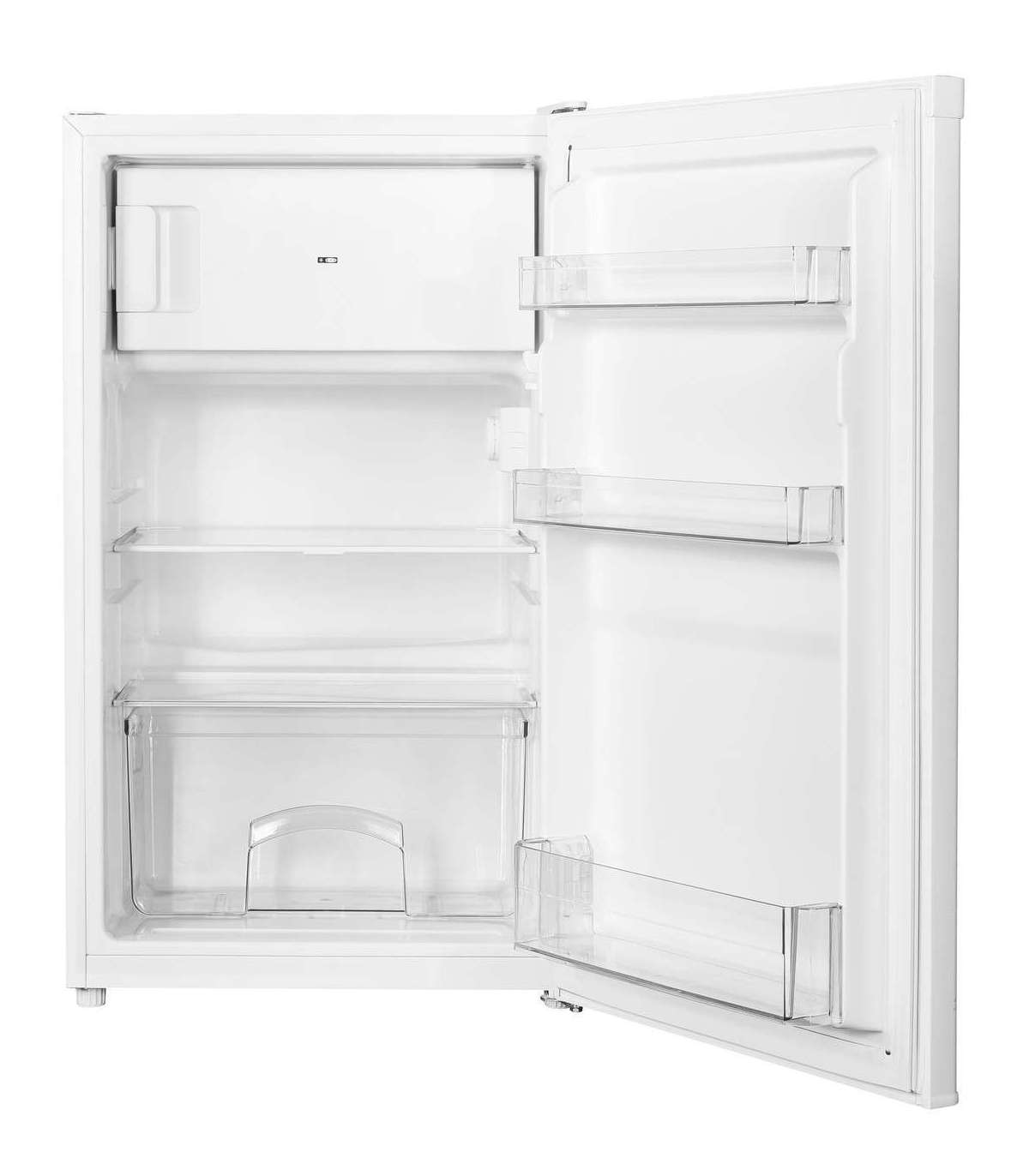 The refrigerator comes with a transparent vegetable box, 2 glass shelves and 3 door shelves.