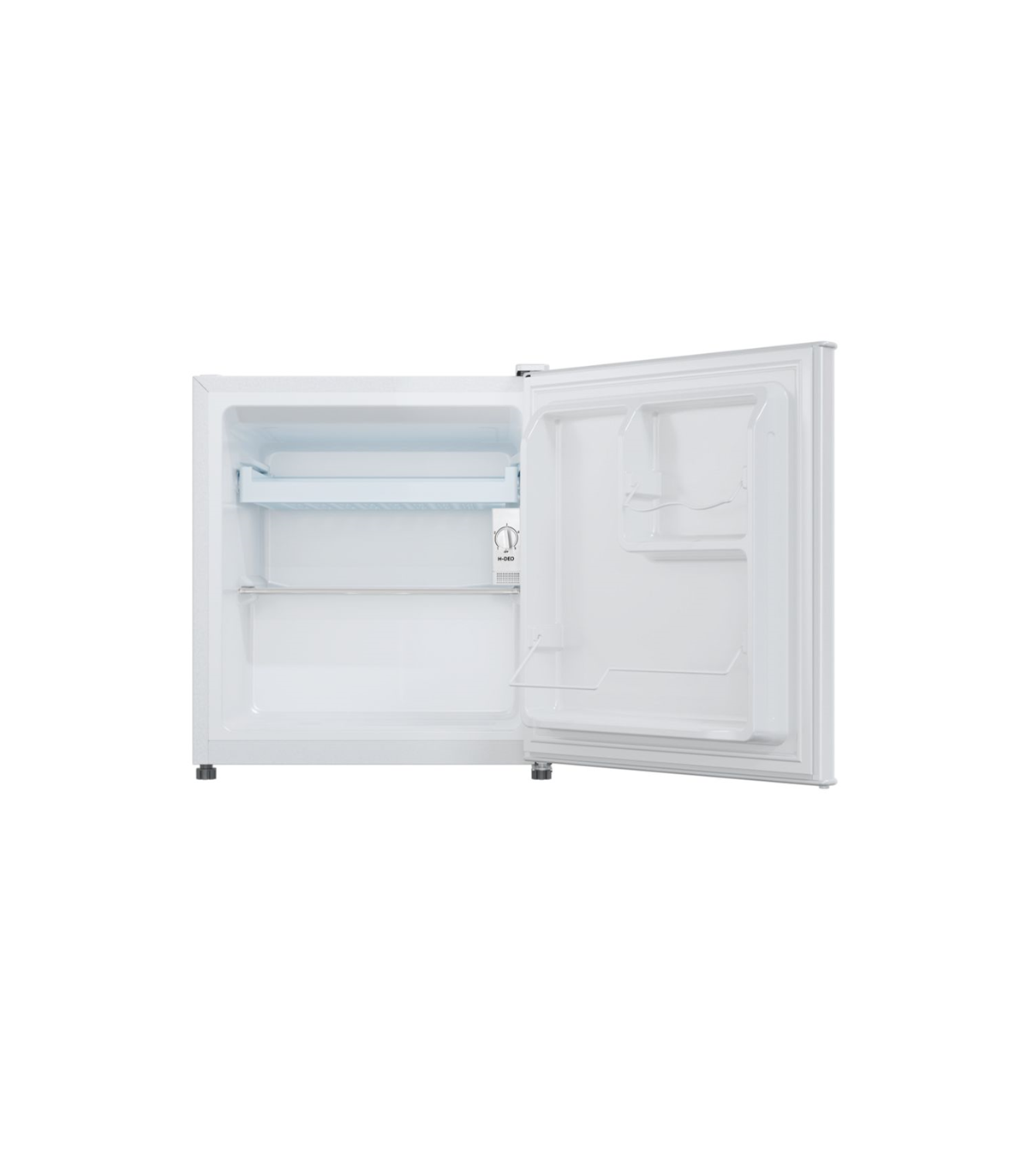 Selle väikese külmiku sisemus on varustatud ühe plastikust riiuliga. Lisaks on uksel pudelihoidjad, et saaksid neid turvaliselt hoiustada, säästes ruumi ülejäänud seadmes.